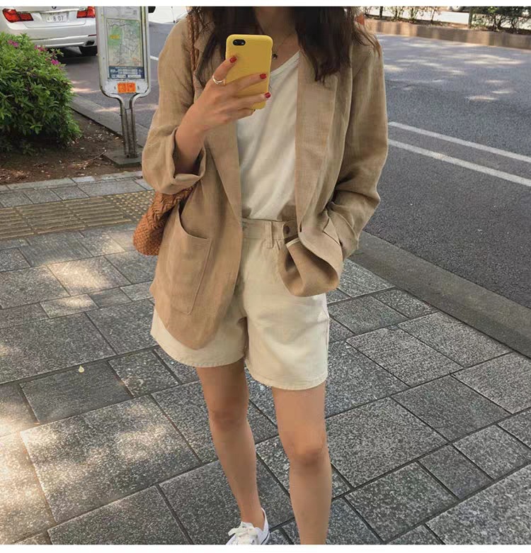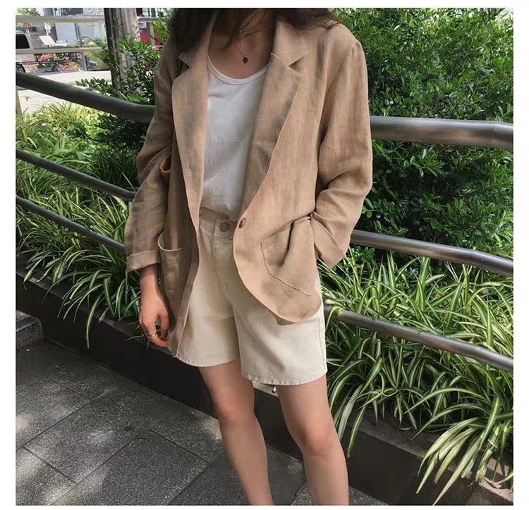 2024 년 초 봄 새 한국 느슨한 린넨 세트 영국 스타일 셔츠 탑 코튼 및 리넨 세트 재킷스토어 가기