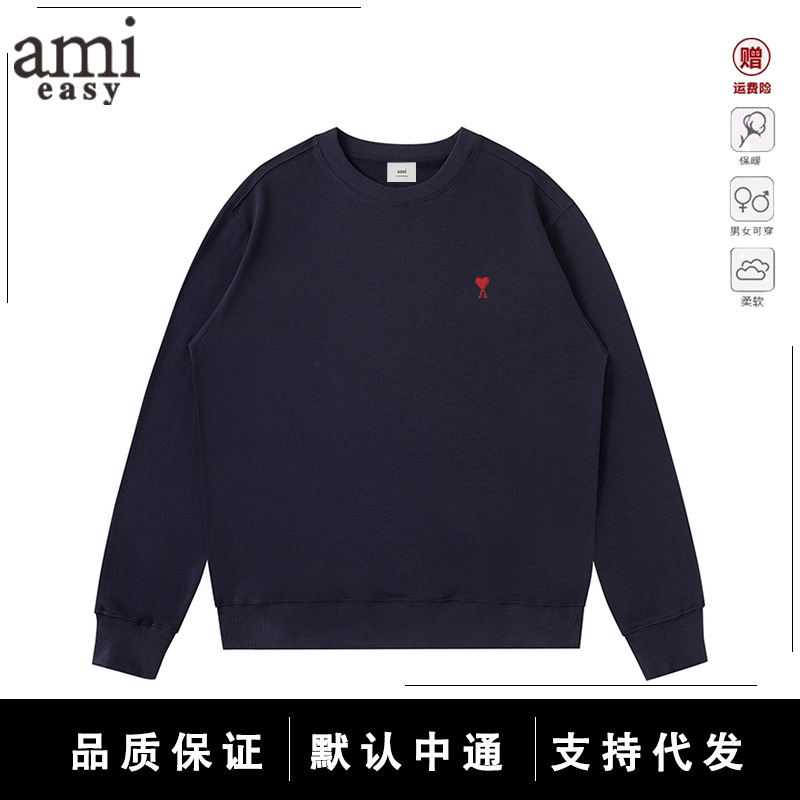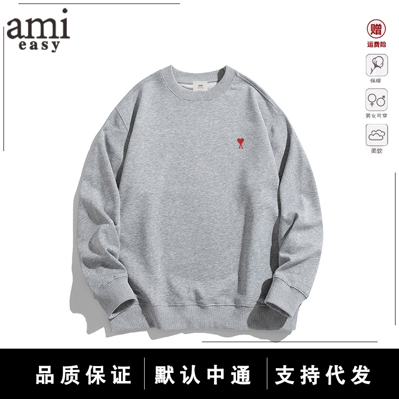 AMI&EASY 가을 신작 남성 라운드 넥 자수 스웨트 셔츠 남성 봄, 가을 새로운 루즈 캐주얼 커플스토어 가기