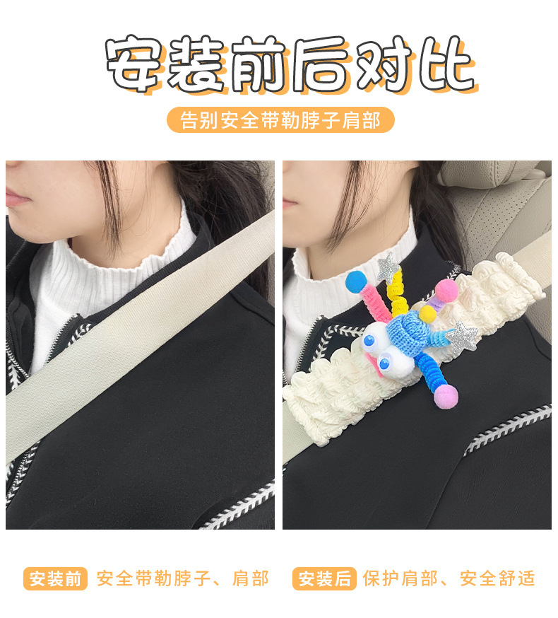 새로운 재미있는 안전 벨트 어깨 패드 귀여운 자동차 안전 벨트 미끄럼 방지 커버 자동차 하이 엔드 분위기 장식 여성