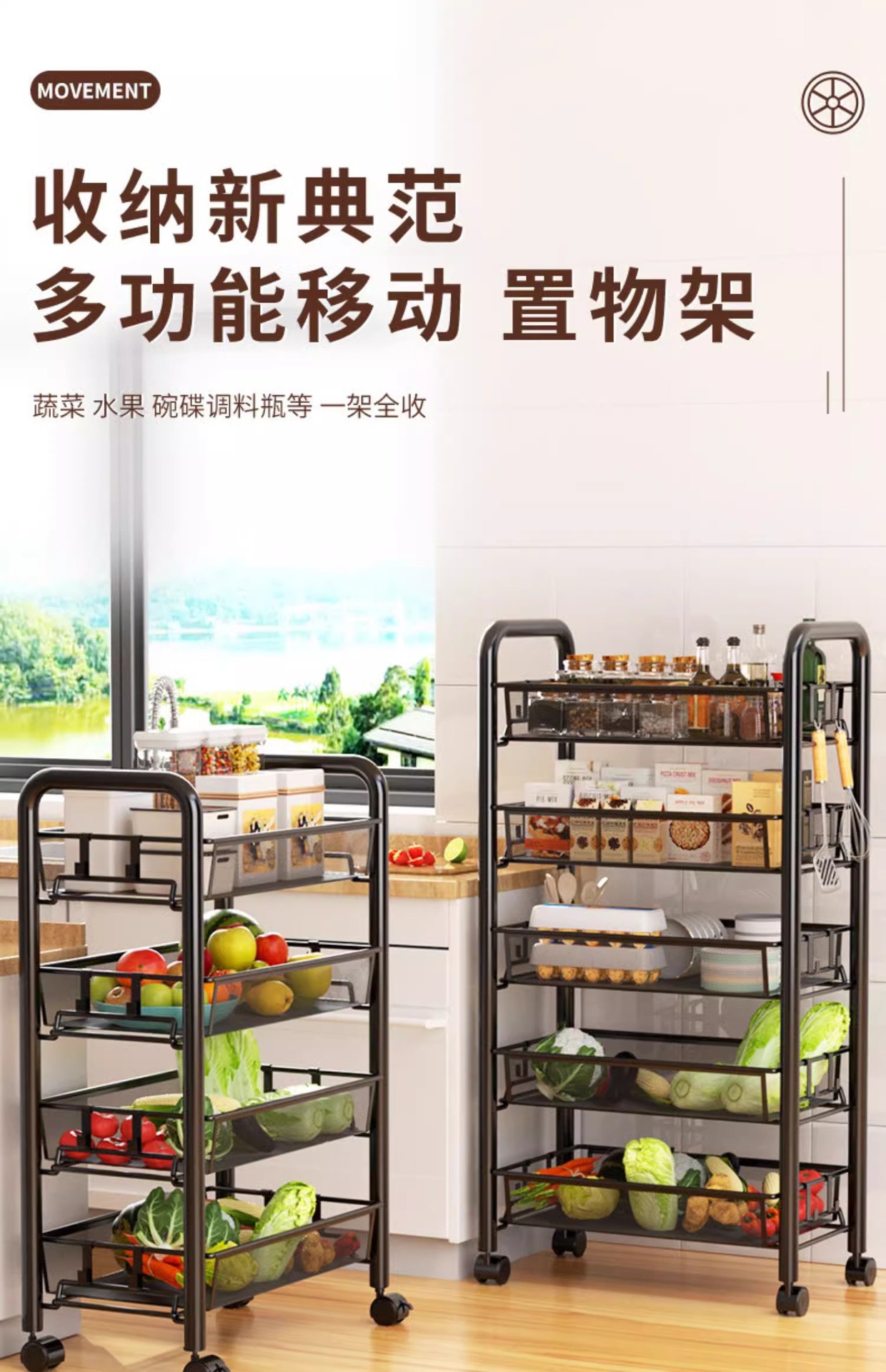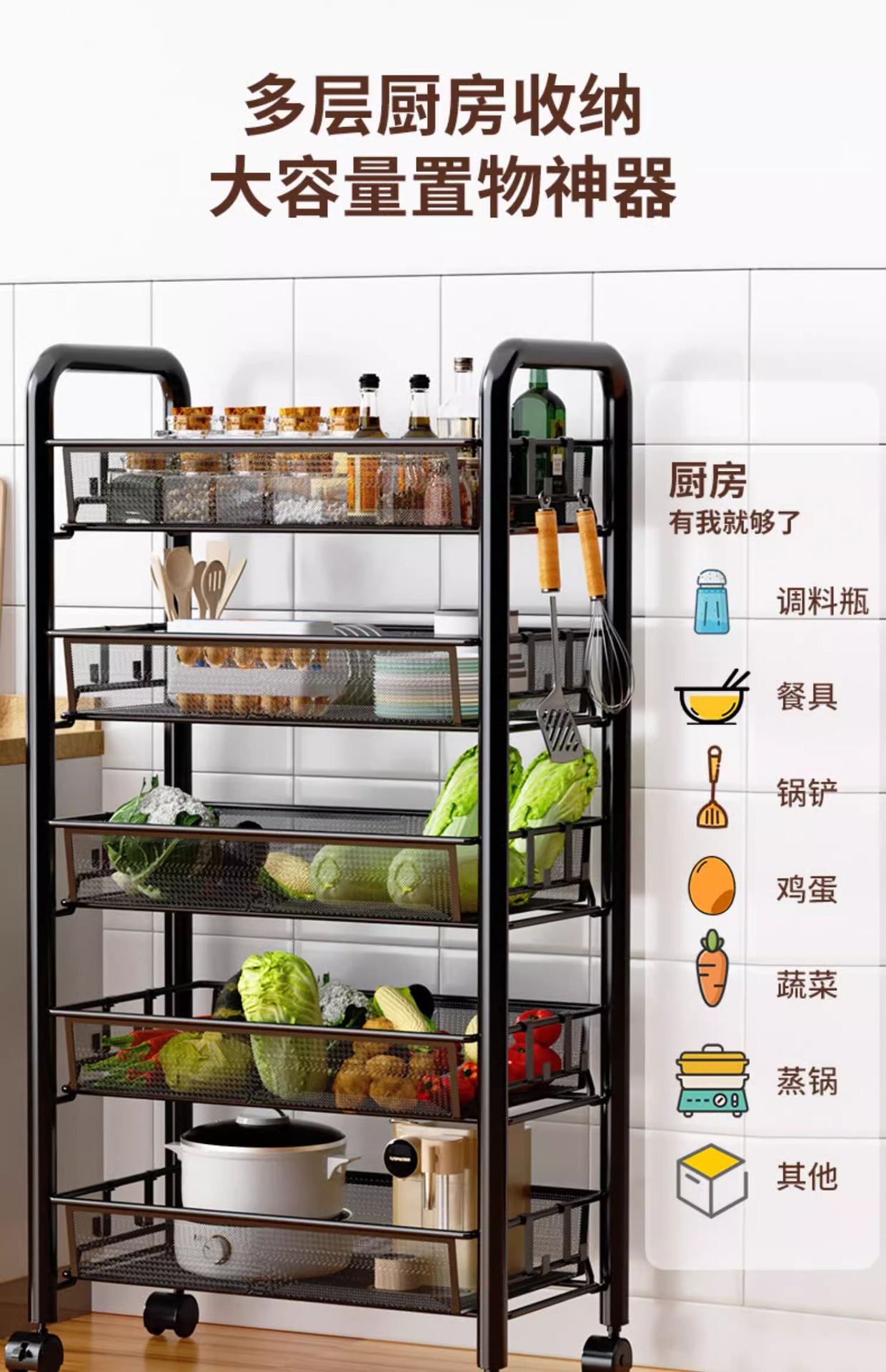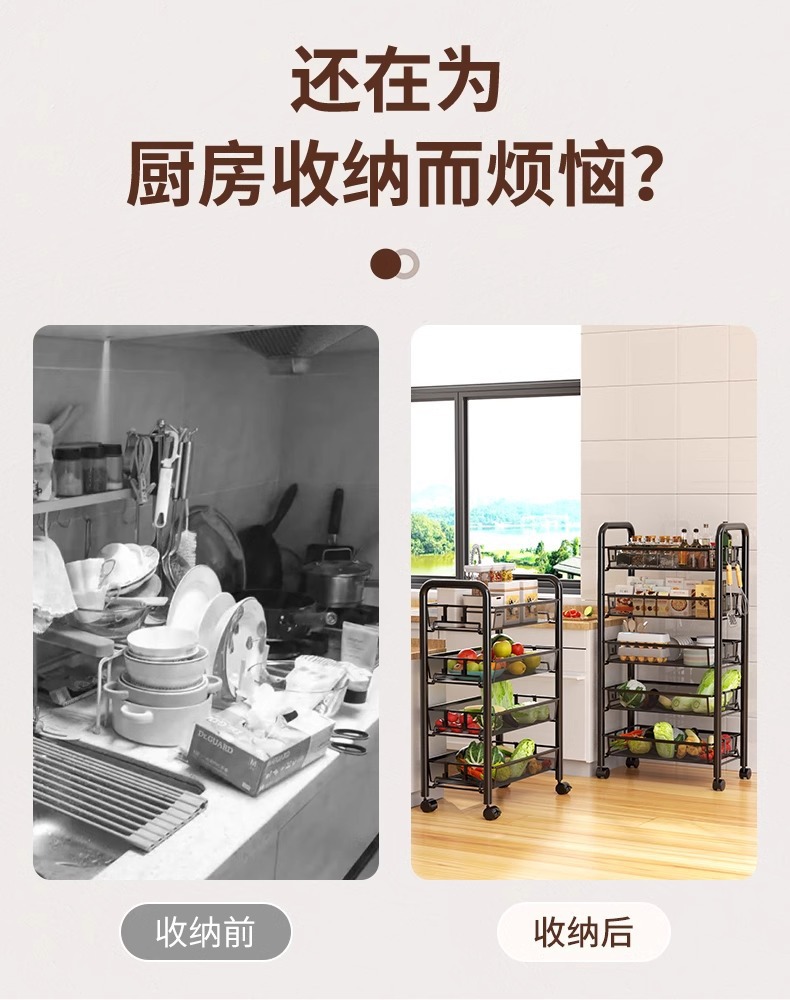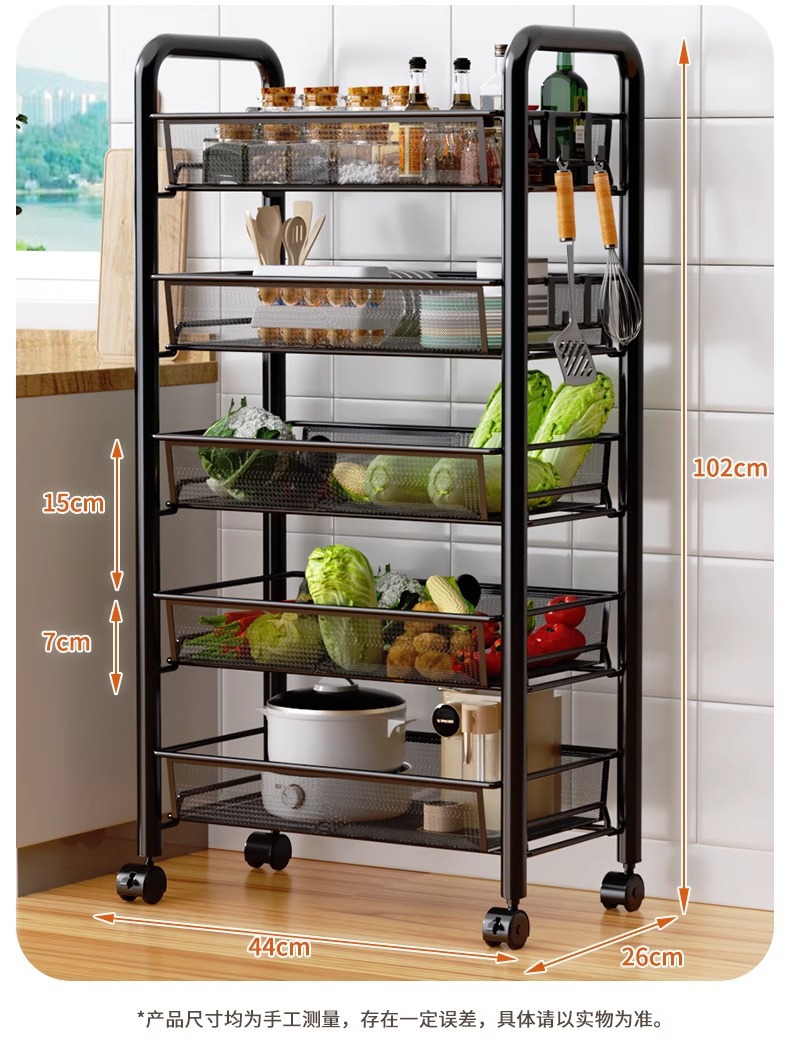 주방 저장 랙 저장 선반 바닥 다층 다기능 트롤리 다기능 야채 바구니 도매스토어 가기