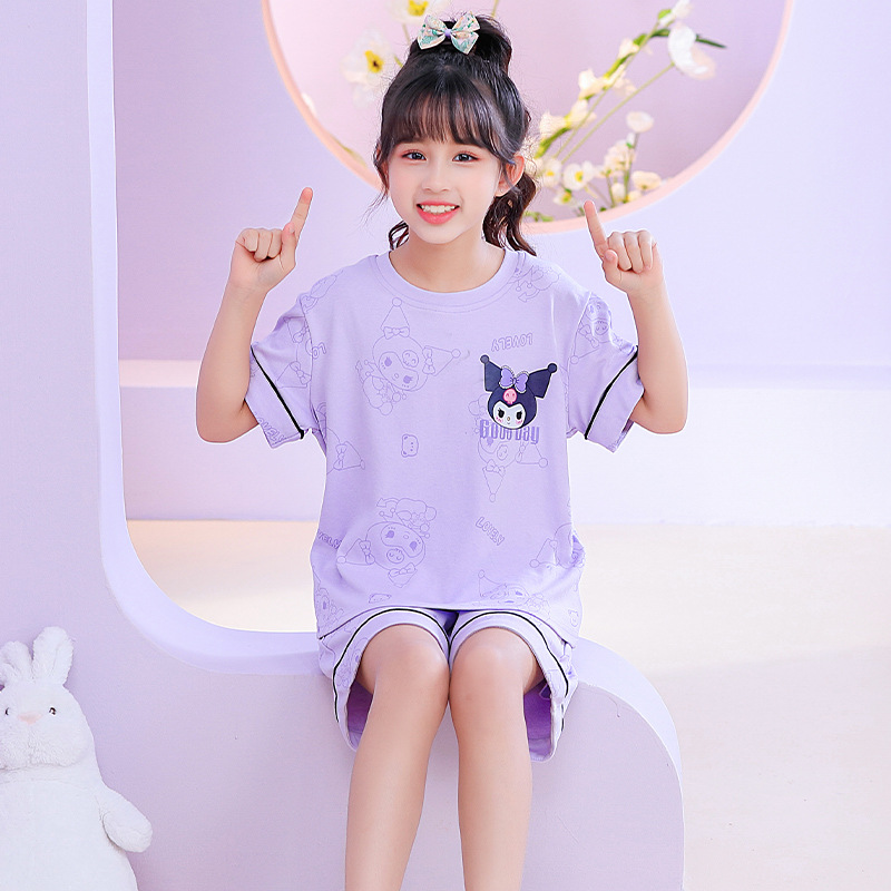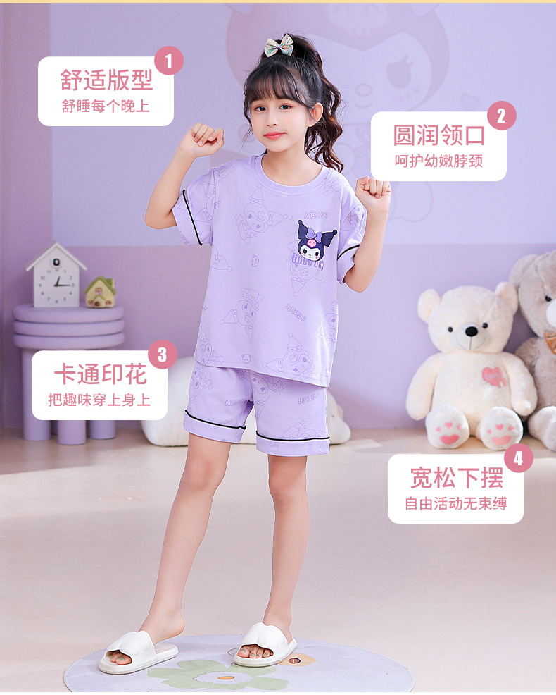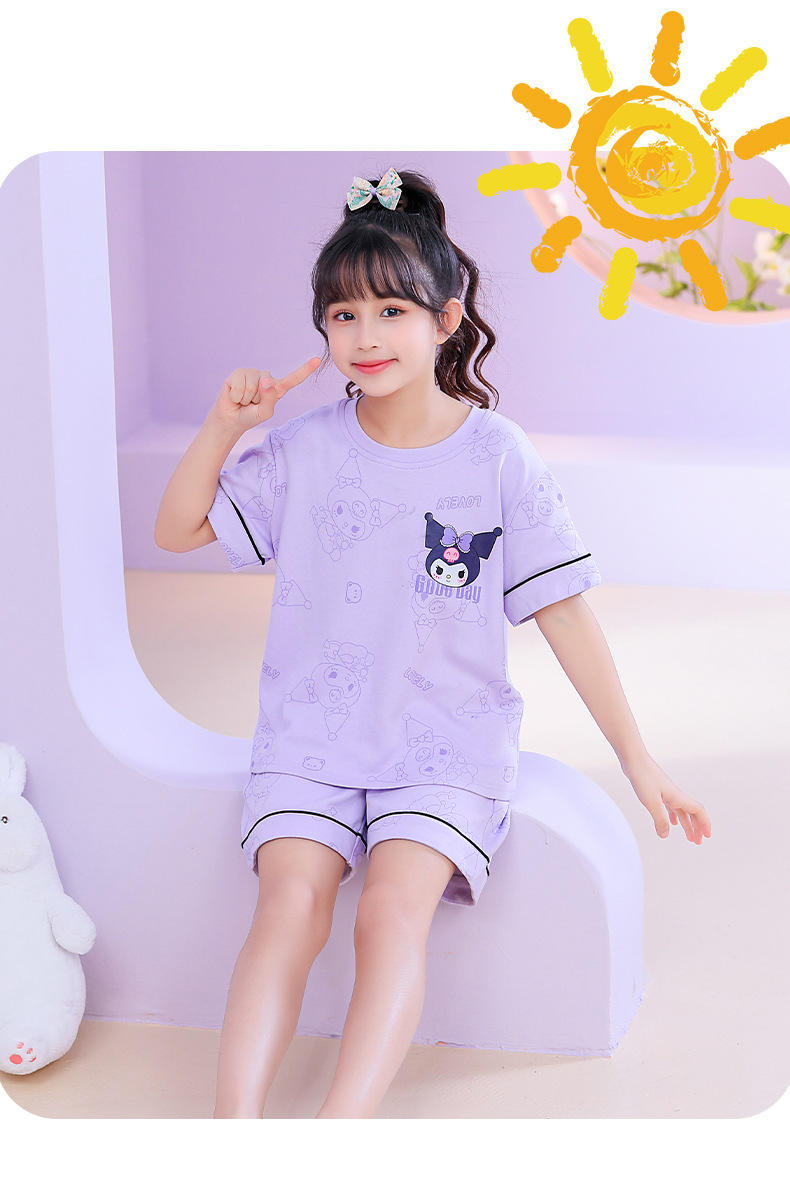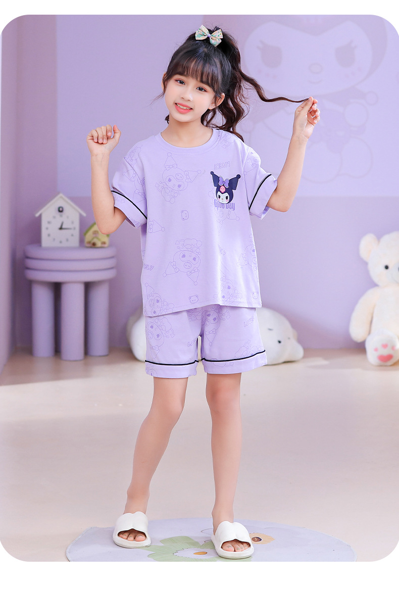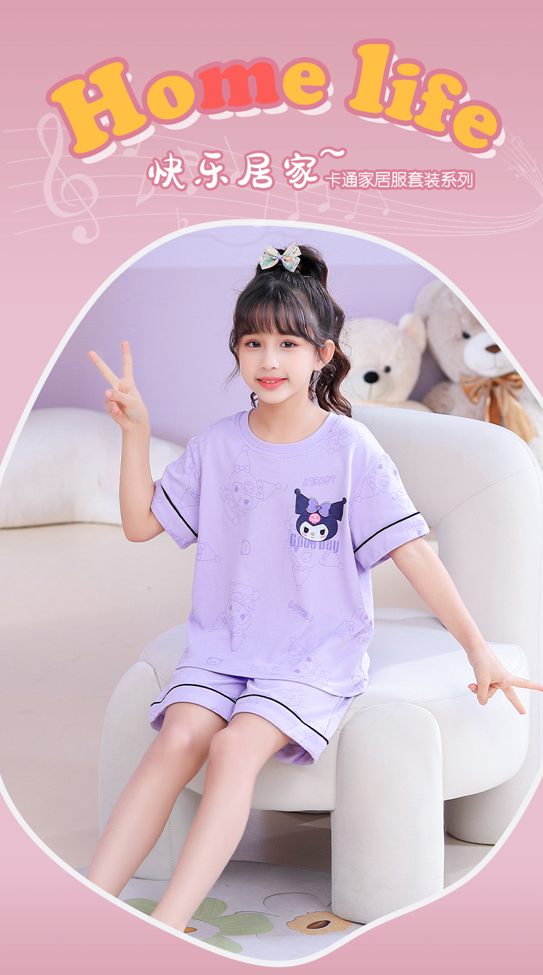 어린이 잠옷 소녀 여름 반팔 얇은 만화 작은 소년 귀여운 소녀 중 큰 아이들의 집 세트