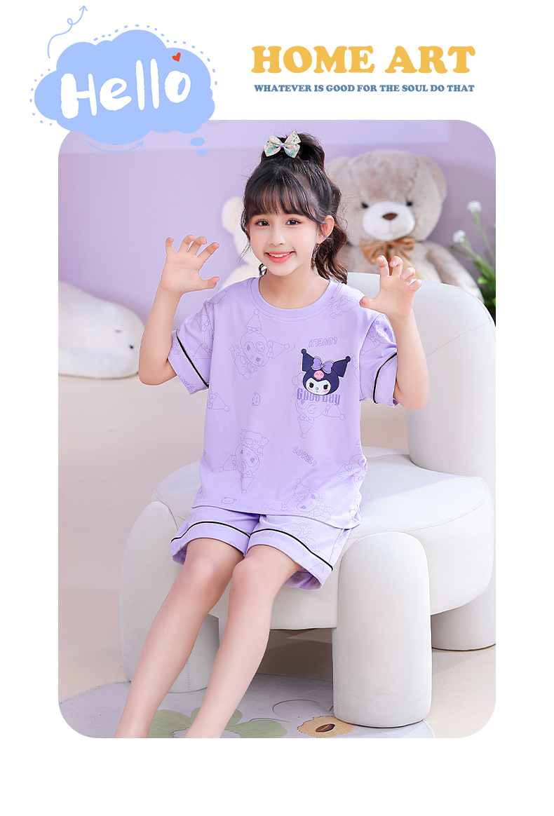 어린이 잠옷 소녀 여름 반팔 얇은 만화 작은 소년 귀여운 소녀 중 큰 아이들의 집 세트스토어 가기