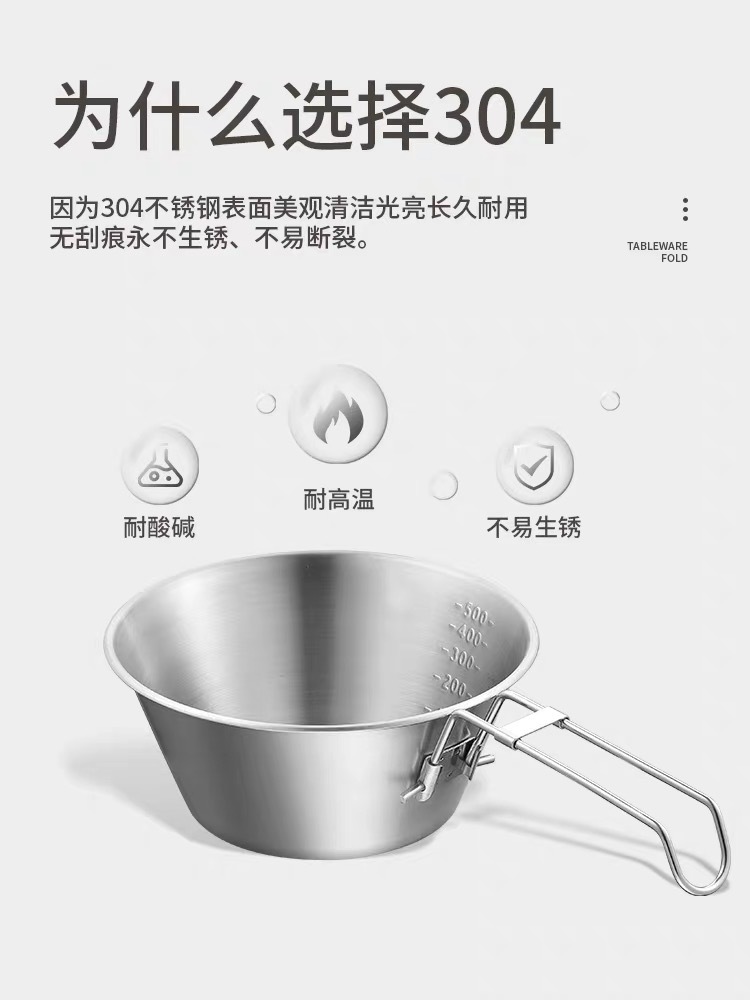 야외 캠핑용 스틸라볼 304 스테인리스 접이식 식기 휴대용 캠핑 조리기구 커피잔 라면그릇 밥그릇