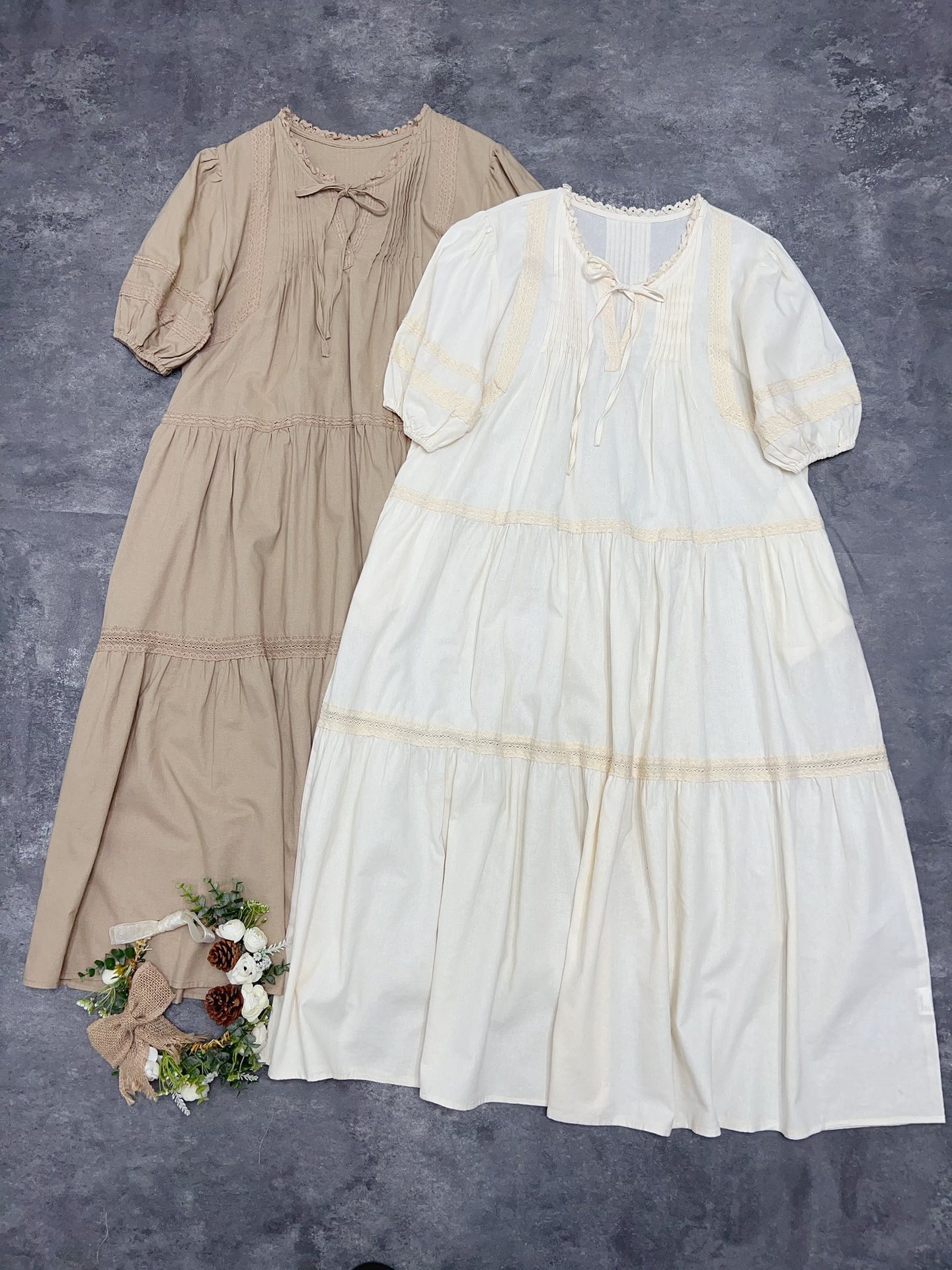 오프 화이트 원피스 여성 여름 2024 예술적 레트로 프랑스 스타일 스위트 퍼프 슬리브 세련된 모리 스타일 요정 원피스스토어 가기