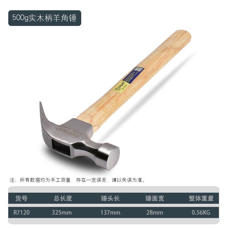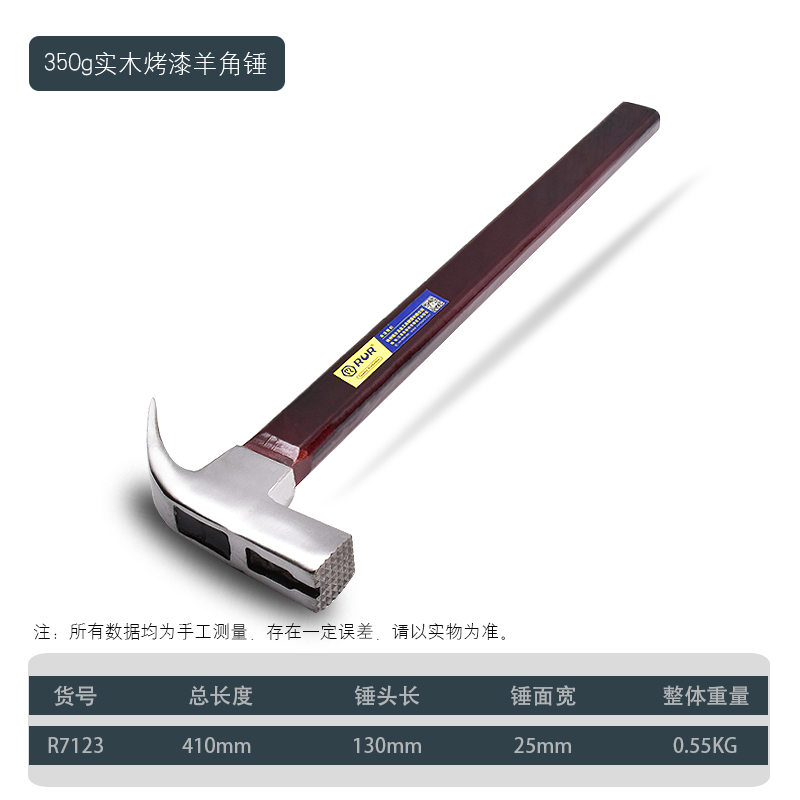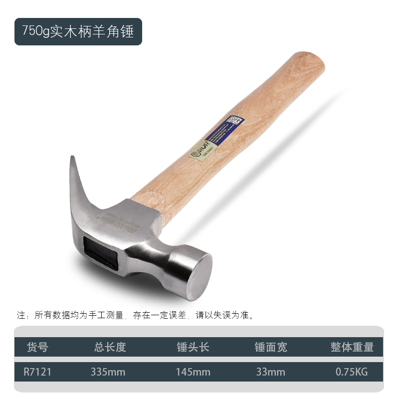 • [사각형 머리와 곡선형 꼬리 350g] [마 표면 흡입 손톱] 원목 페인트 손잡이
