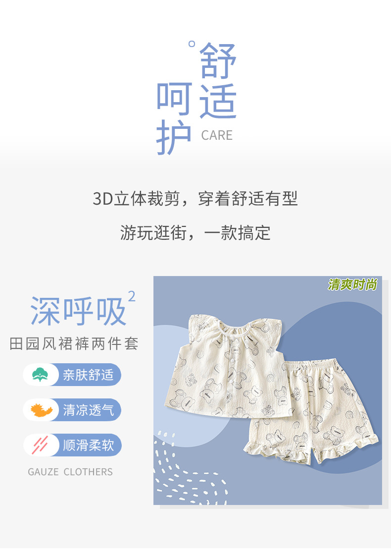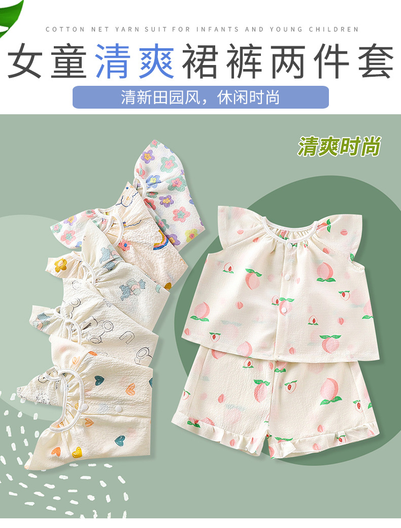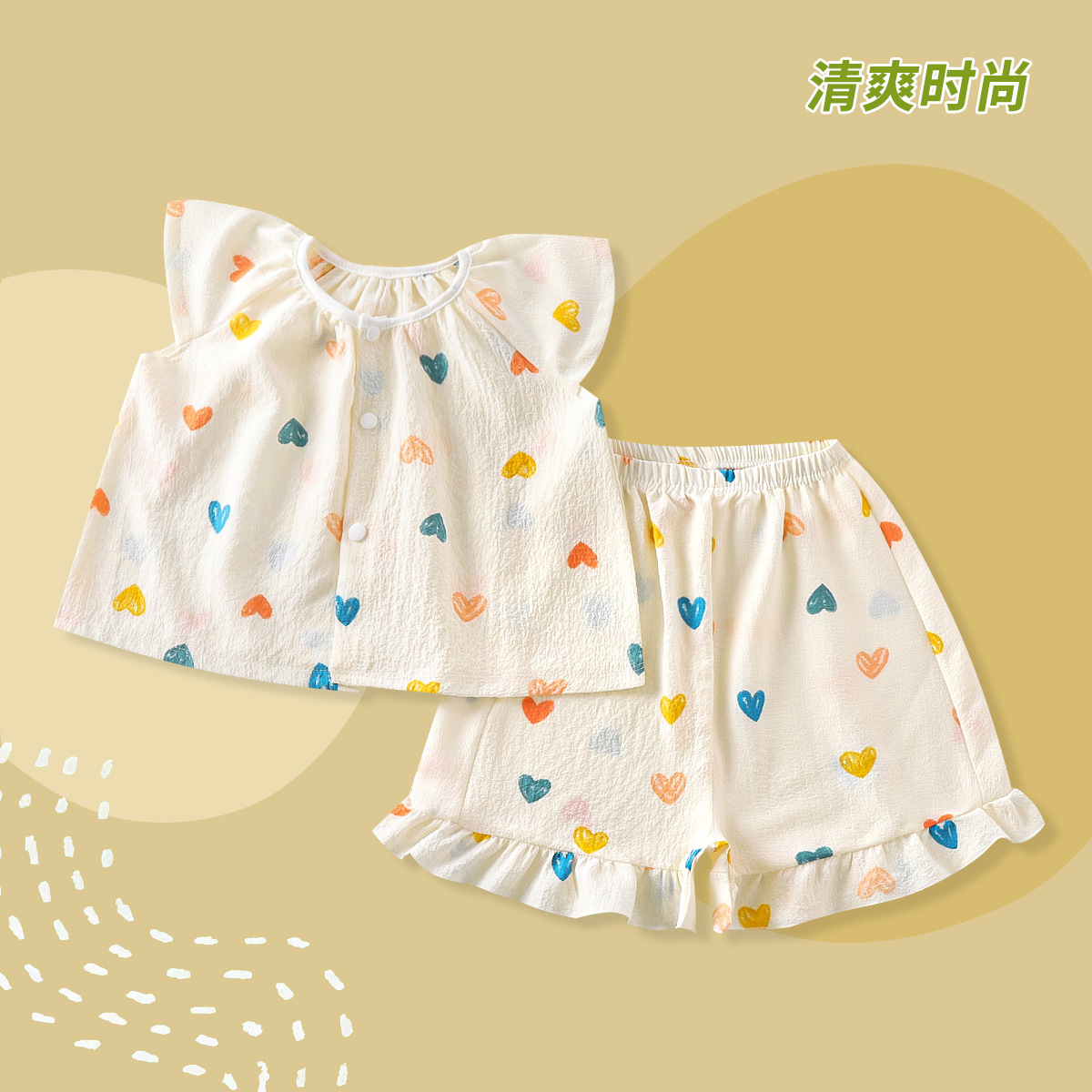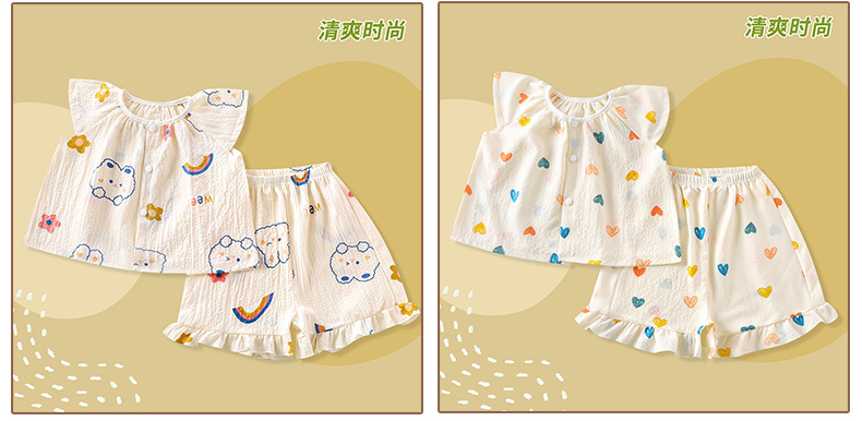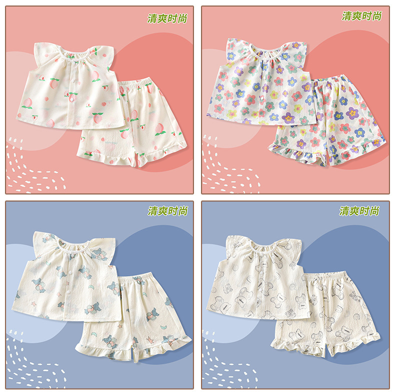 새로운 어린이 여름 비행 소매 반바지 홈 의류 세트 소년 소녀 얇은 통기성 에어컨 의류 패션 캐주얼 파자마스토어 가기
