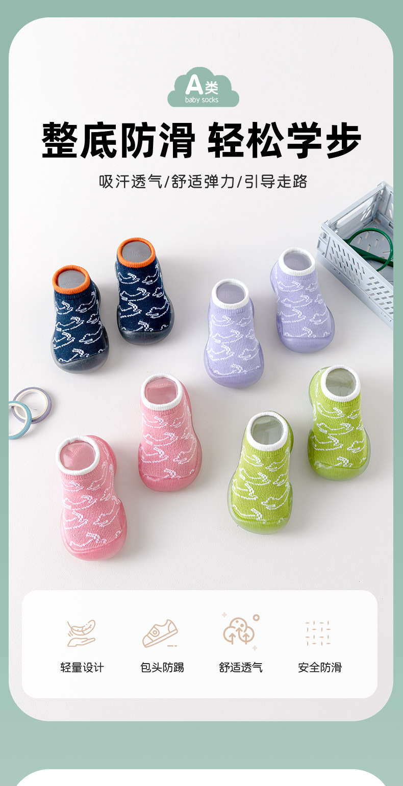 2024 봄 새로운 어린이 고무 단독 양말 신발 통기성 편안한 미끄럼 방지 아기 유아 신발 양말 아기 바닥 양말스토어 가기