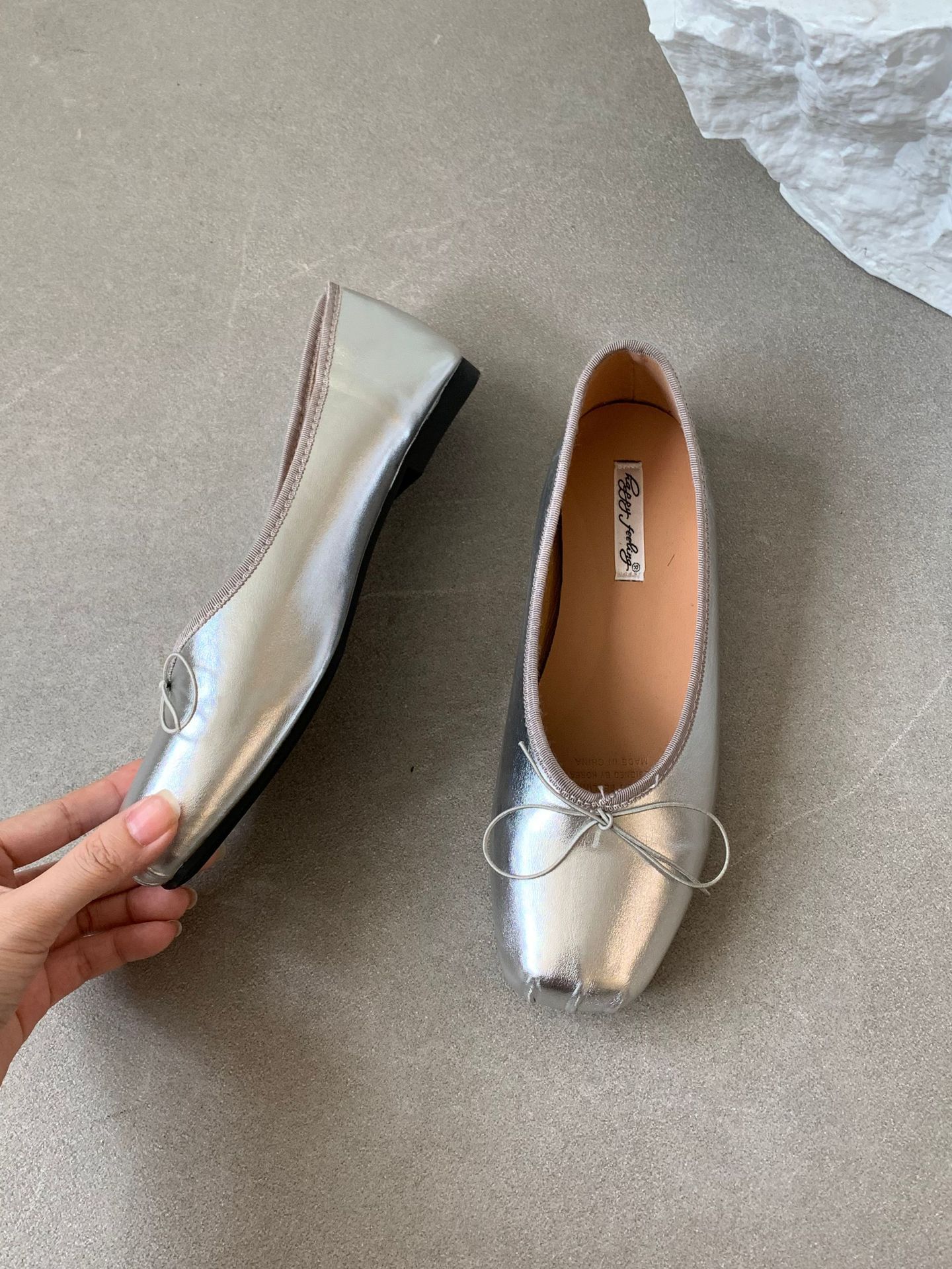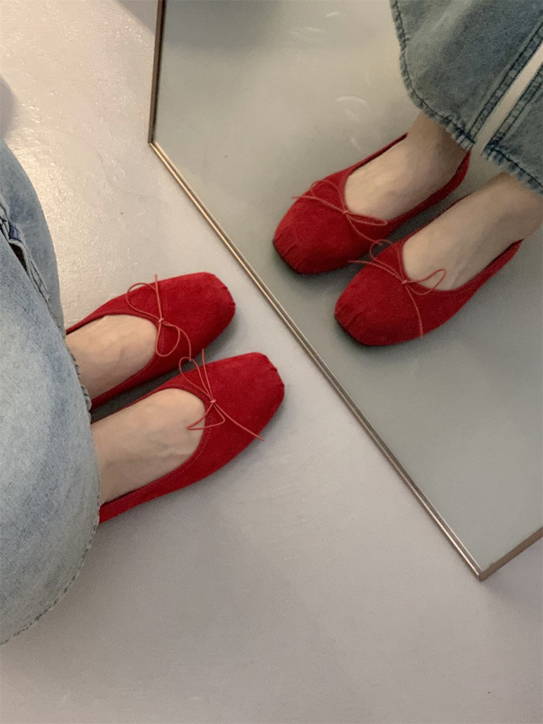 프렌치 스타일 플랫 바레타 실버 여성화 2026년 여름 신상 리본 레드 보트 슈즈스토어 가기