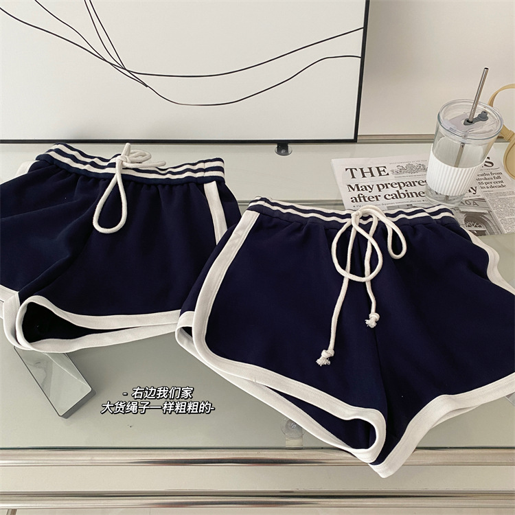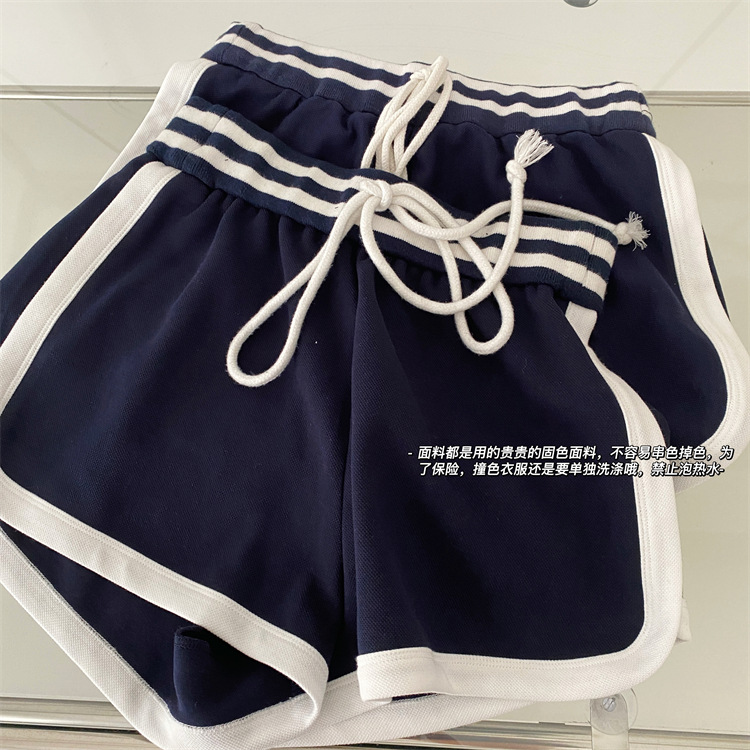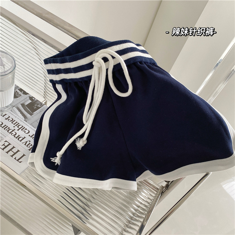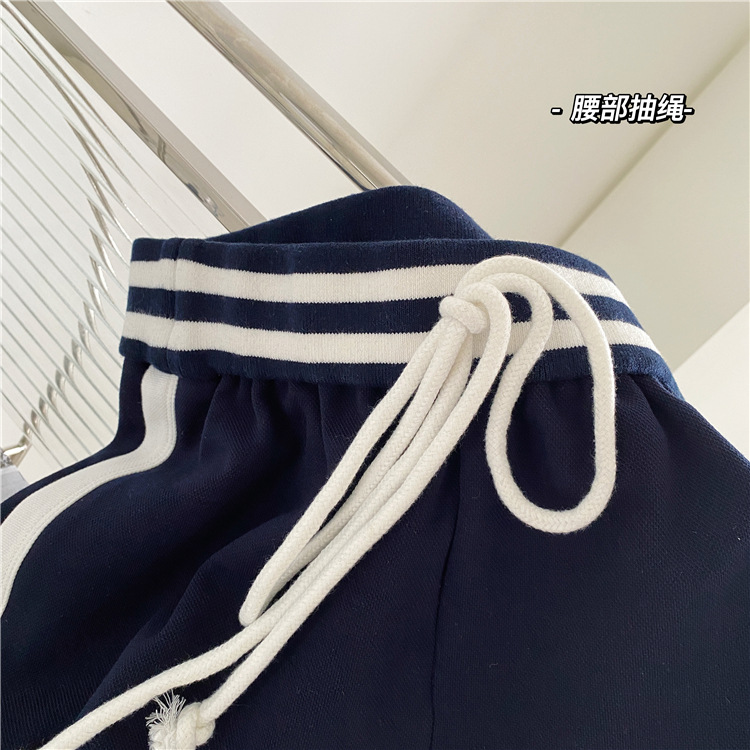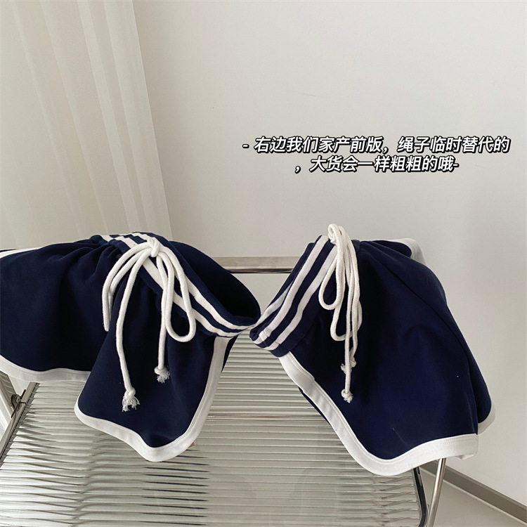 공장 스팟 스트레이트 헤어 디자인 센스 틈새 2023 여름 새로운 스포츠 캐주얼 와이드 레그 슬리밍 반바지 여성 얇은스토어 가기