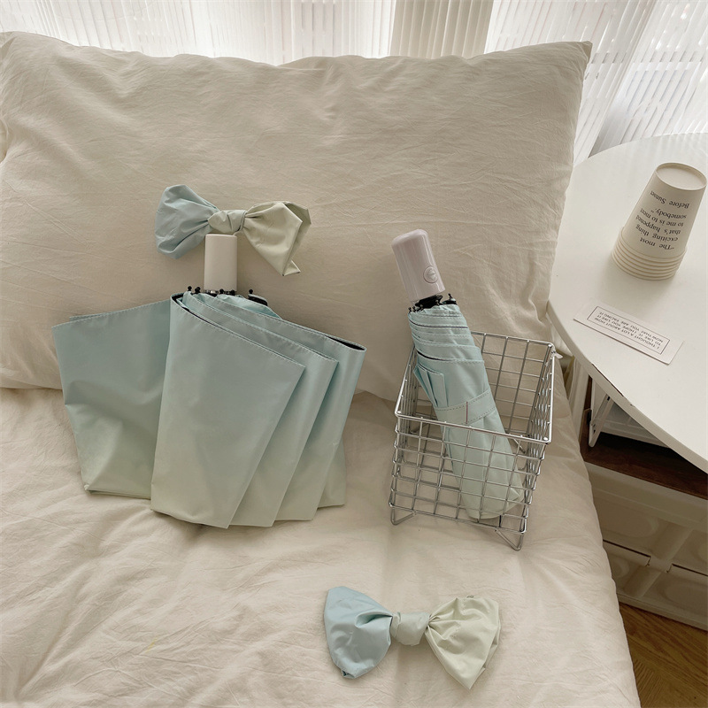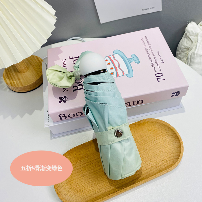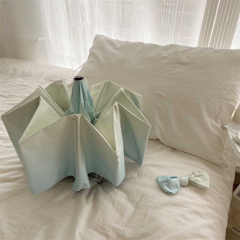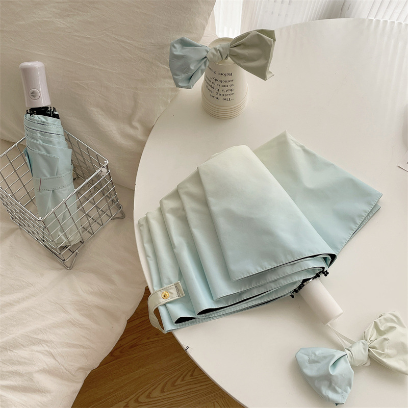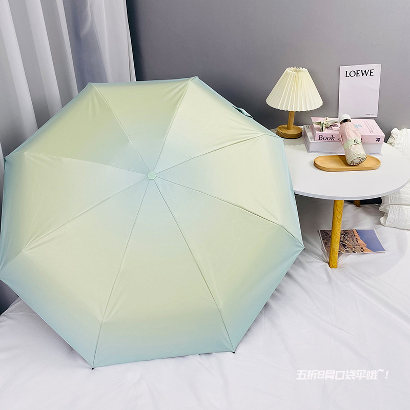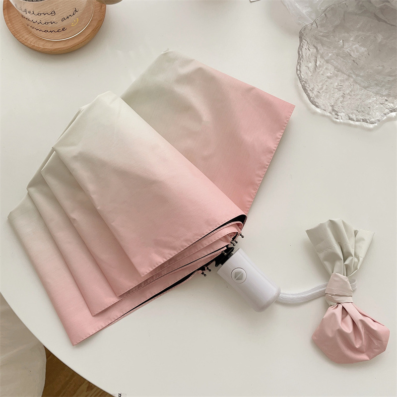 그라디언트 햇살 우산 맑고 비오는 이중 사용 여성용 트라이 폴드 블랙 고무 선 스크린 우산 UV 보호 태양 우산 Ins 자동 우산스토어 가기