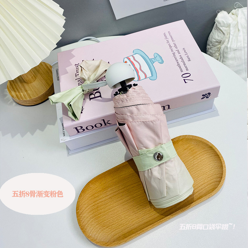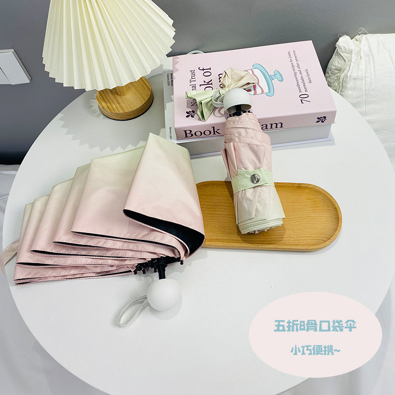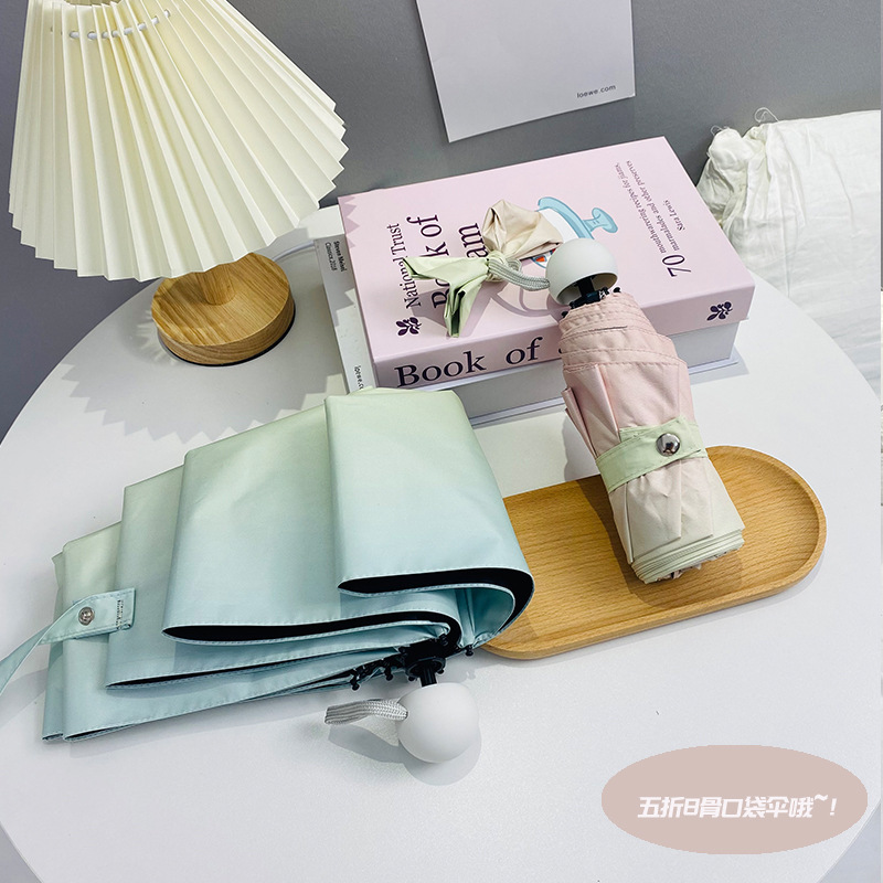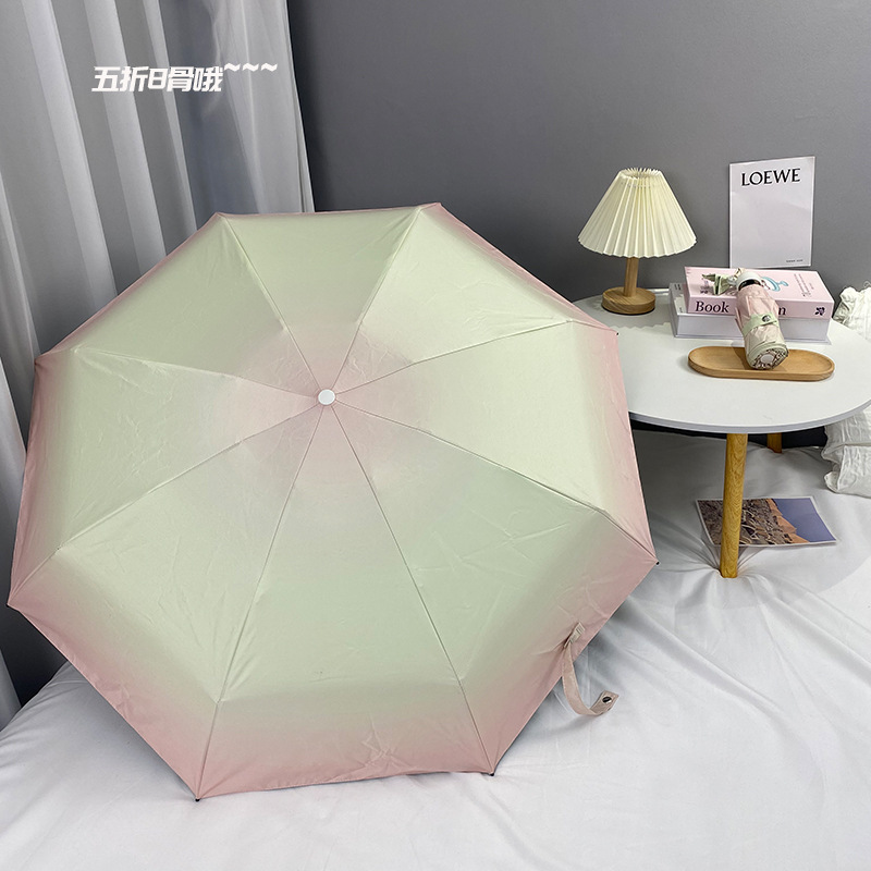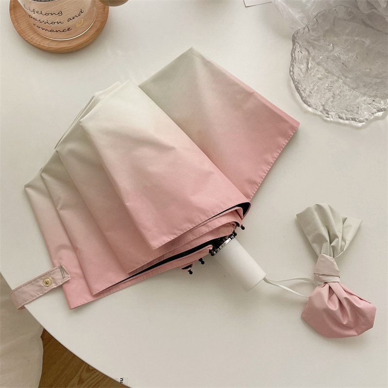 그라디언트 햇살 우산 맑고 비오는 이중 사용 여성용 트라이 폴드 블랙 고무 선 스크린 우산 UV 보호 태양 우산 Ins 자동 우산