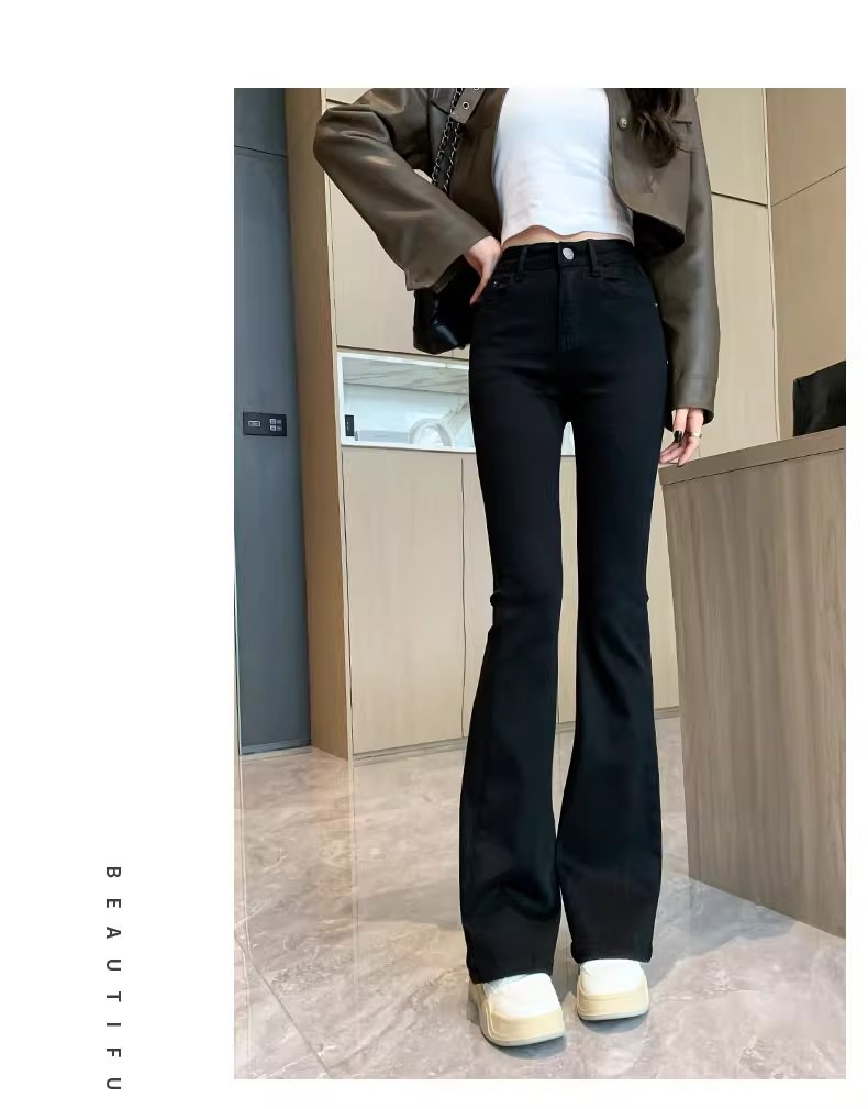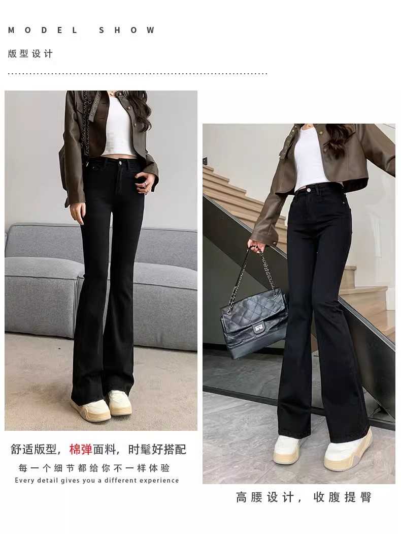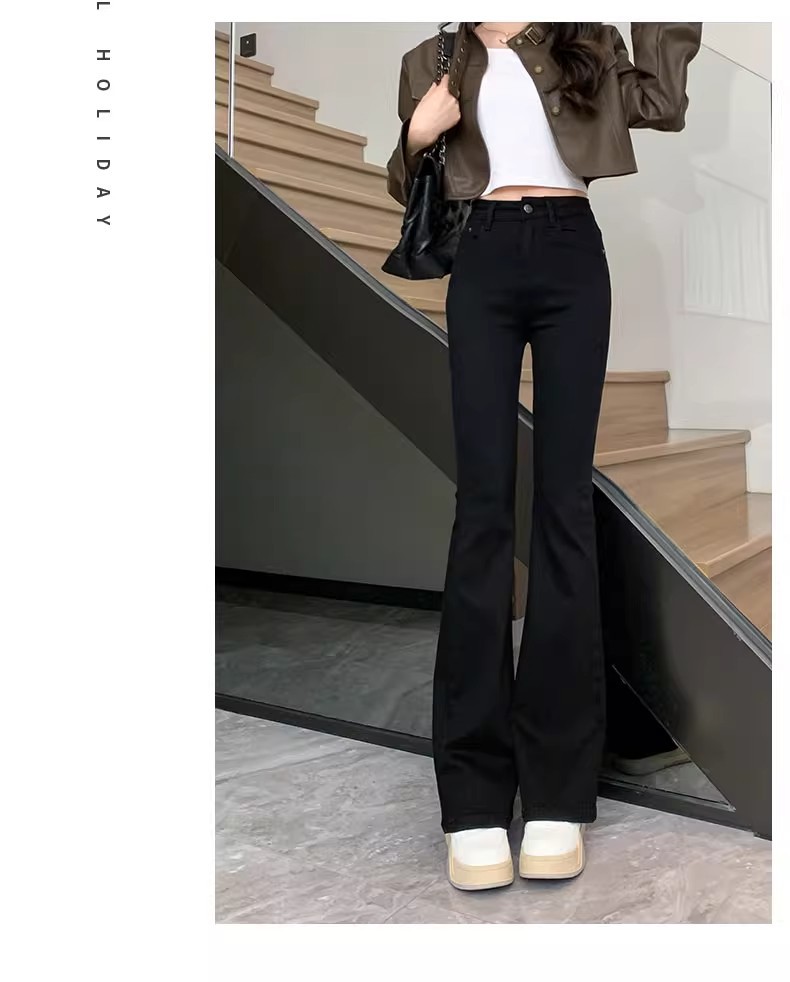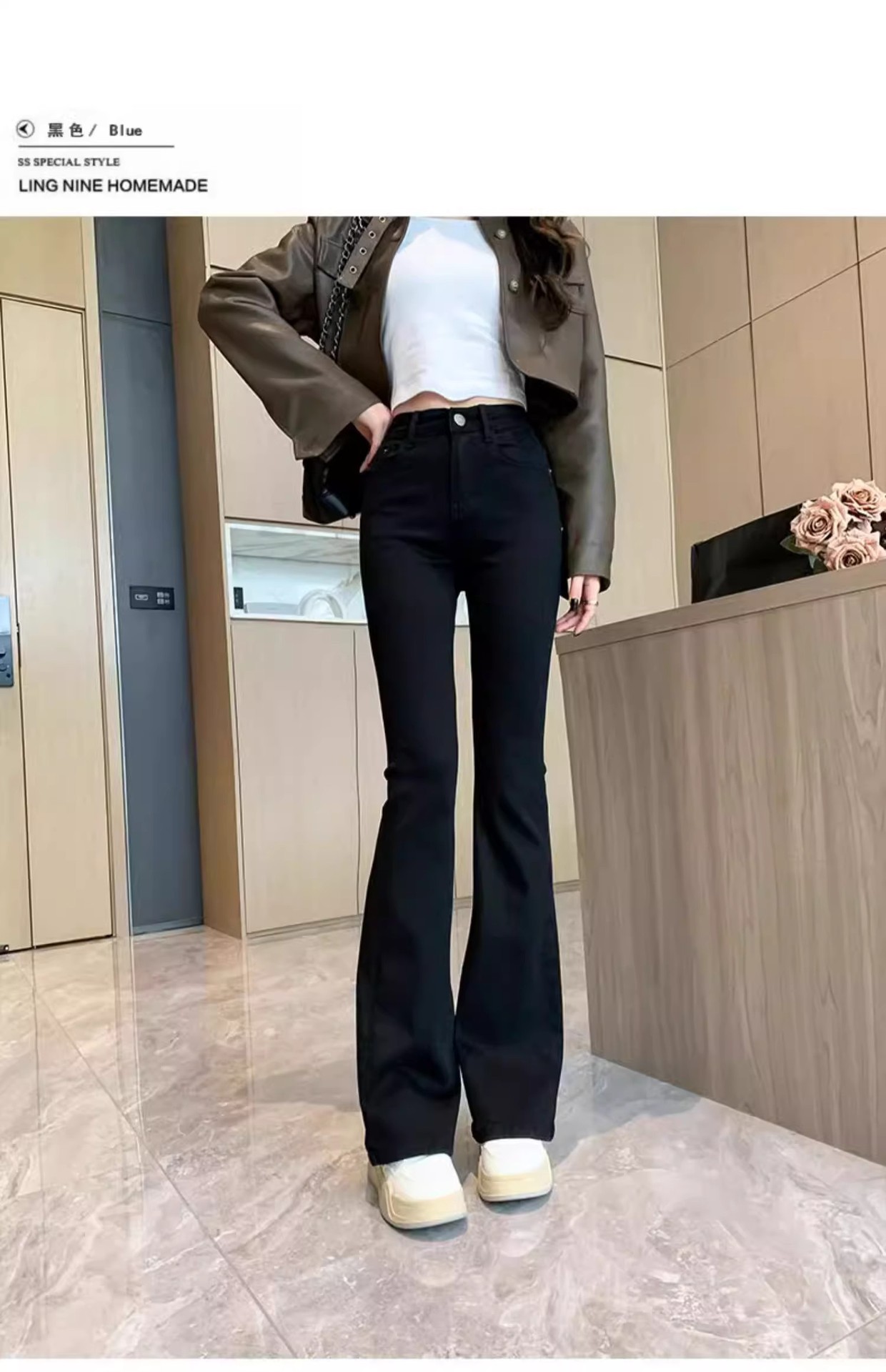 여성용 마이크로 블랙 청바지 2024 봄 여름 신상 하이웨이스트 슬림 스트레이트 루즈 드레이프 플레어 팬츠 트렌드스토어 가기