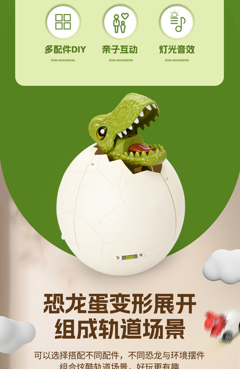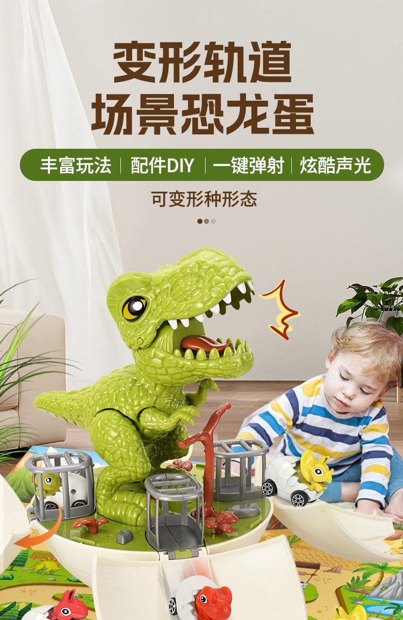 어린이 전기 시뮬레이션 공룡 장면 변형 레일 자동차 슬라이딩 교육 장난감 공룡 계란 소리와 가벼운 슬라이딩 자동차스토어 가기