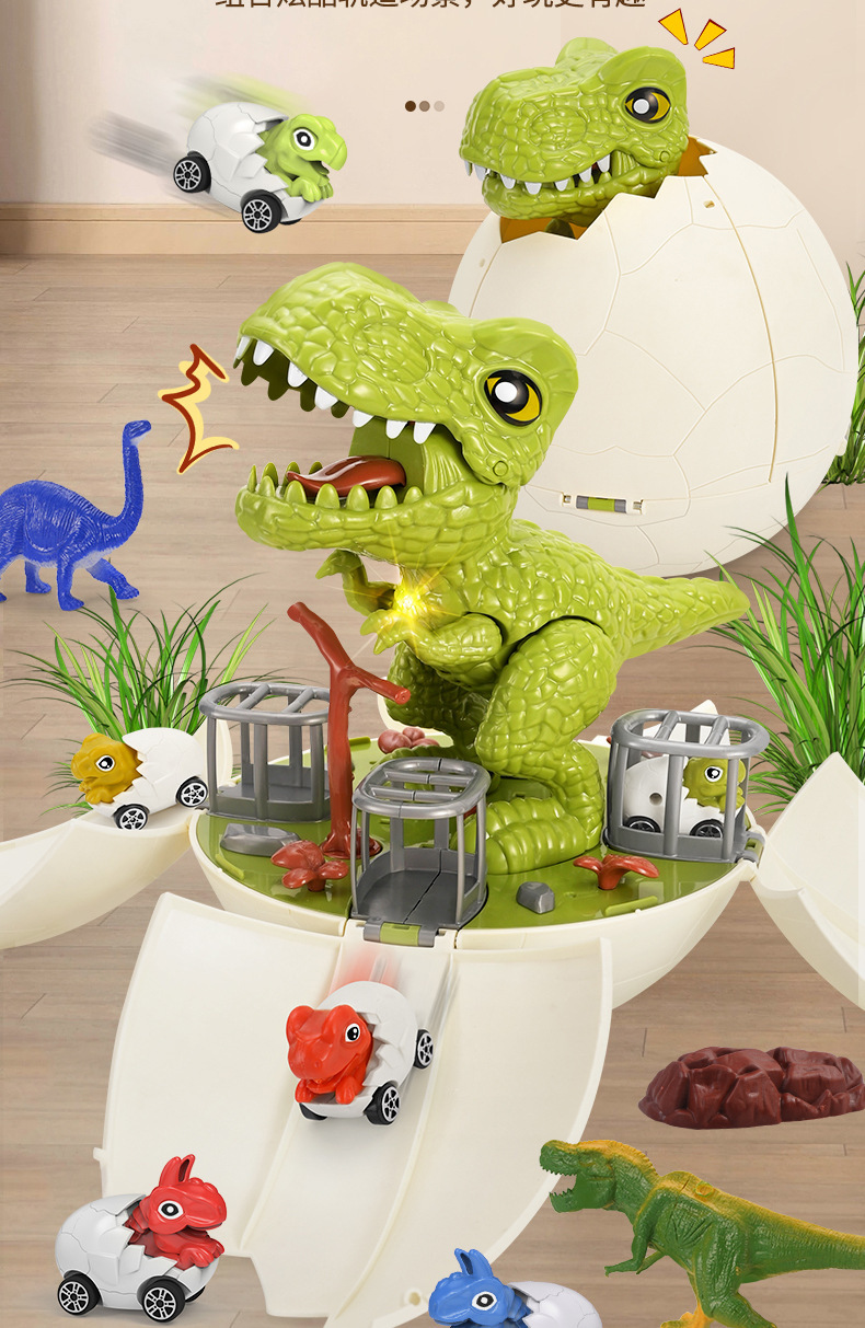 어린이 전기 시뮬레이션 공룡 장면 변형 레일 자동차 슬라이딩 교육 장난감 공룡 계란 소리와 가벼운 슬라이딩 자동차