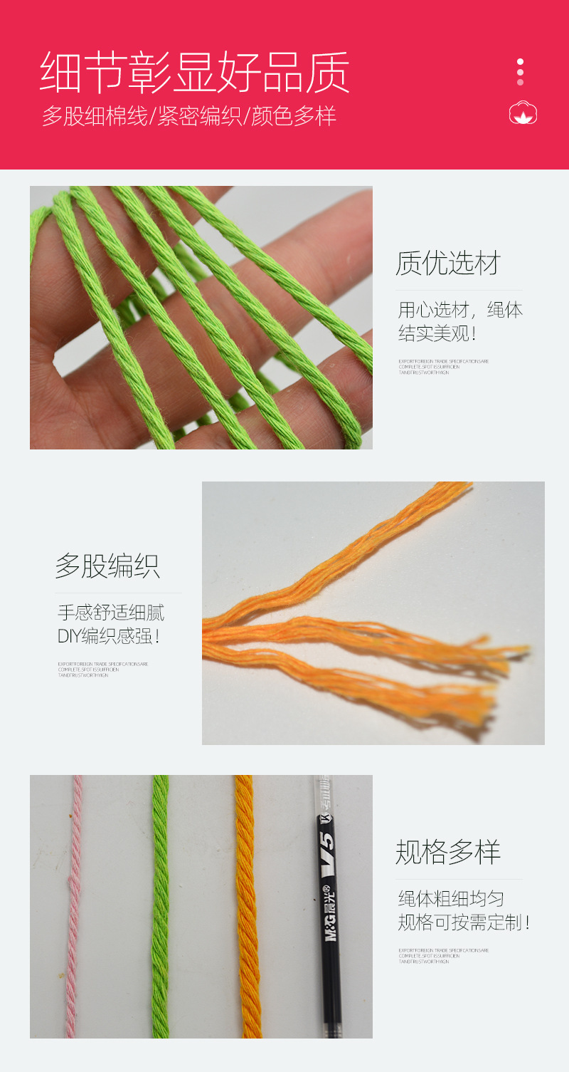 彩色棉绳、棉绳、棉线绳、帽绳,吊牌绳、棉线编织绳、挂毯编织绳、彩色棉绳子