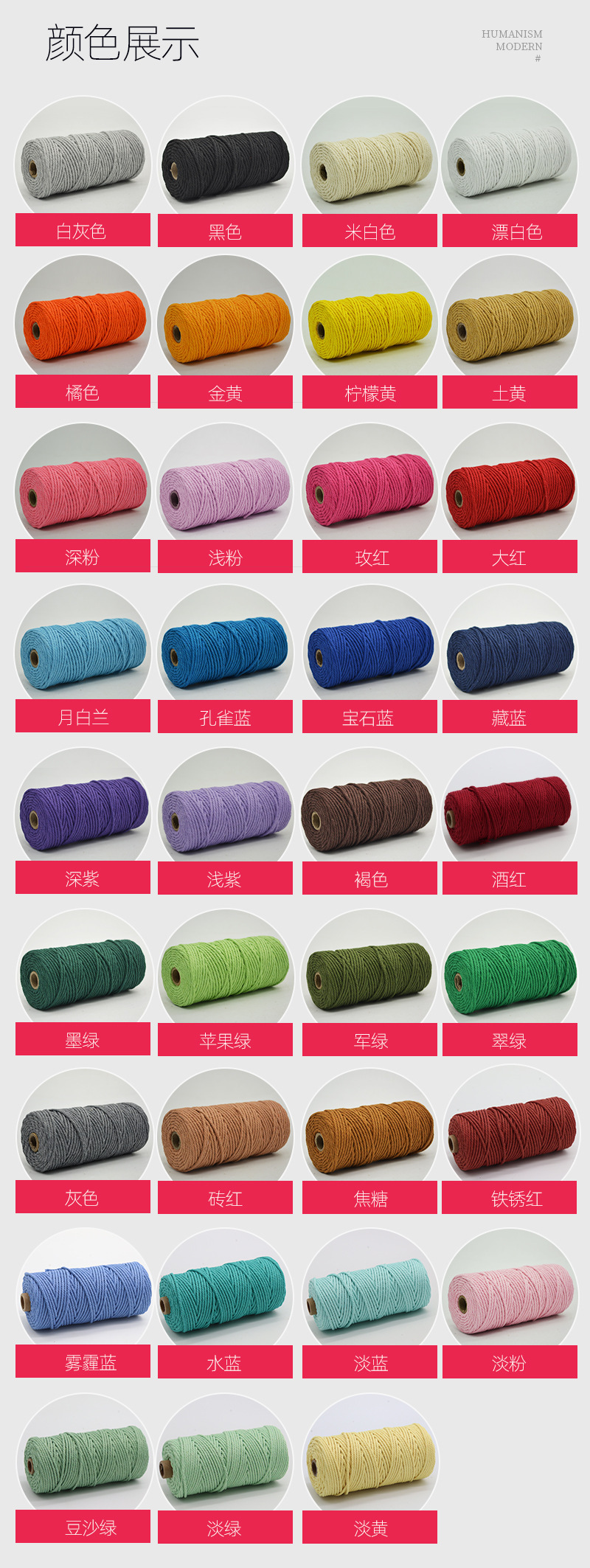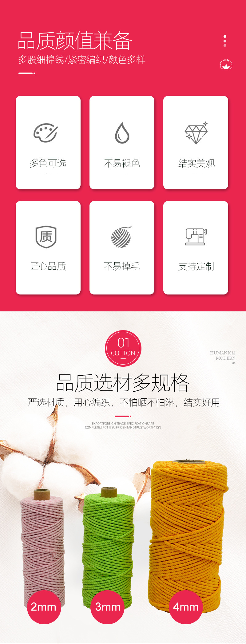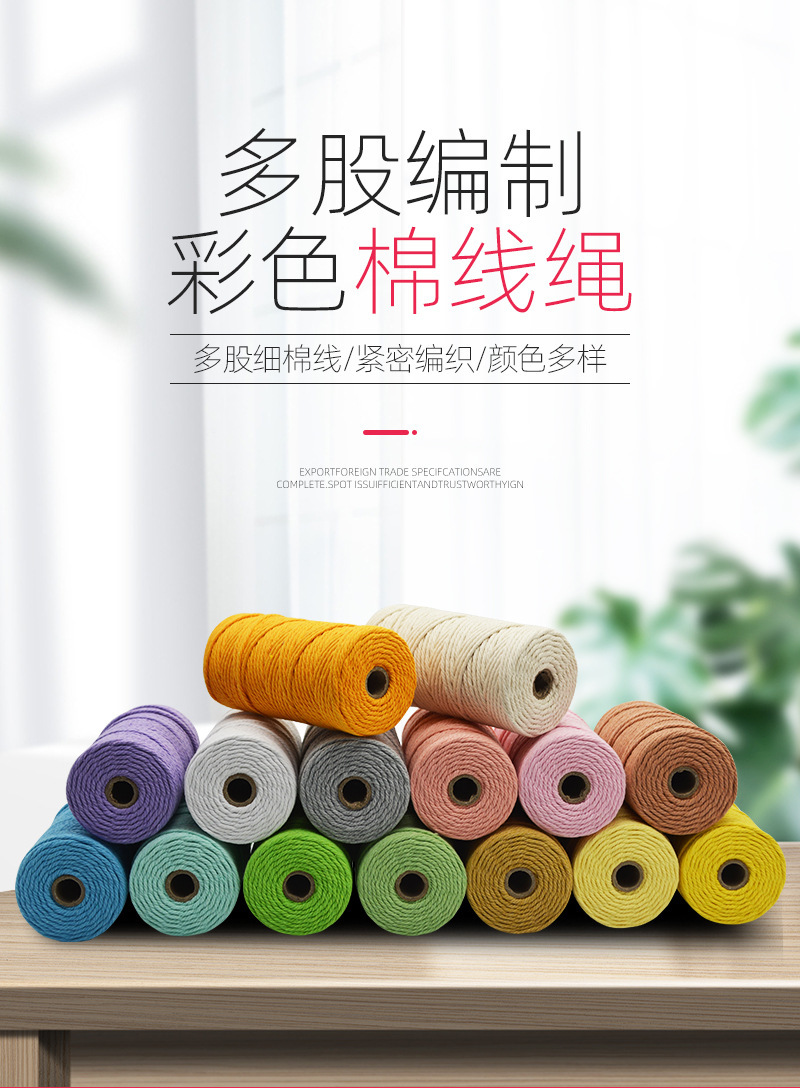 2mm 컬러 코튼 로프 멀티 스트랜드 합성 컬러 짠 로프 수제 태피스트리 홈 섬유 태그 로프 DIY 코튼 로프스토어 가기