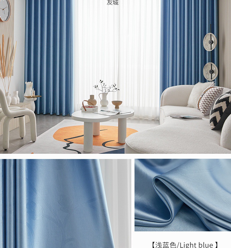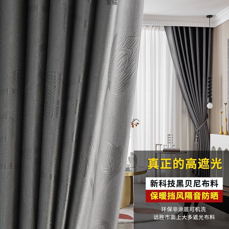 가벼운 럭셔리 커튼 침실 음영 거실 발코니 음영 간단한 커튼 천공 후크 커튼 완성 아마존