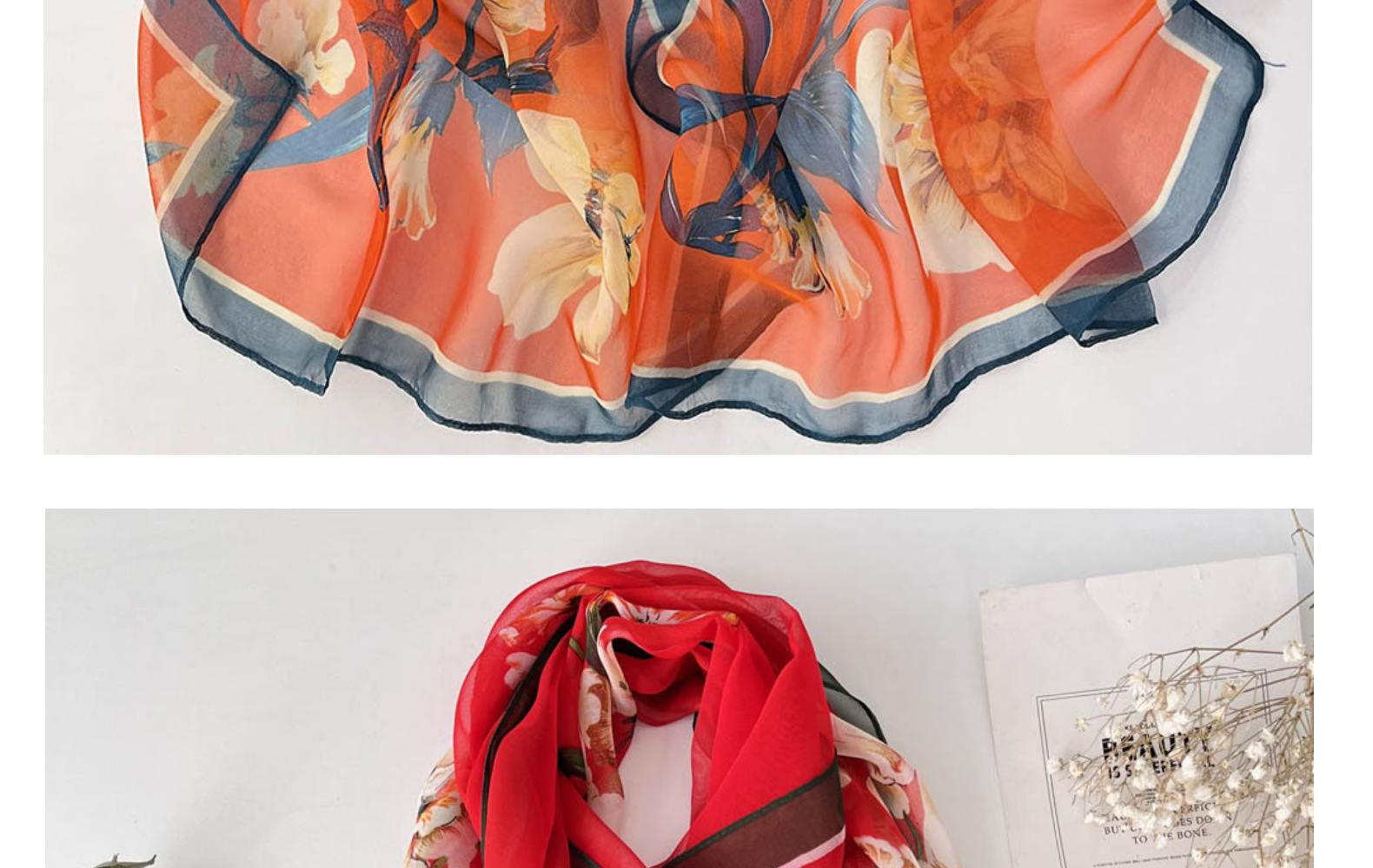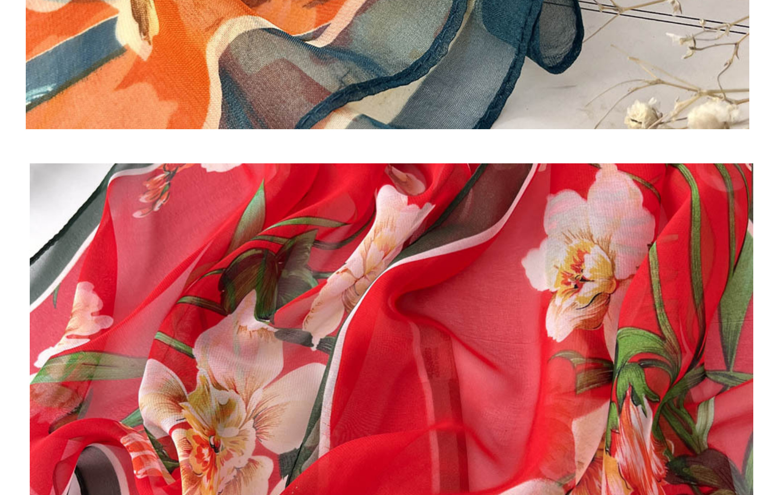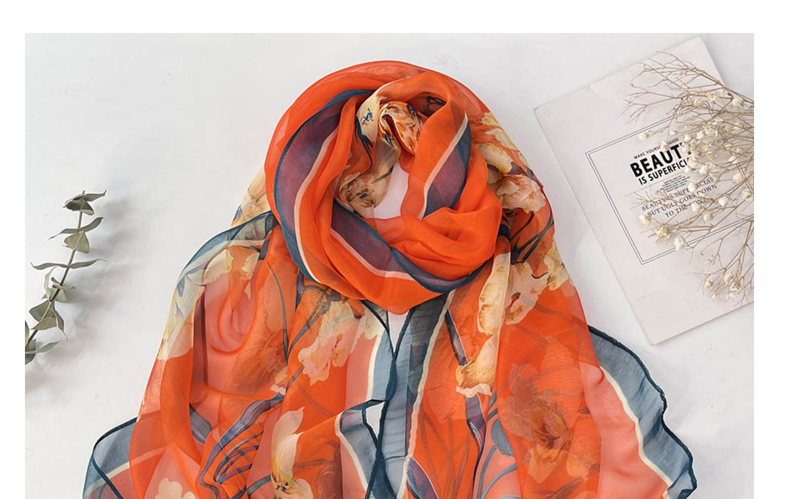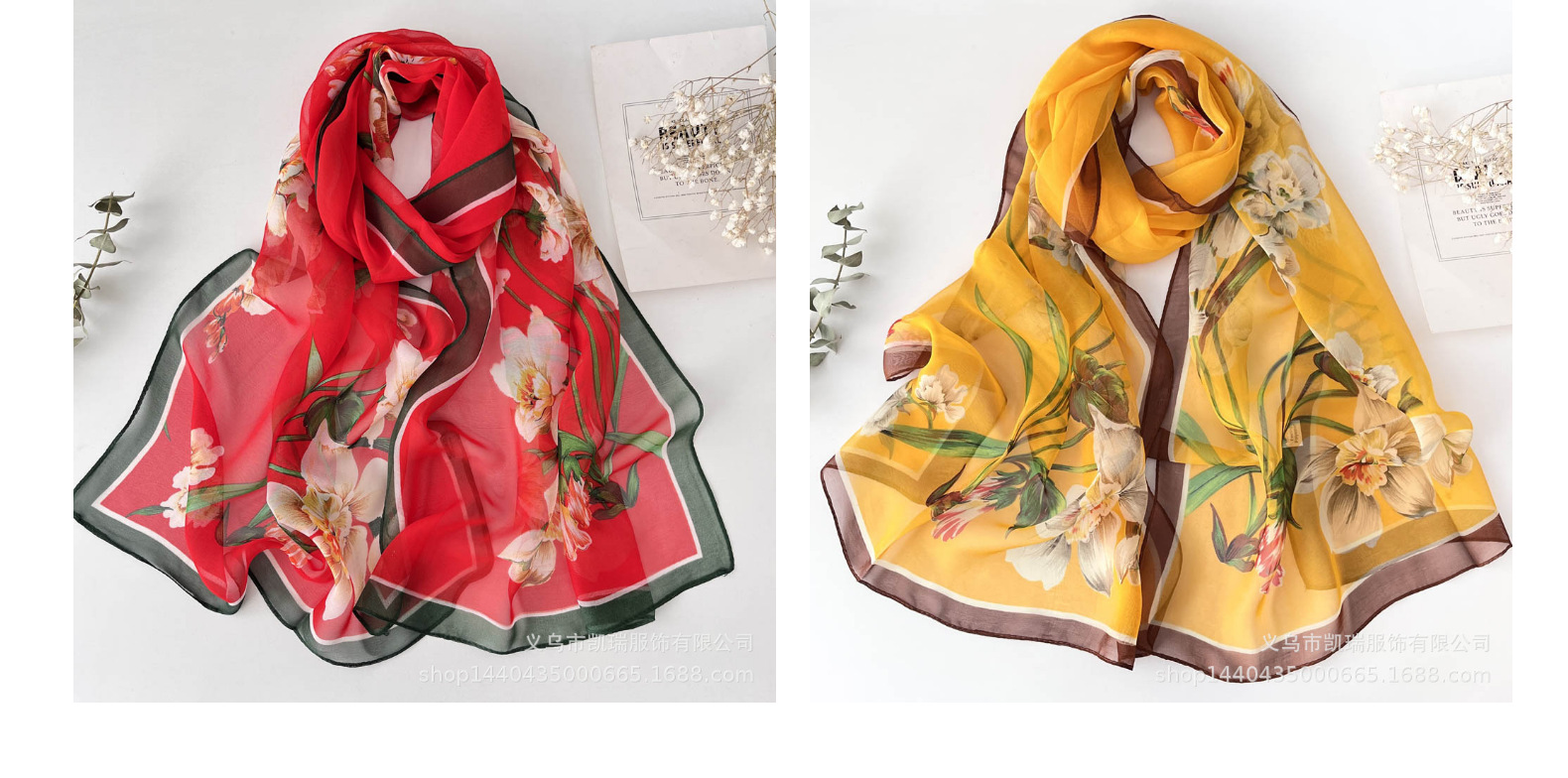 스카프 스카프 여성의 얇은 여름 새로운 선 스크린 실크 인쇄 스카프 히비스커스 꽃 도매