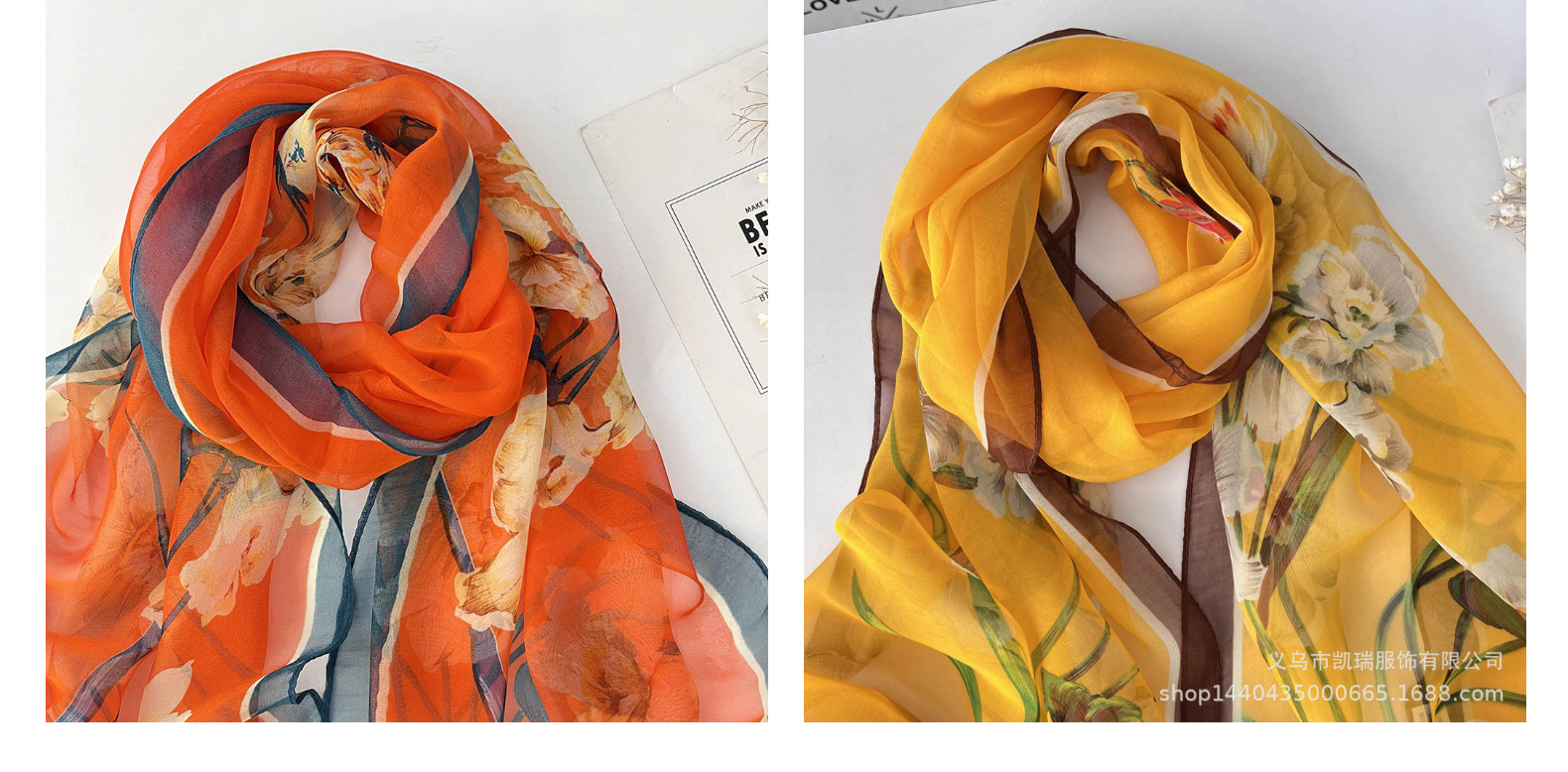 스카프 스카프 여성의 얇은 여름 새로운 선 스크린 실크 인쇄 스카프 히비스커스 꽃 도매스토어 가기
