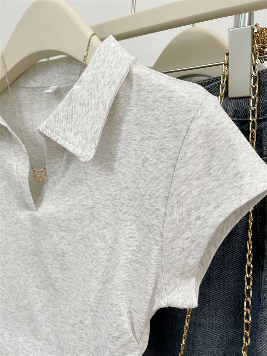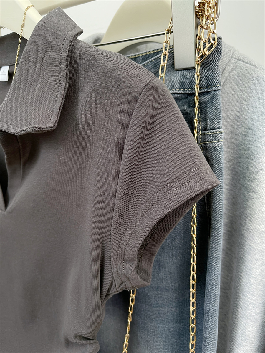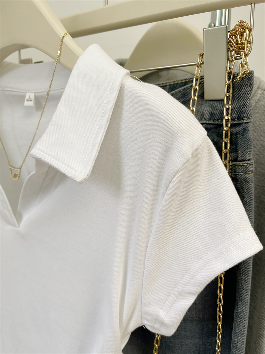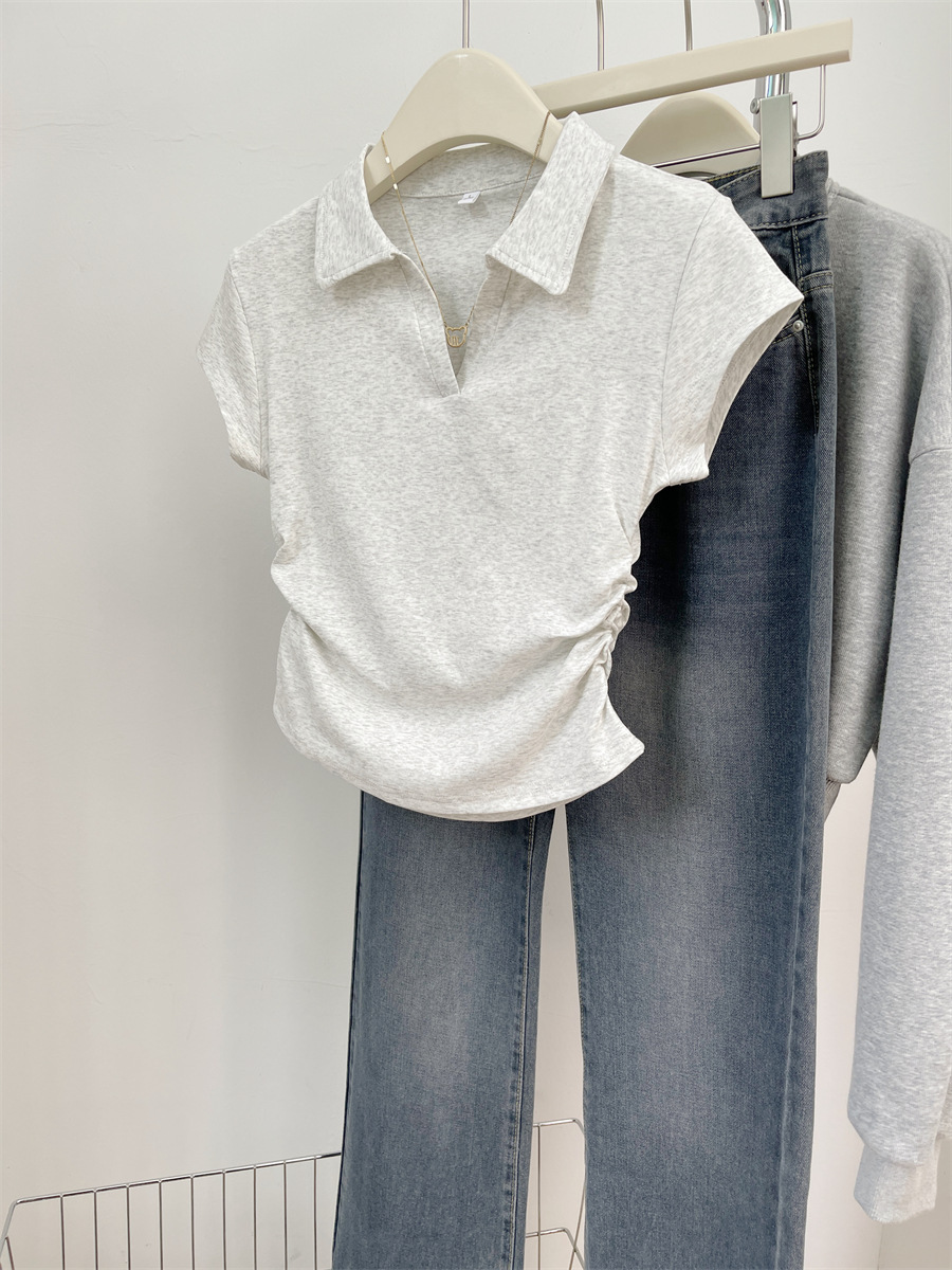 아메리칸 스타일 짧은 폴로 칼라 어깨 티셔츠 여성용 짧은 소매 여름 Pleated 허리 타이트 핫 소녀 탑 트렌디베이스 셔츠스토어 가기