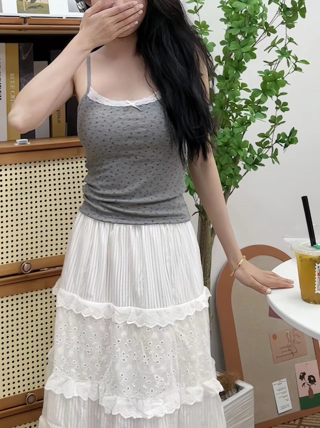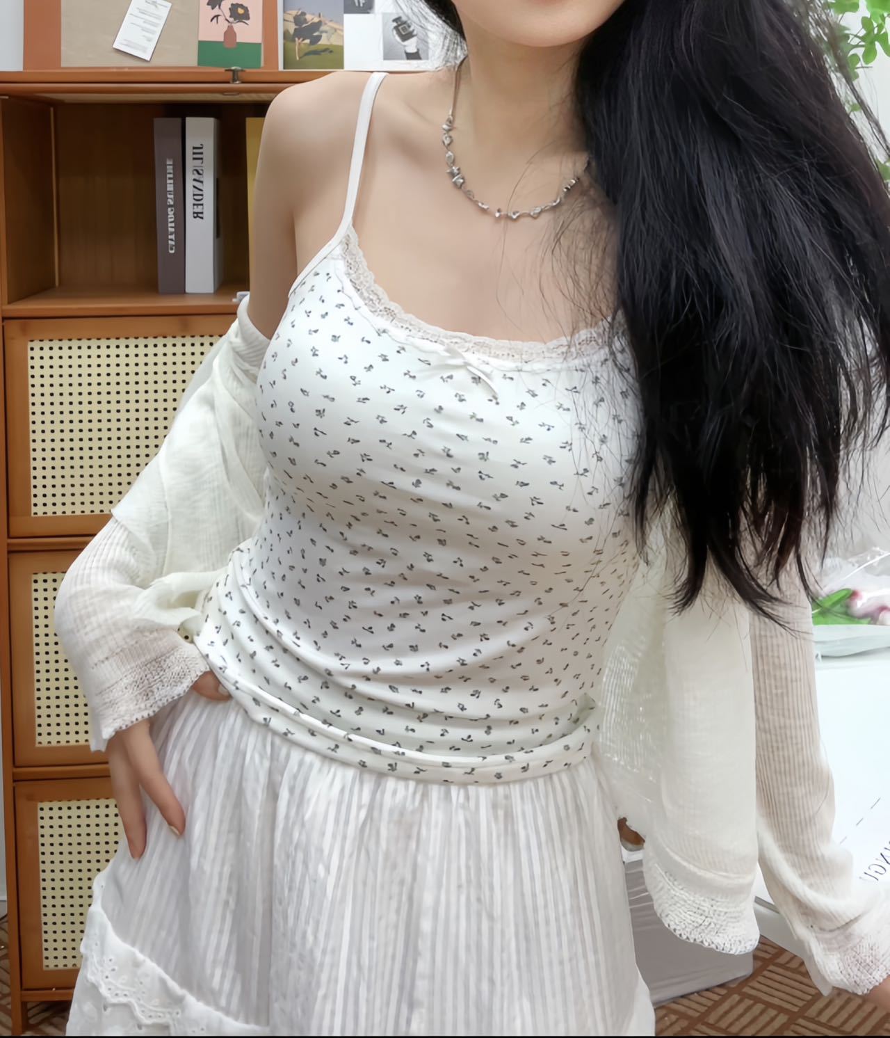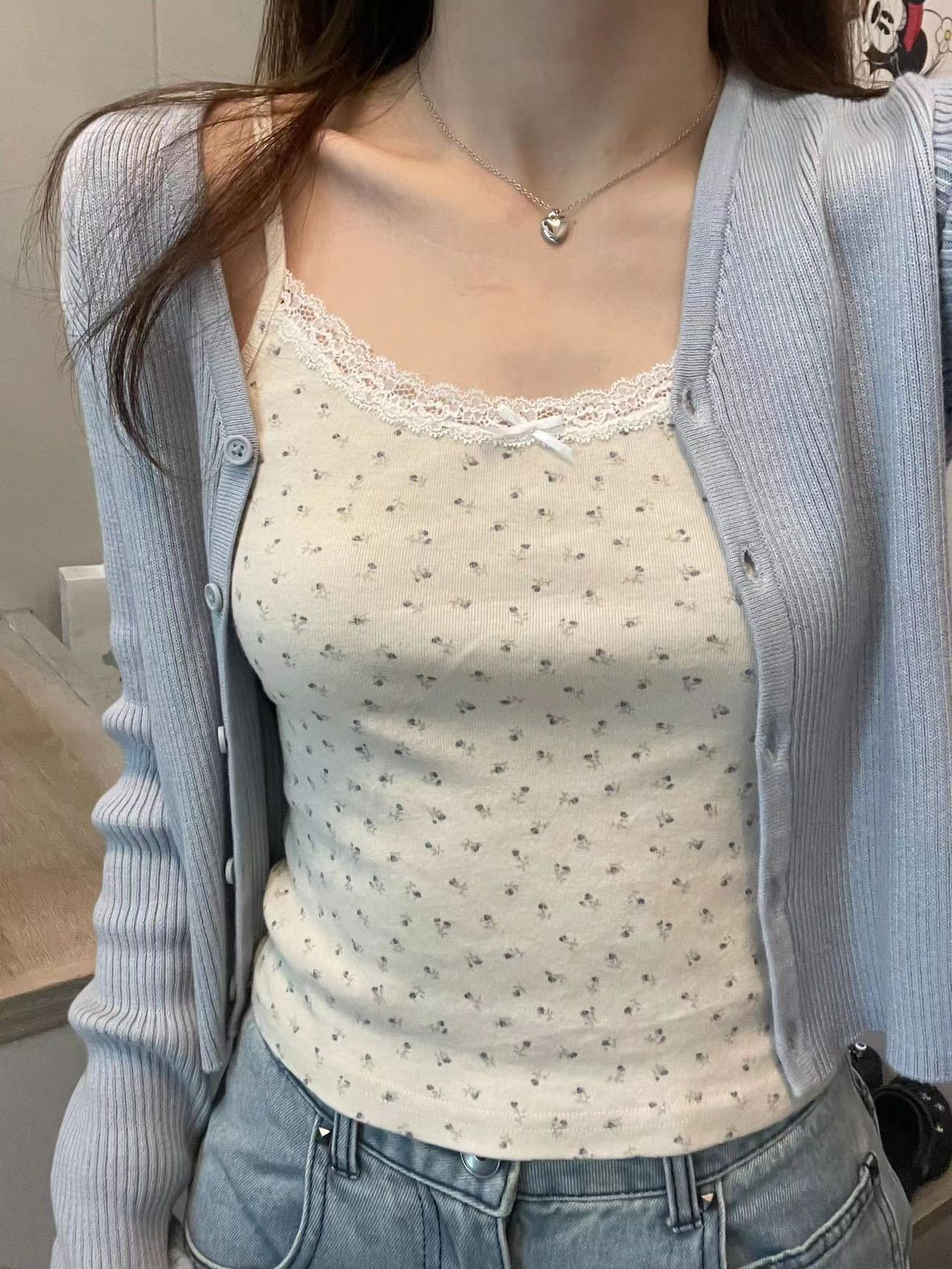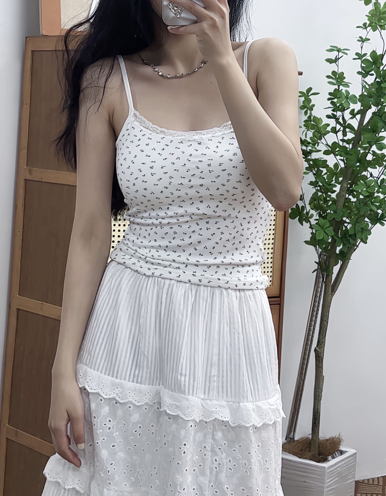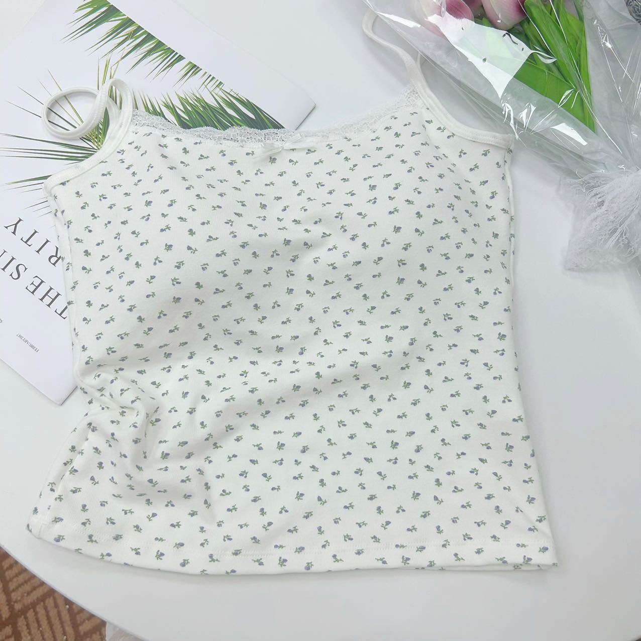 BM 스타일 플로랄 카미솔 여성 벨트 가슴 패드 원피스 아름다운 뒷면 안쪽 외부를 입고 한국식 퓨어 램 코튼 카미솔