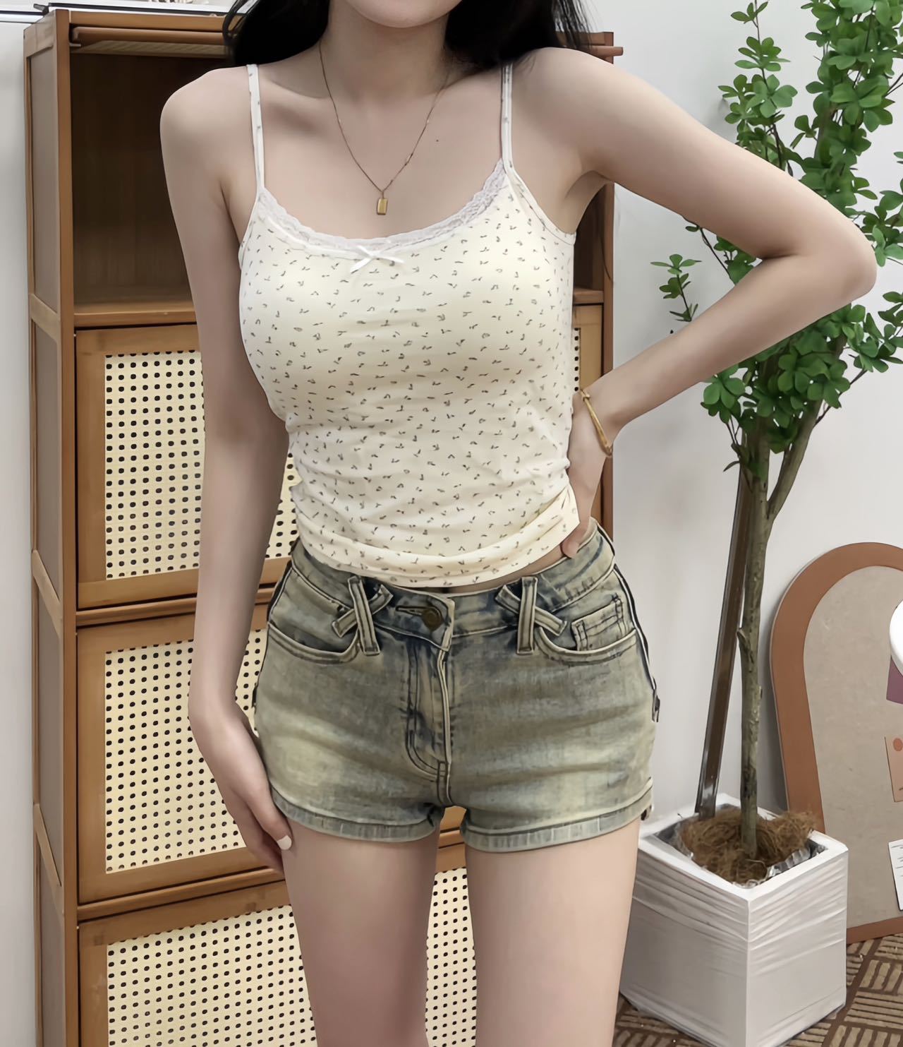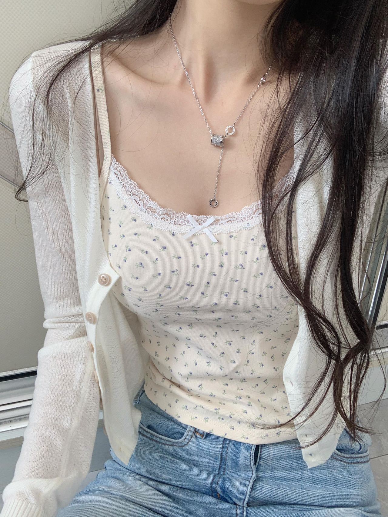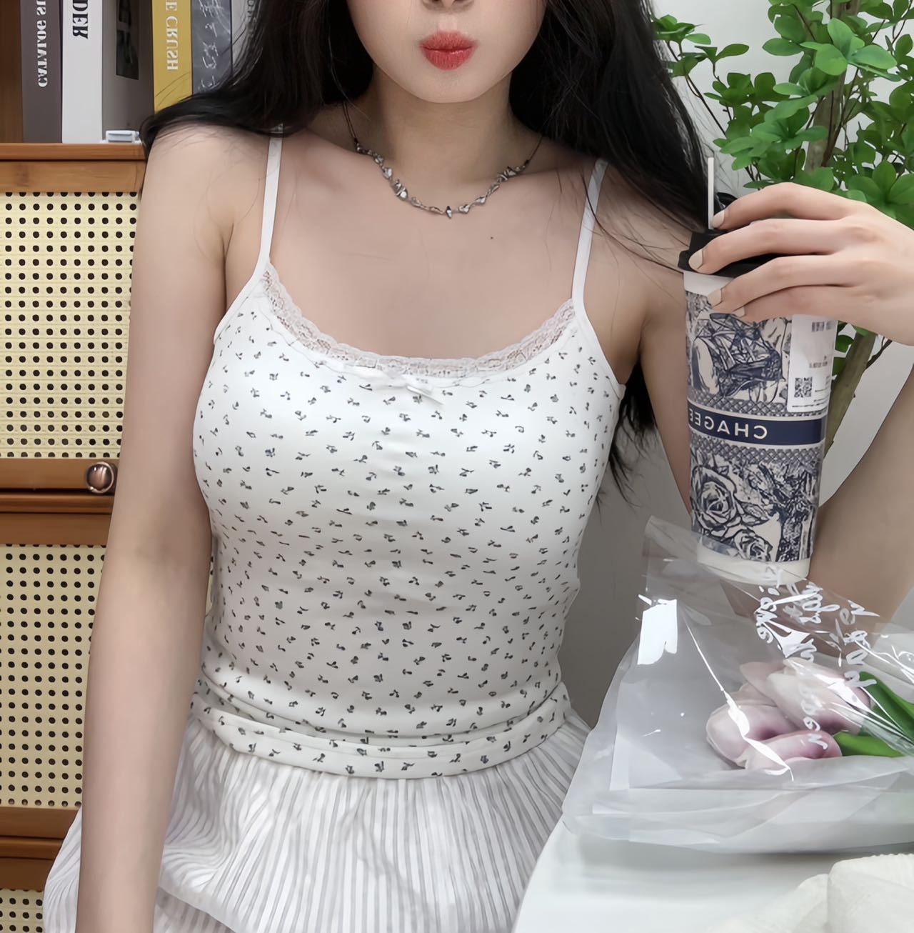 BM 스타일 플로랄 카미솔 여성 벨트 가슴 패드 원피스 아름다운 뒷면 안쪽 외부를 입고 한국식 퓨어 램 코튼 카미솔스토어 가기