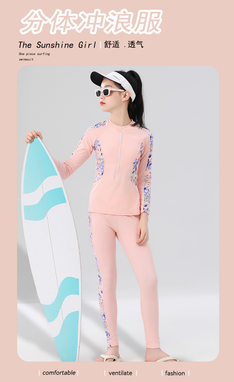 2024 어린이 수영복 분할 소녀 중 · 대형 어린이 긴 소매 바지 선 스크린 세트 소녀들의 보수적 인 해변 수영복스토어 가기