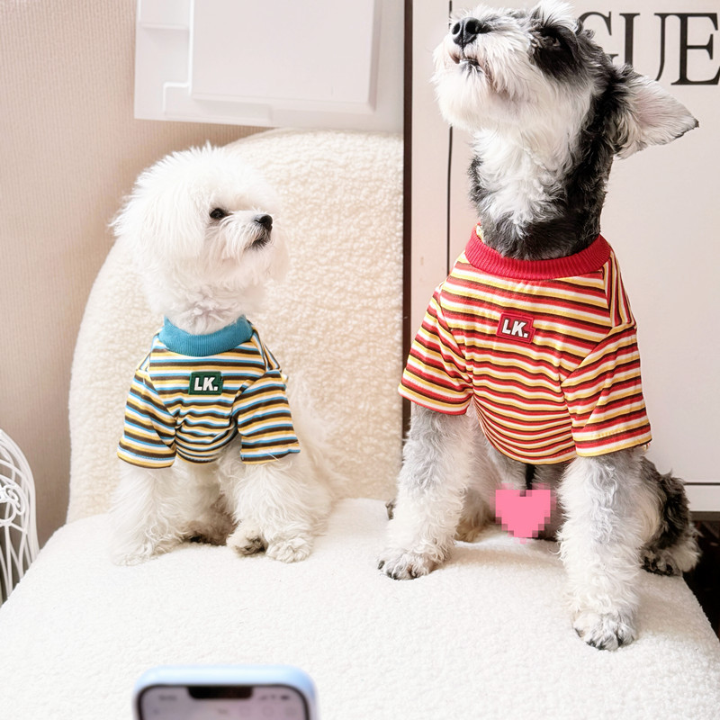 애완 동물 새 여름 원피스 줄무늬 티셔츠 반팔 테디 칠리 차이 개 빅시 곰 중소 고양이 개 여름 원피스스토어 가기