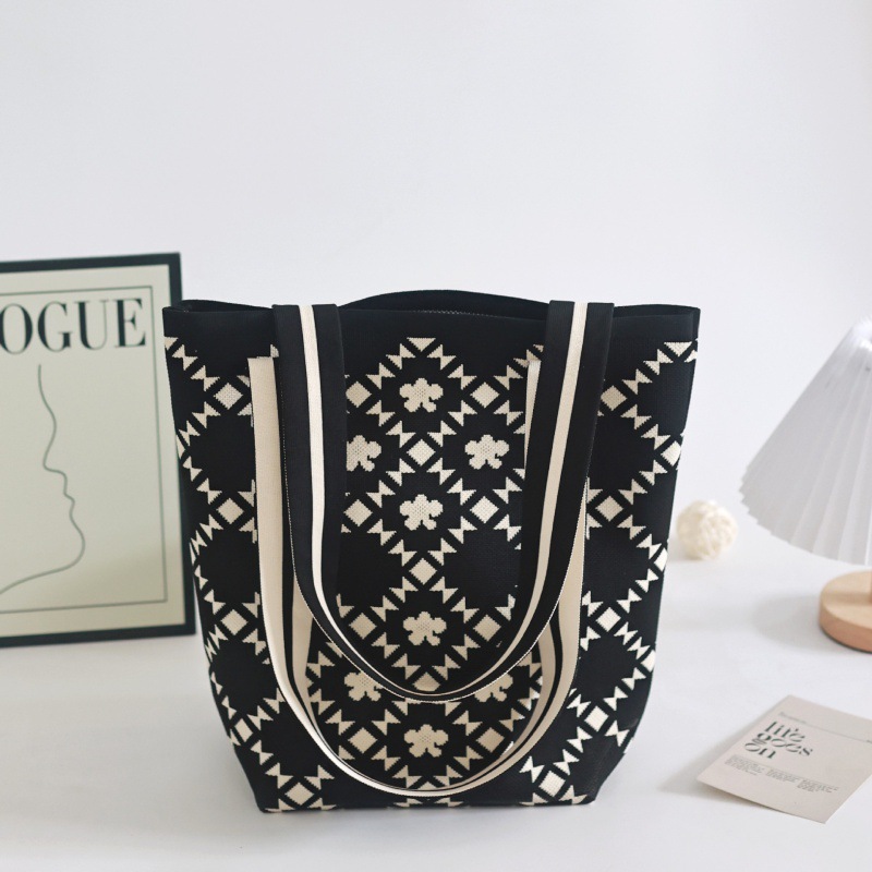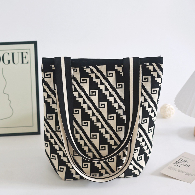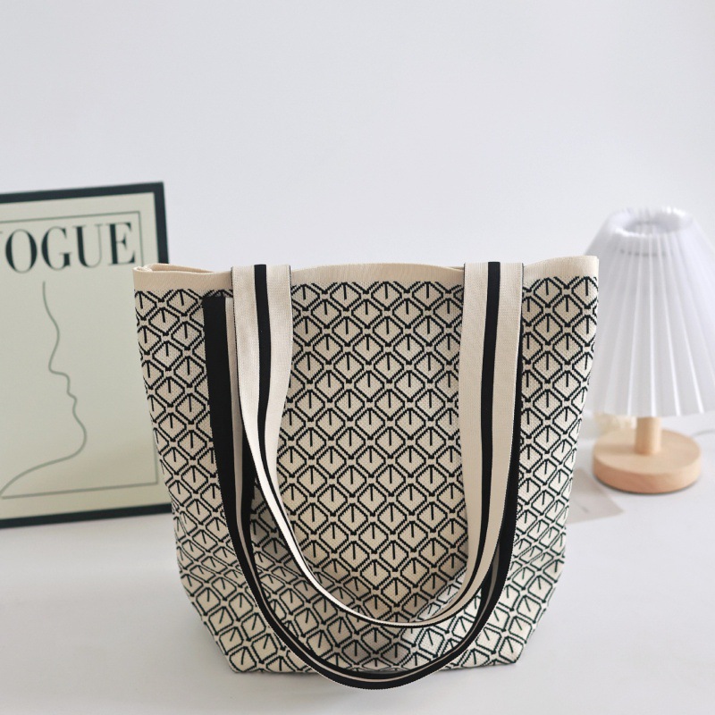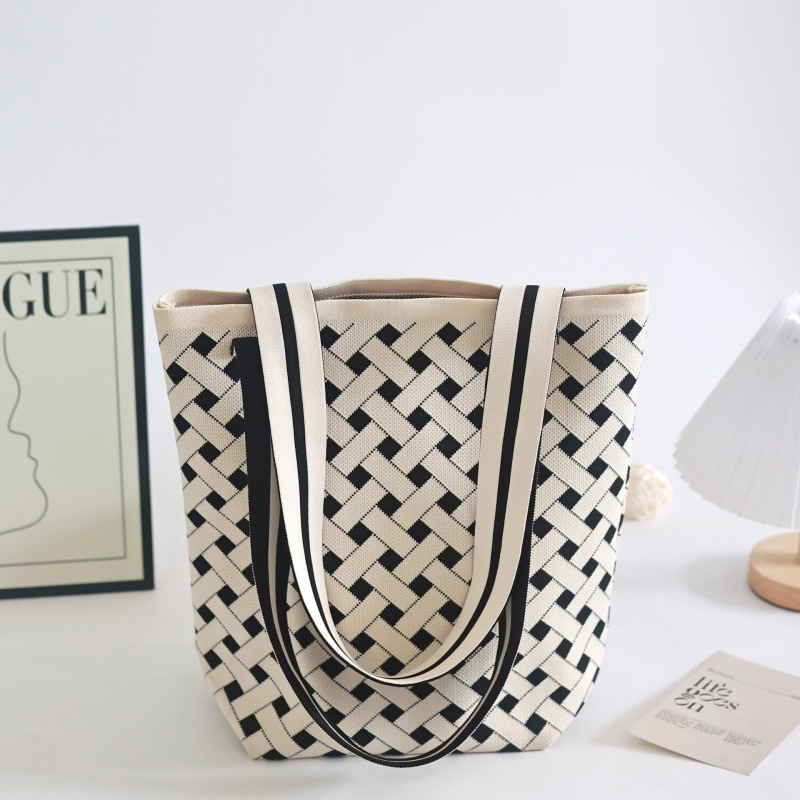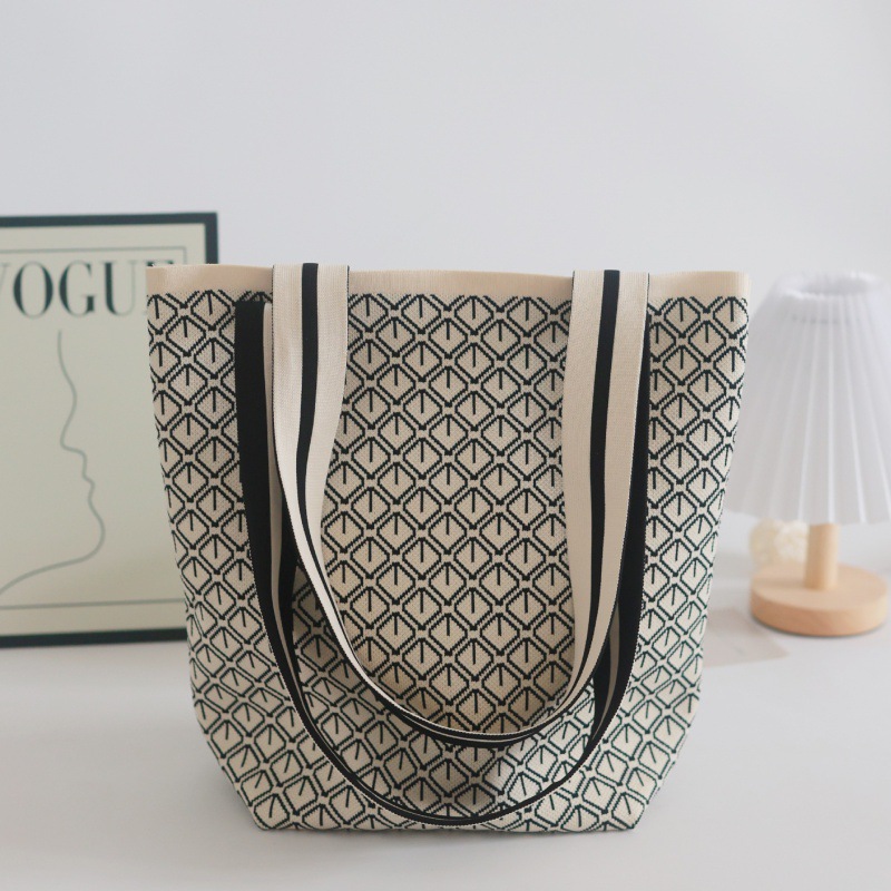 가방 여성 틈새 디자인 니트 어깨 가방 거리 쇼핑 대용량 가방 통근 버킷 가방 배낭 사첼스토어 가기