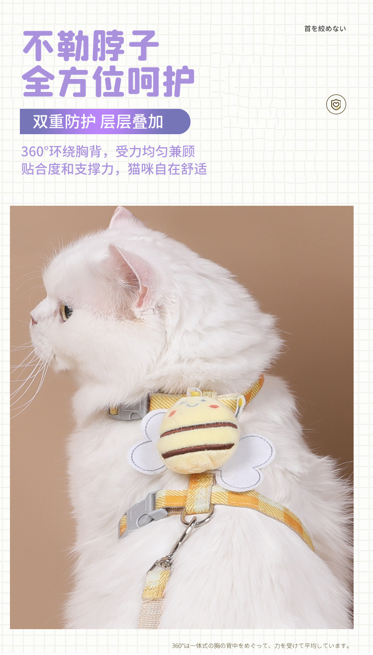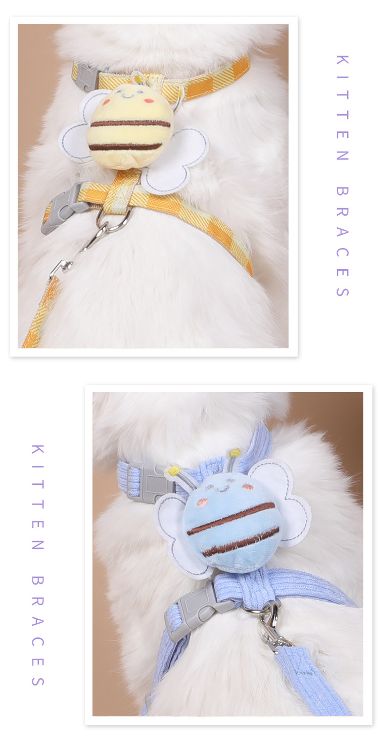 애완동물 용품 고양이 하네스 작은 꿀벌 가죽끈 통기성 작은 개 개 가죽끈 고양이 및 개 가죽끈 만화.스토어 가기
