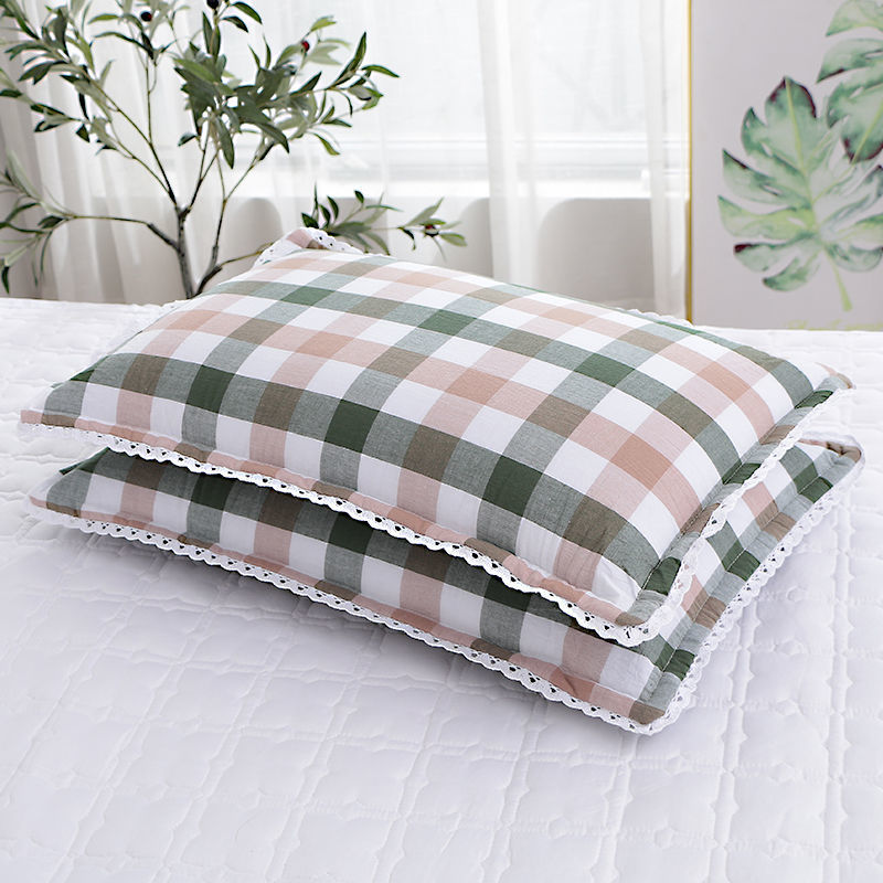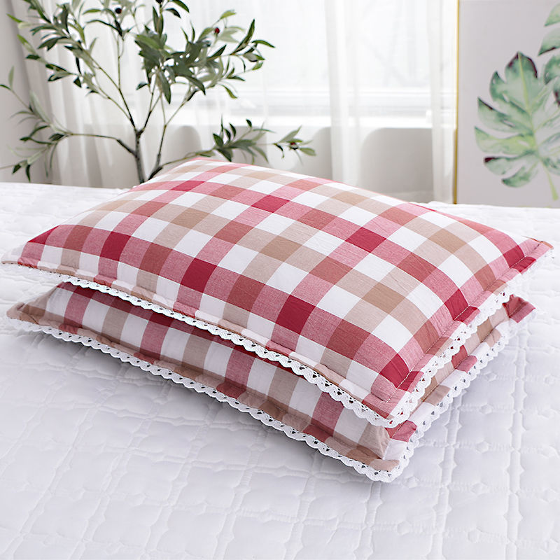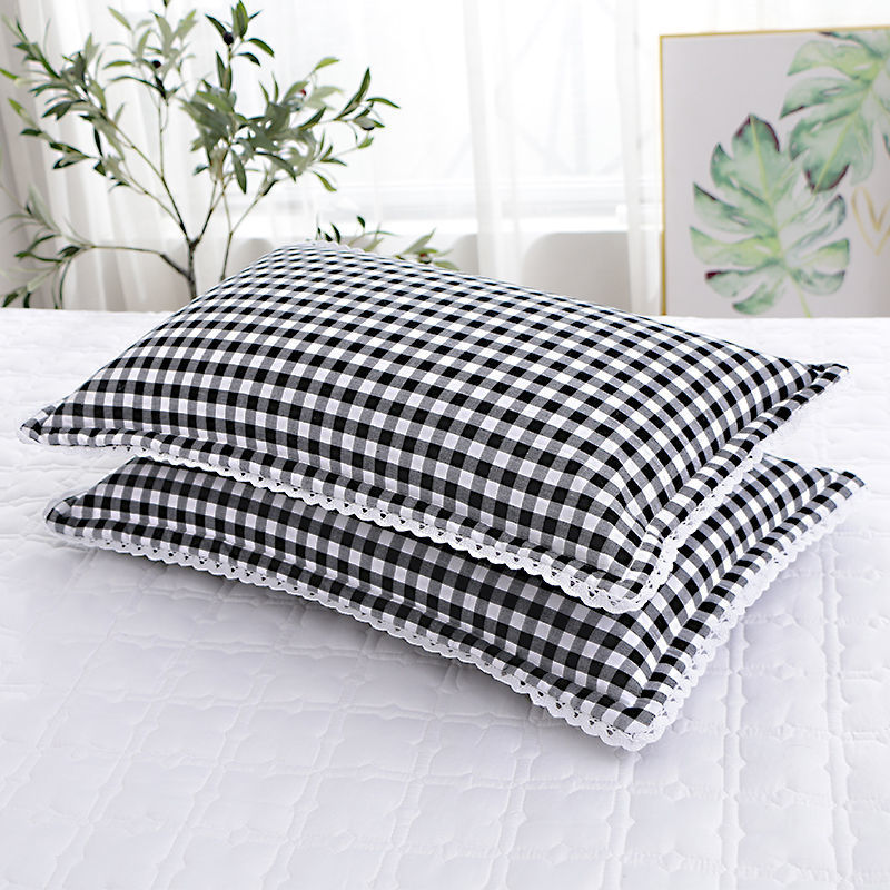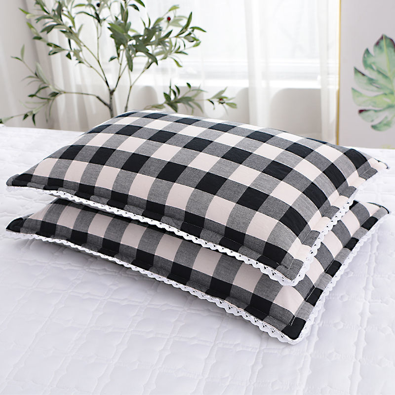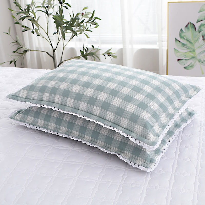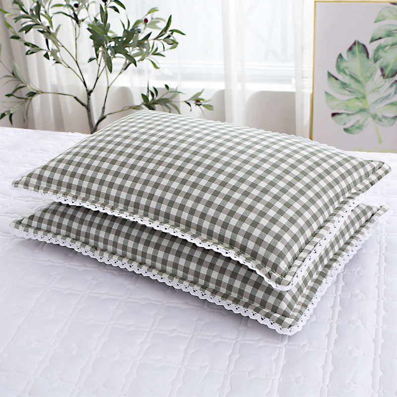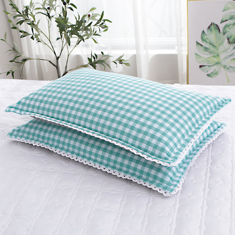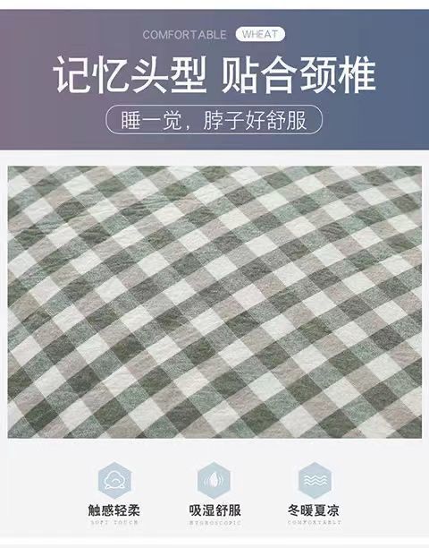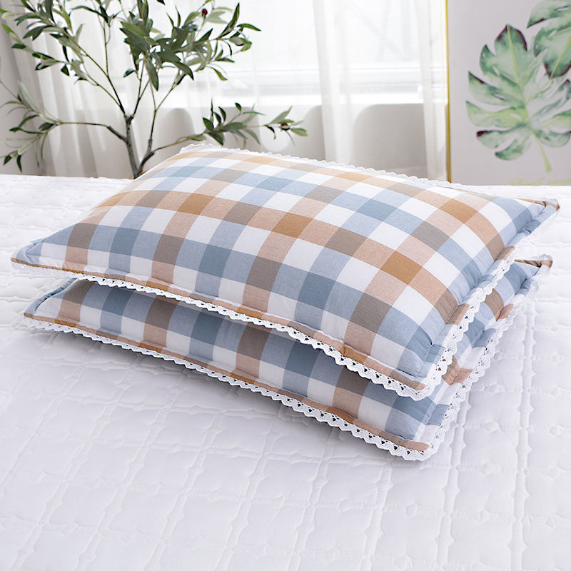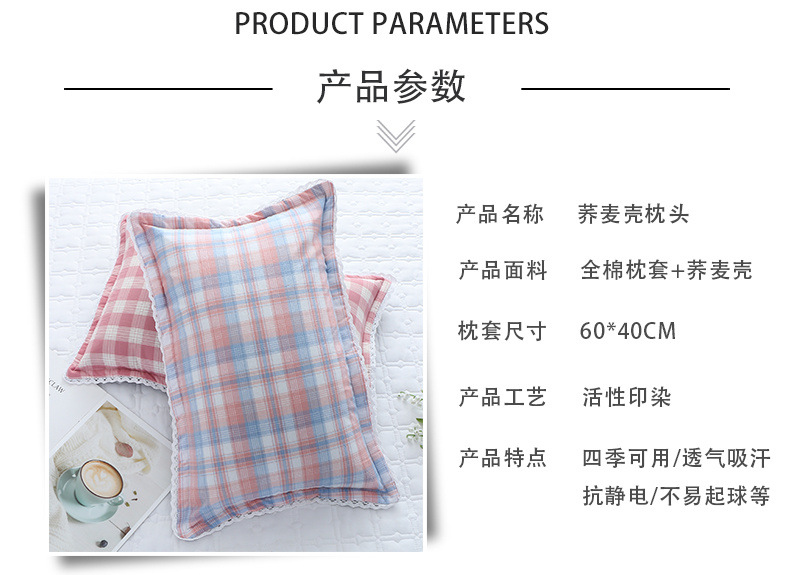 • 블루 커피 작은 격자 메밀 껍질 베개