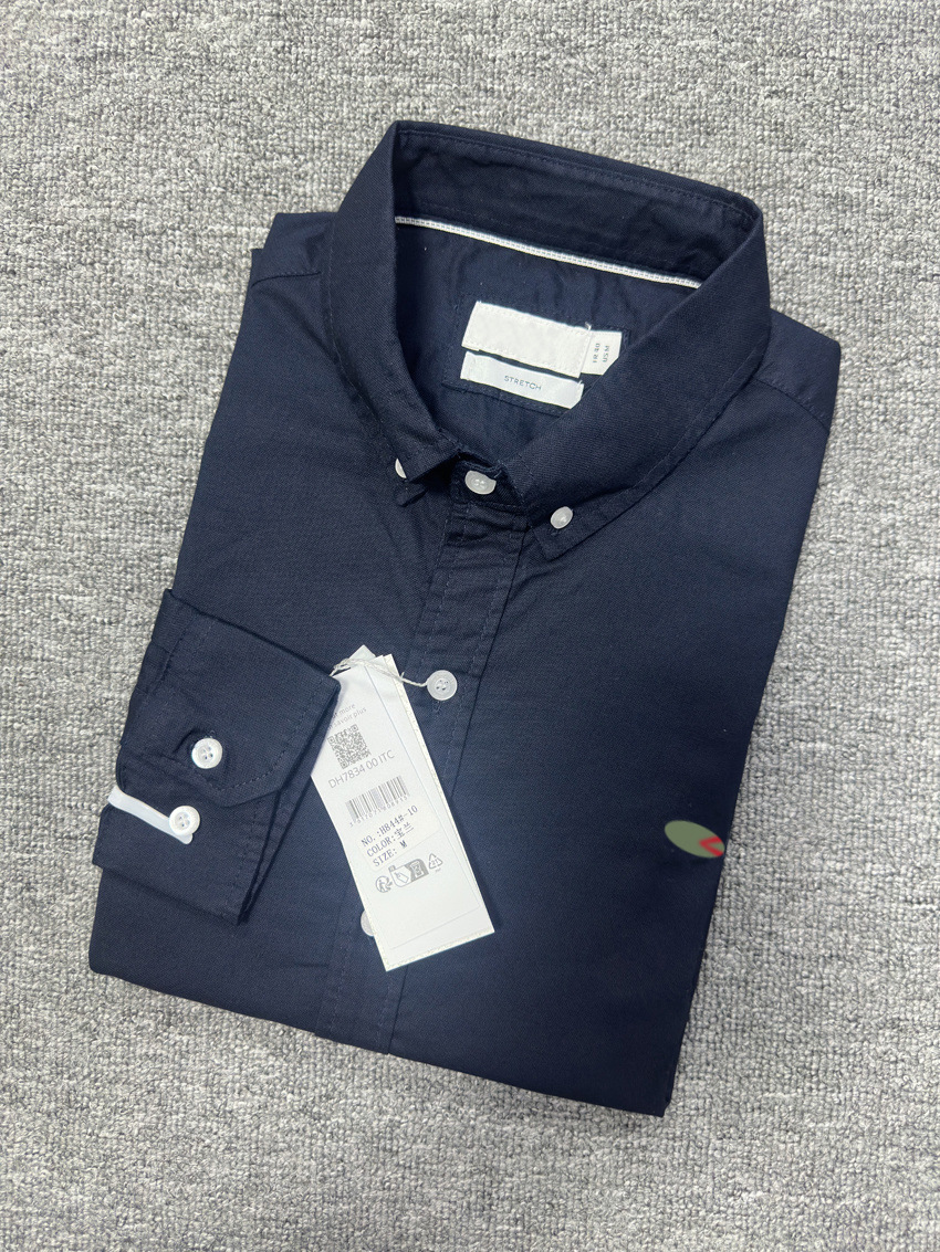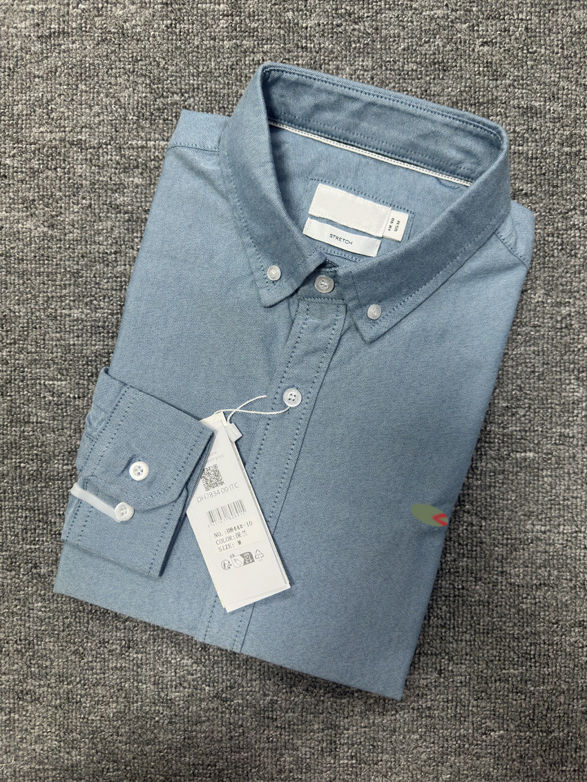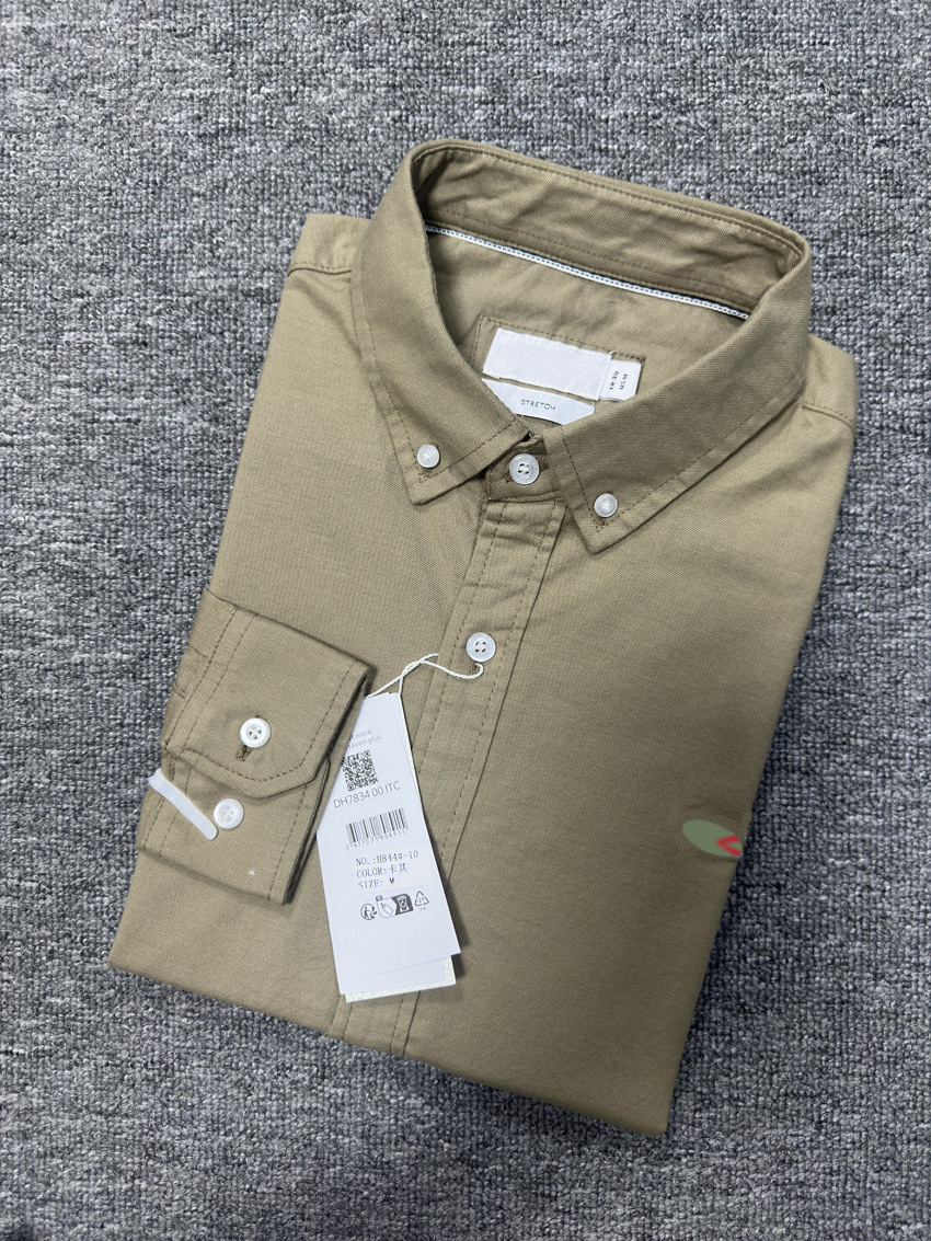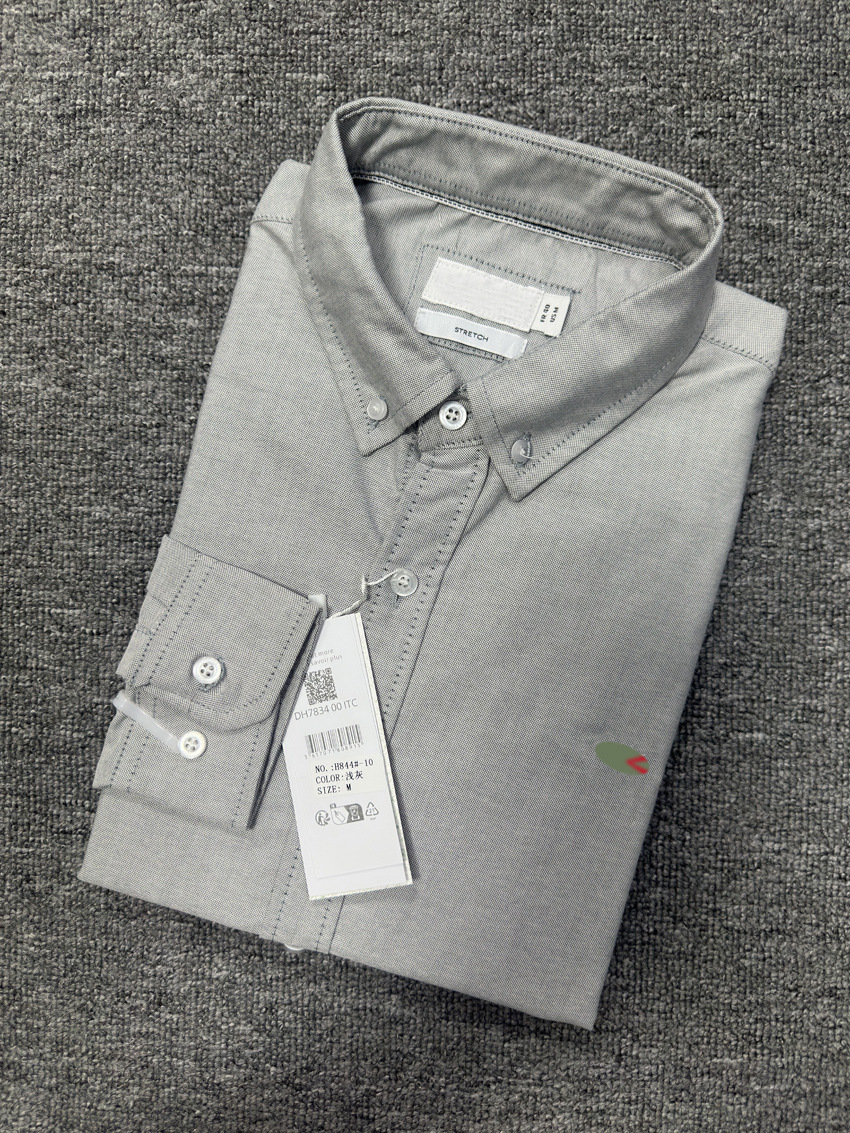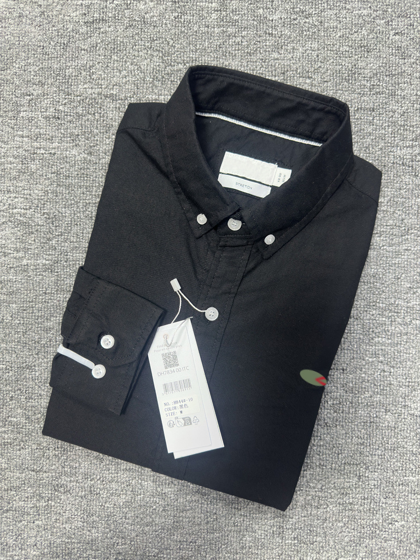 남성 청소년 긴 소매 생선 라벨 셔츠 봄과 가을 비즈니스 패션 캐주얼 옥스포드 회전 단색 면 생선 라벨 셔츠스토어 가기
