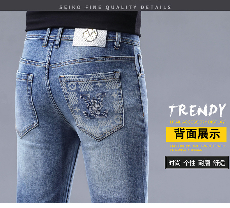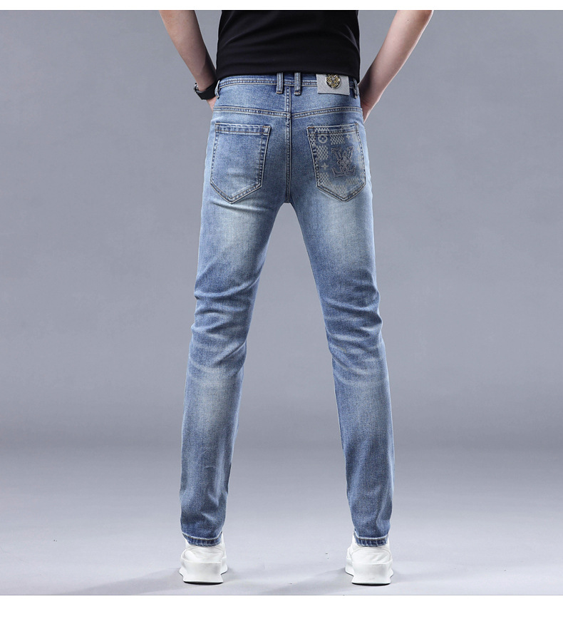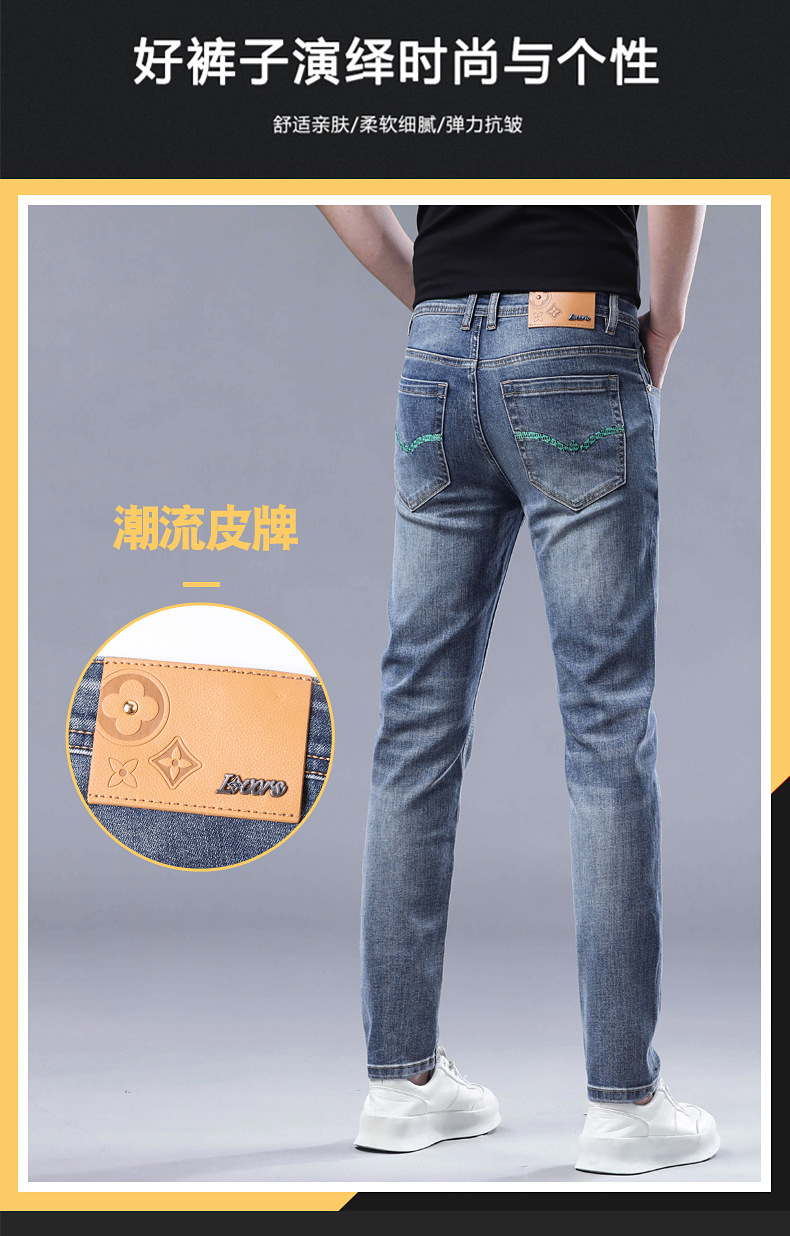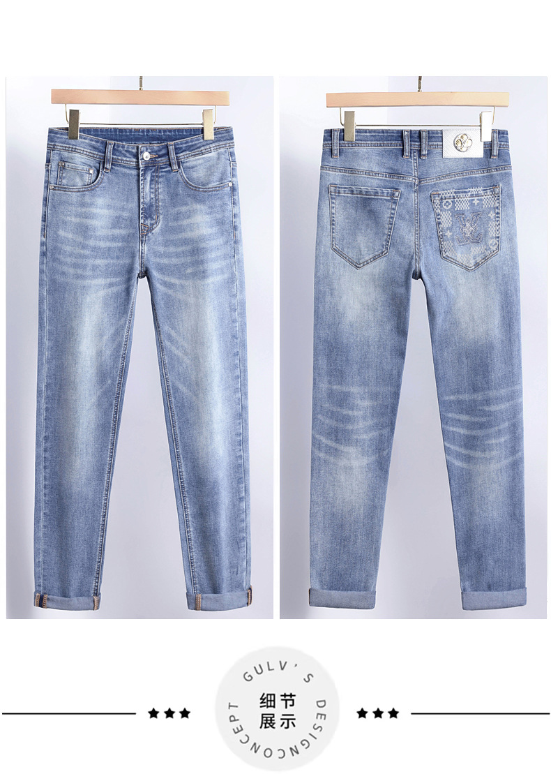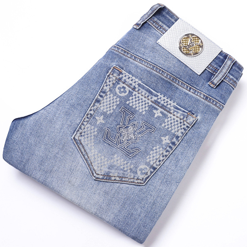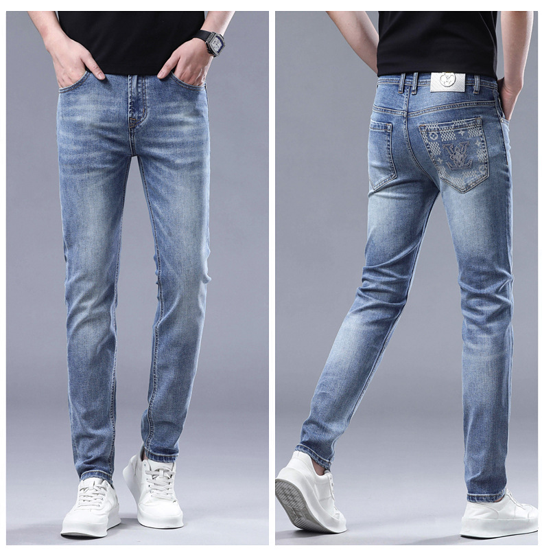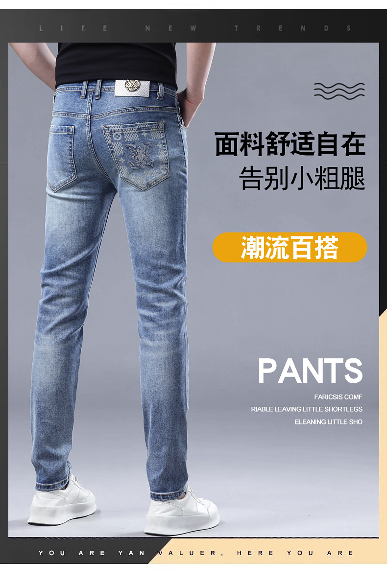 2025 신상 고급 데님 팬츠 남성용 봄 여름 한국 스타일 신축성 있는 레터 프린트 슬림핏 스트레이트 캐주얼 팬츠스토어 가기