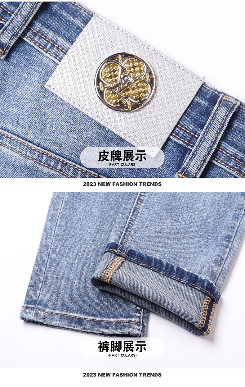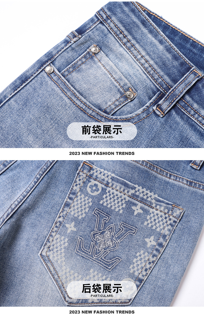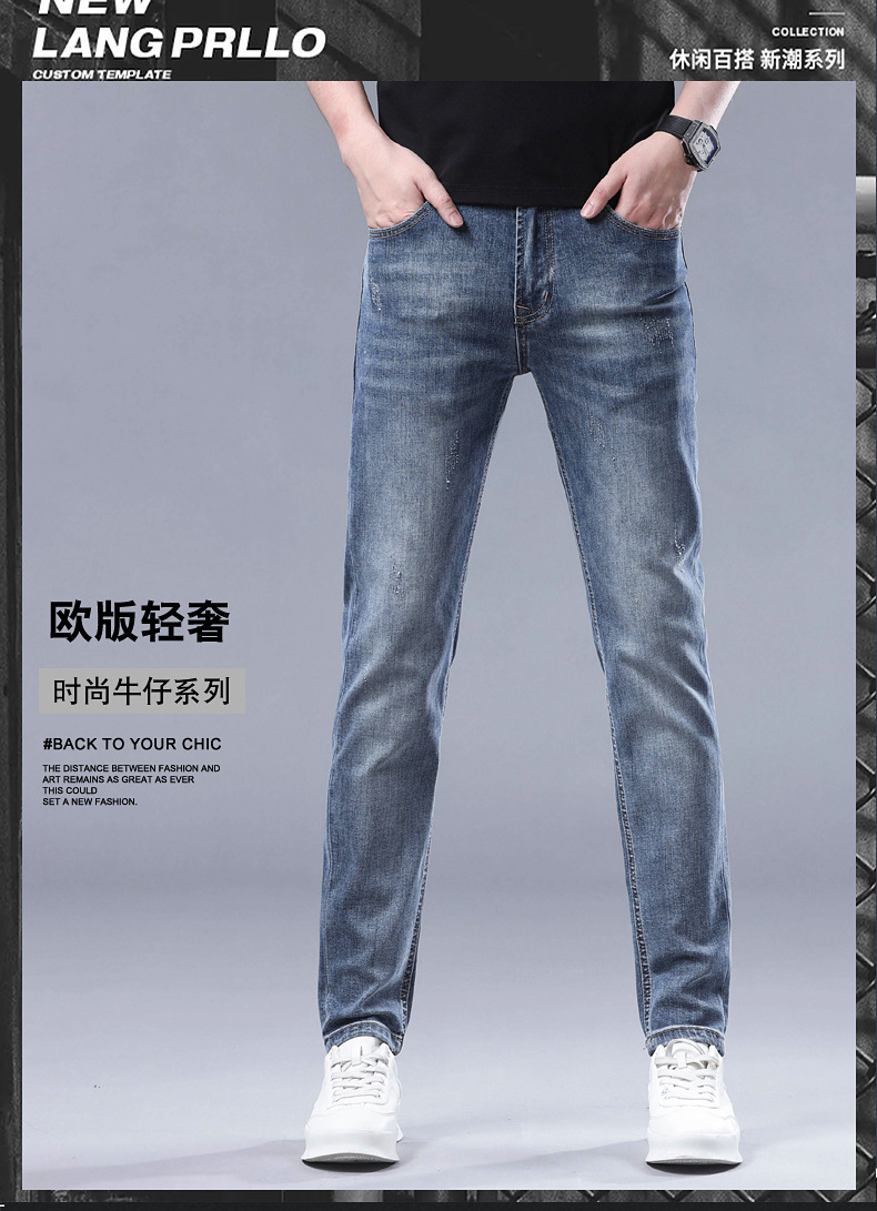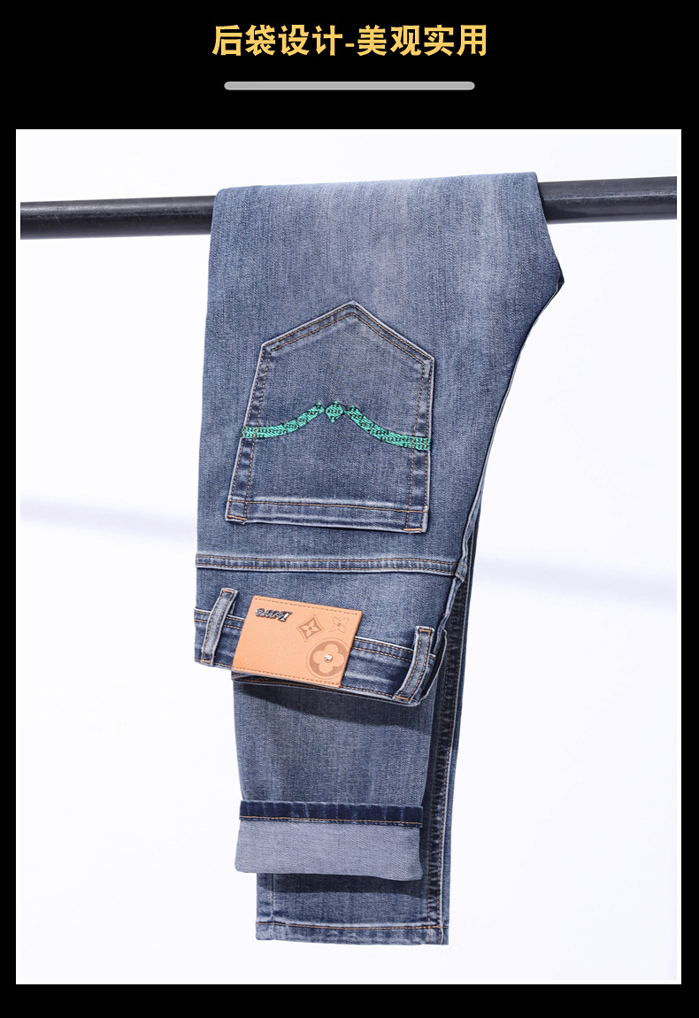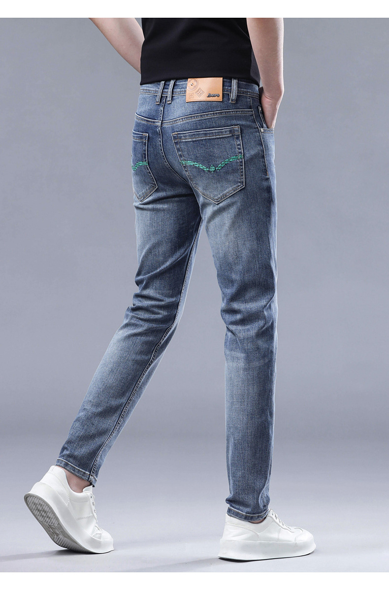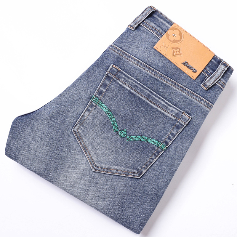 2025 신상 고급 데님 팬츠 남성용 봄 여름 한국 스타일 신축성 있는 레터 프린트 슬림핏 스트레이트 캐주얼 팬츠스토어 가기