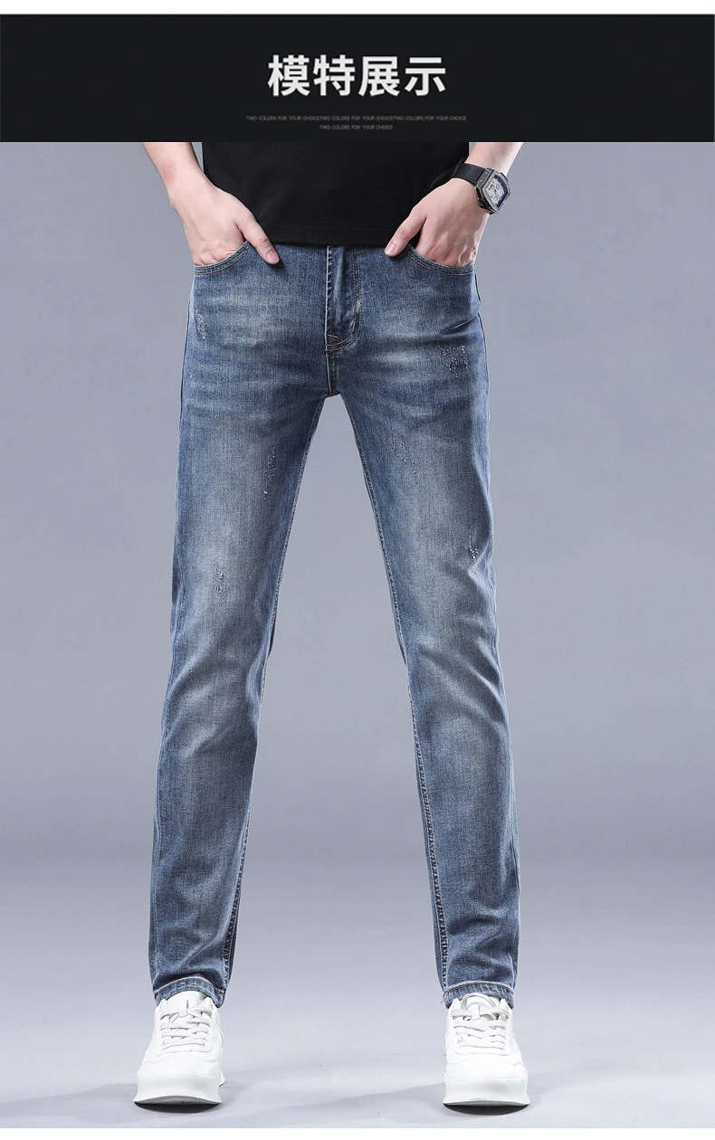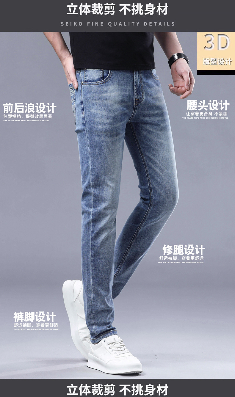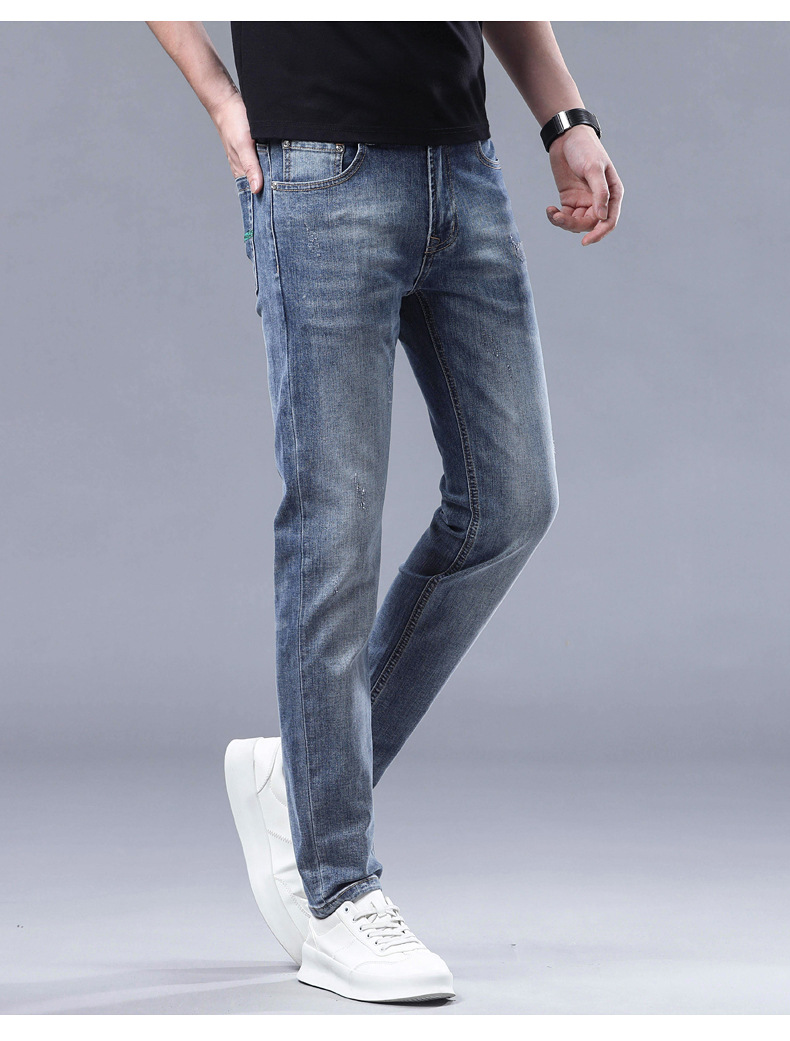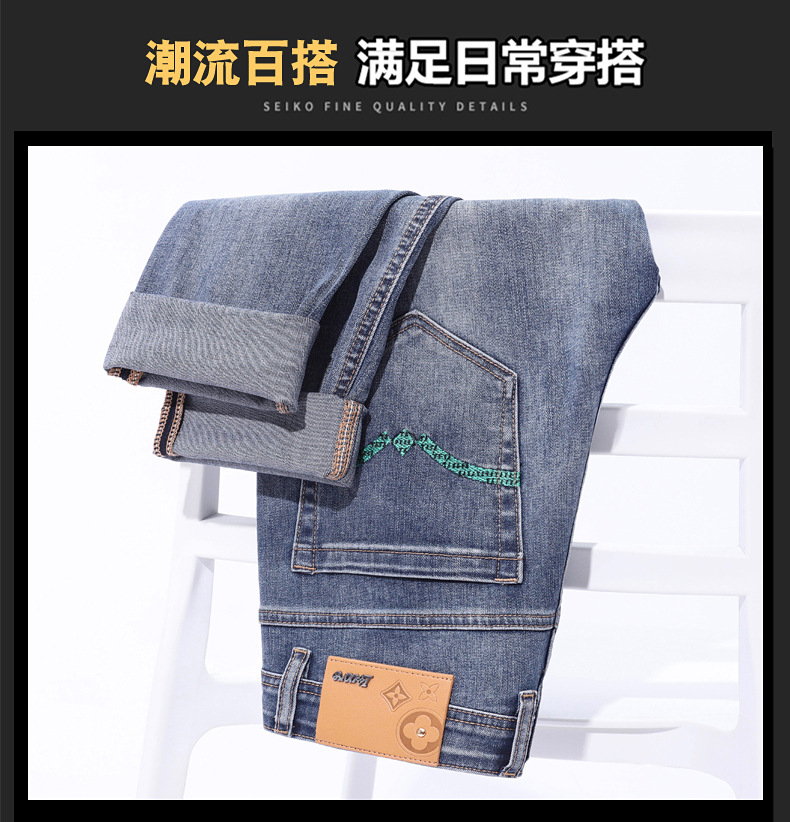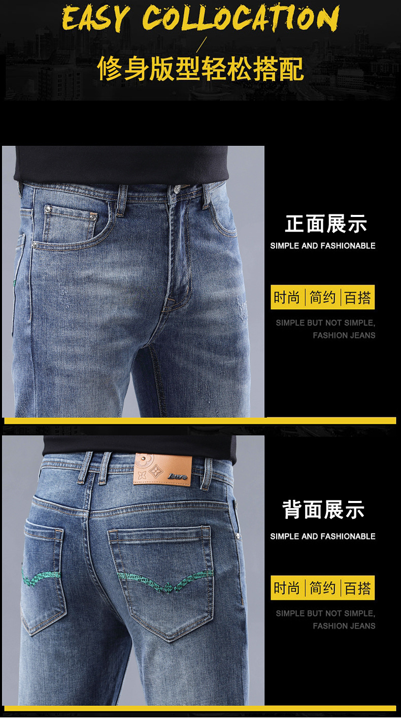 2025 신상 고급 데님 팬츠 남성용 봄 여름 한국 스타일 신축성 있는 레터 프린트 슬림핏 스트레이트 캐주얼 팬츠스토어 가기