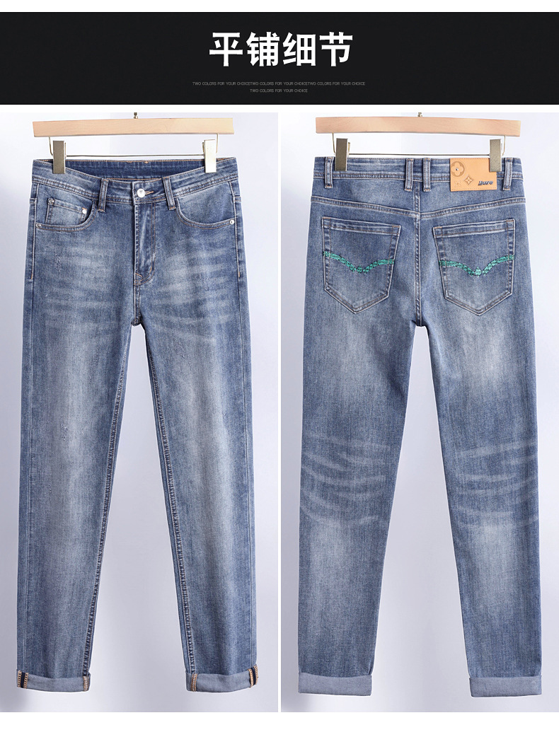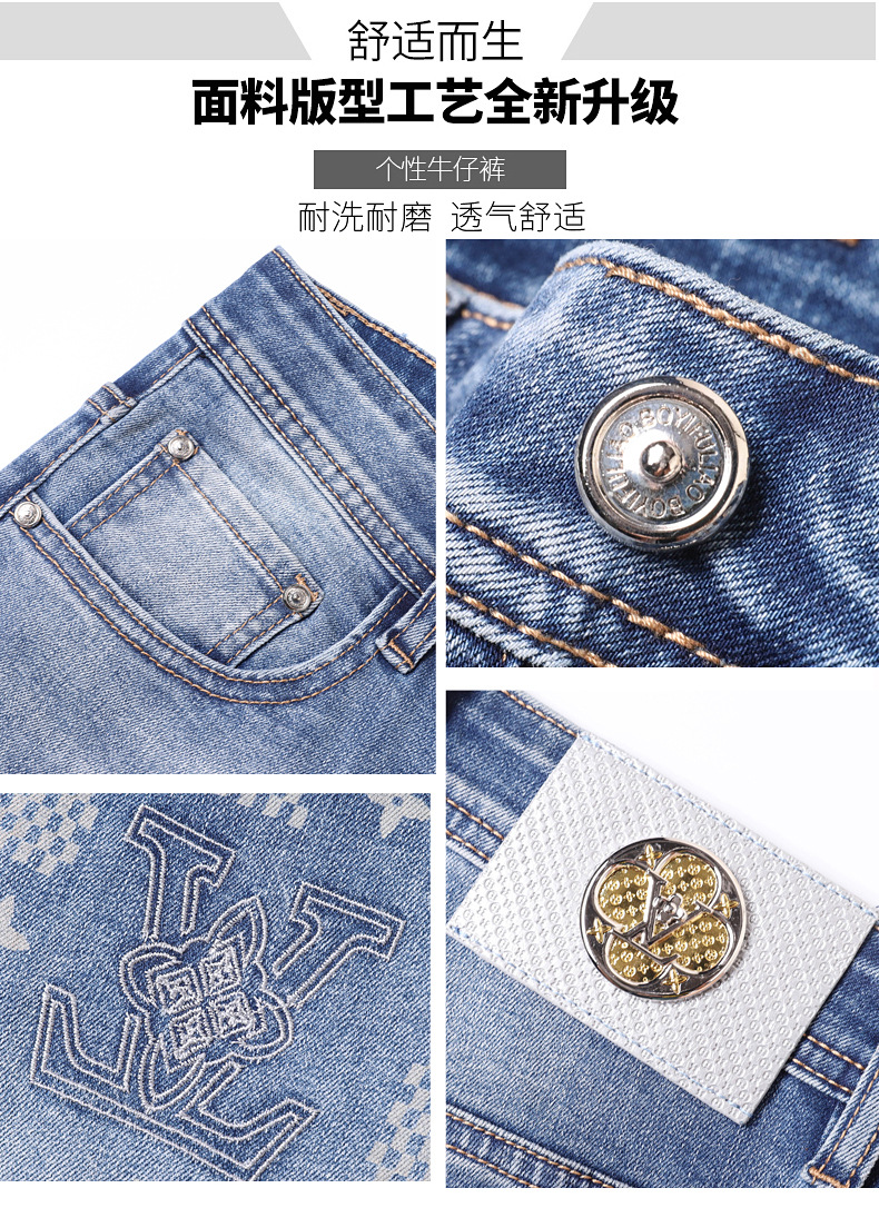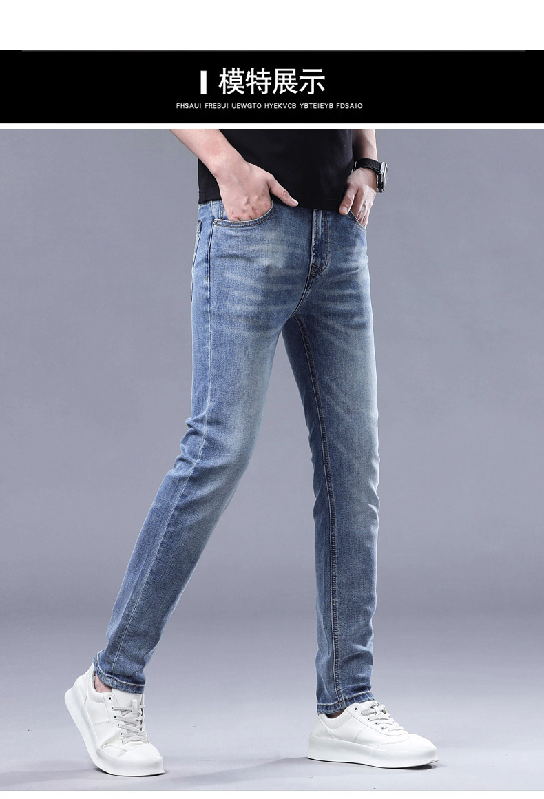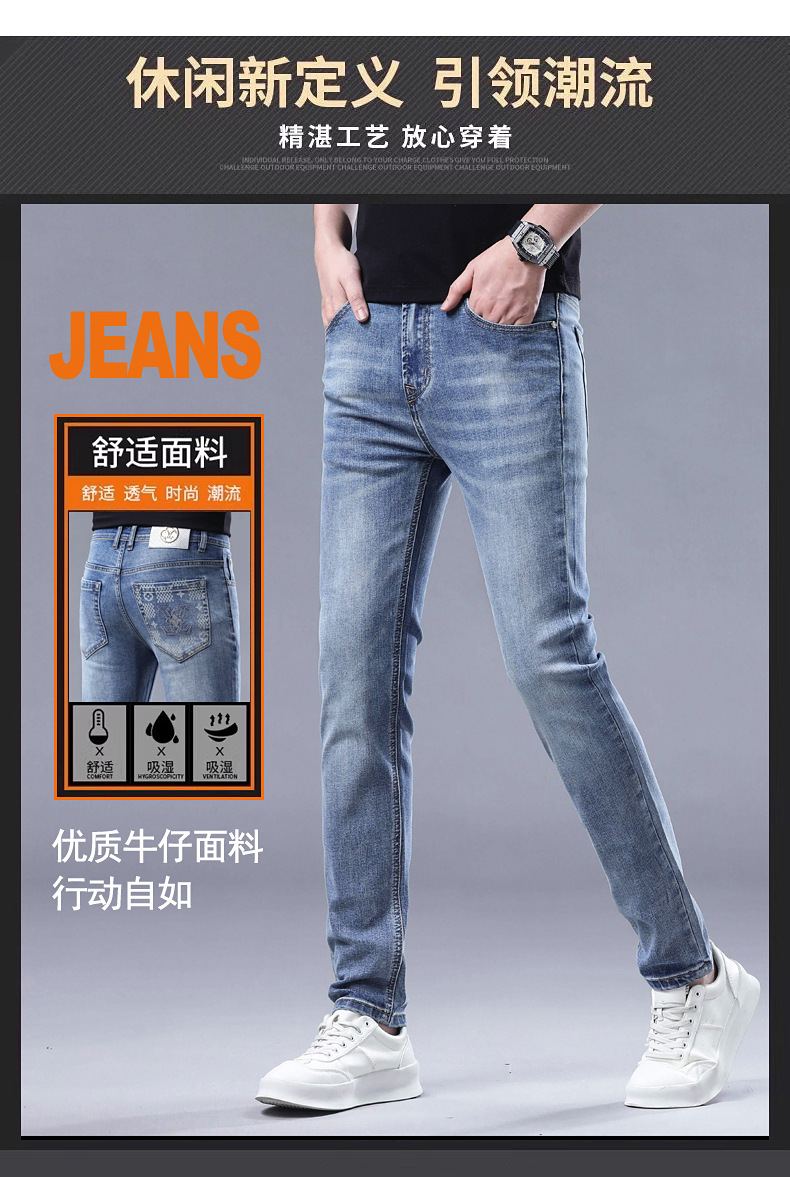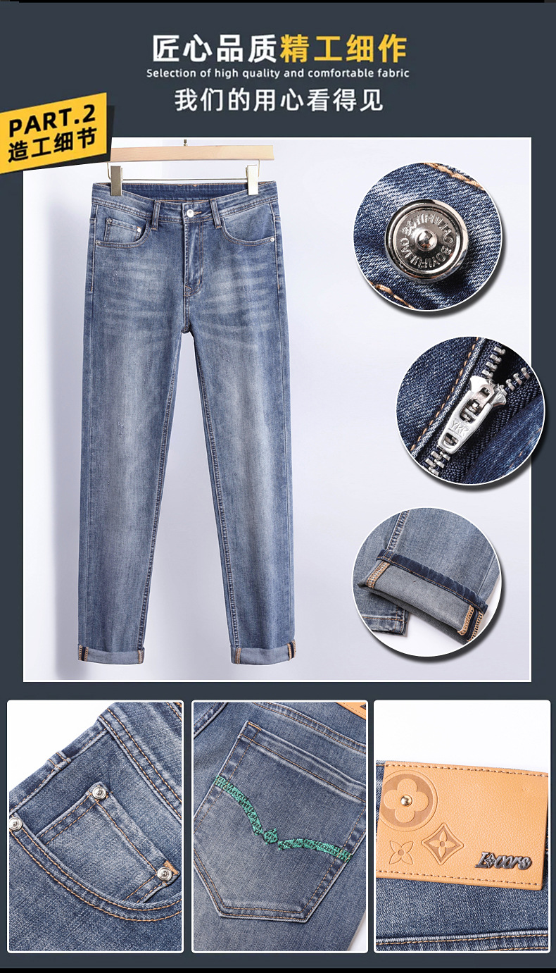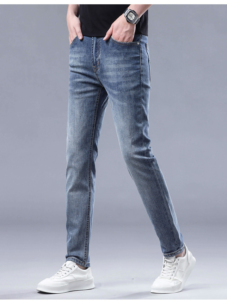2025 신상 고급 데님 팬츠 남성용 봄 여름 한국 스타일 신축성 있는 레터 프린트 슬림핏 스트레이트 캐주얼 팬츠스토어 가기