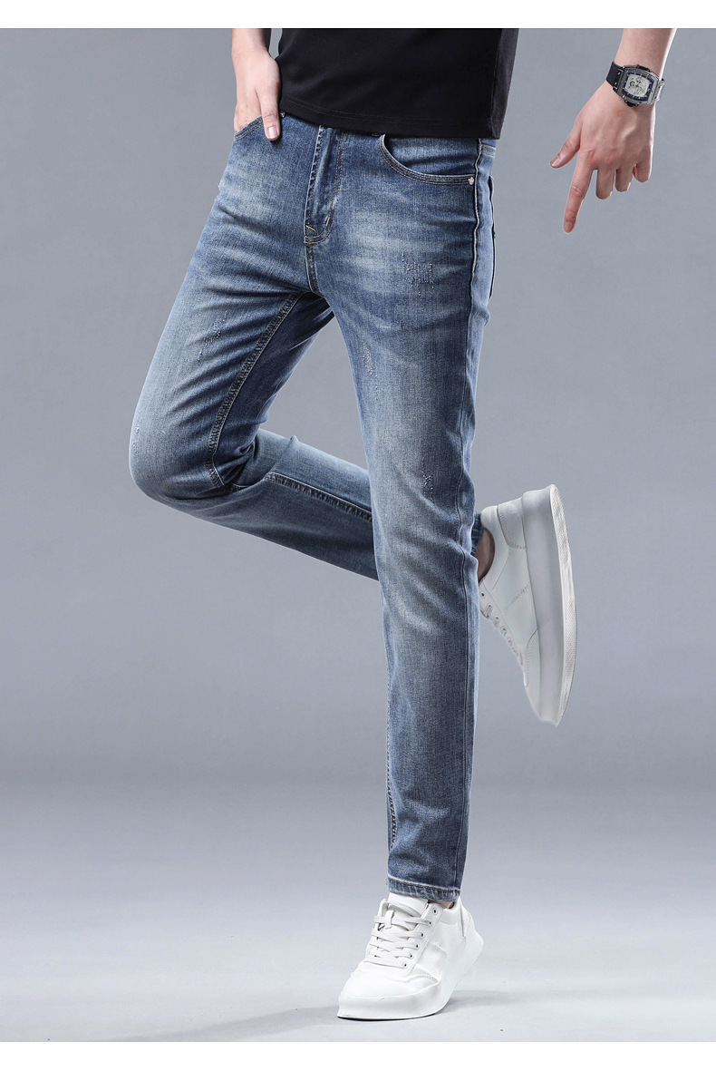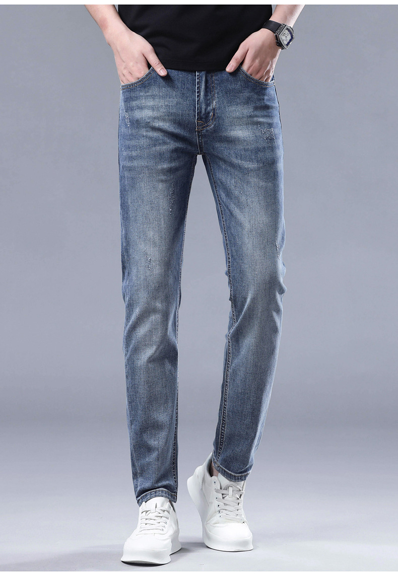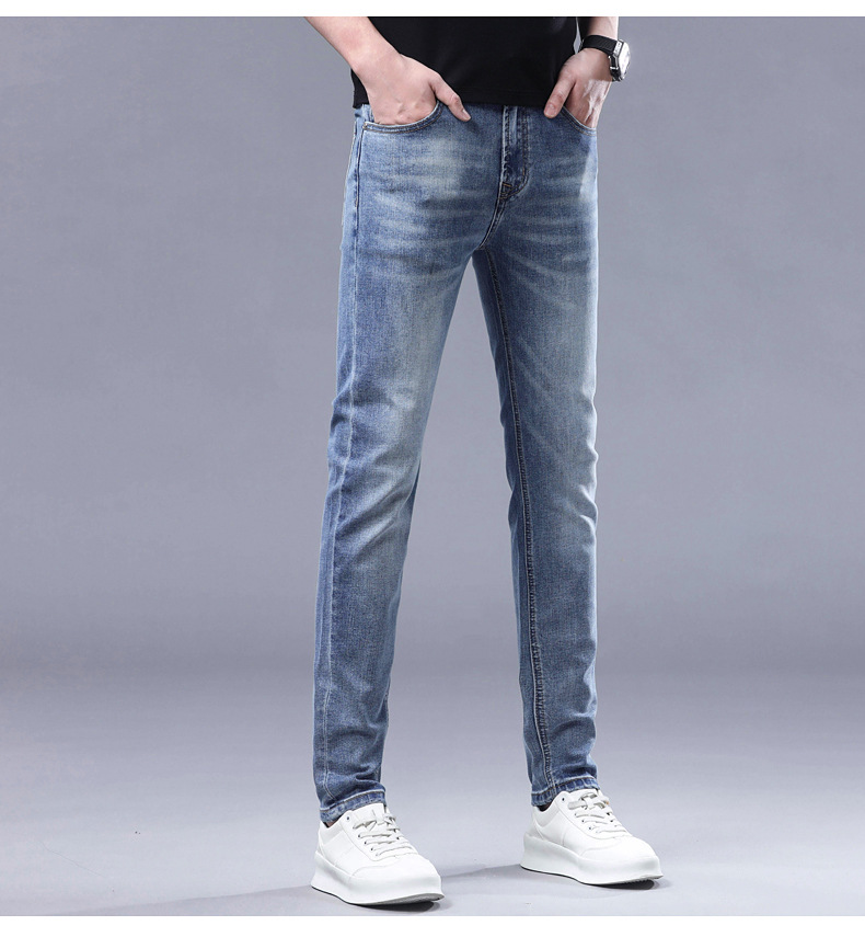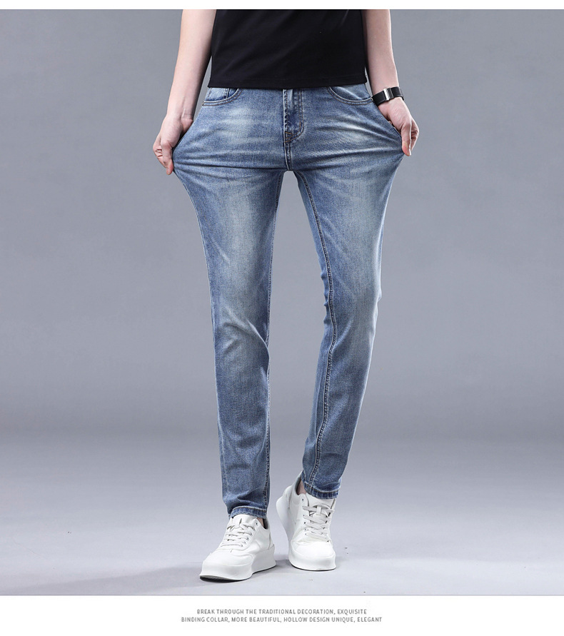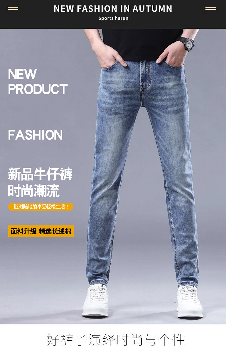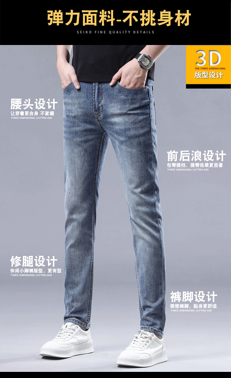 2025 신상 고급 데님 팬츠 남성용 봄 여름 한국 스타일 신축성 있는 레터 프린트 슬림핏 스트레이트 캐주얼 팬츠스토어 가기