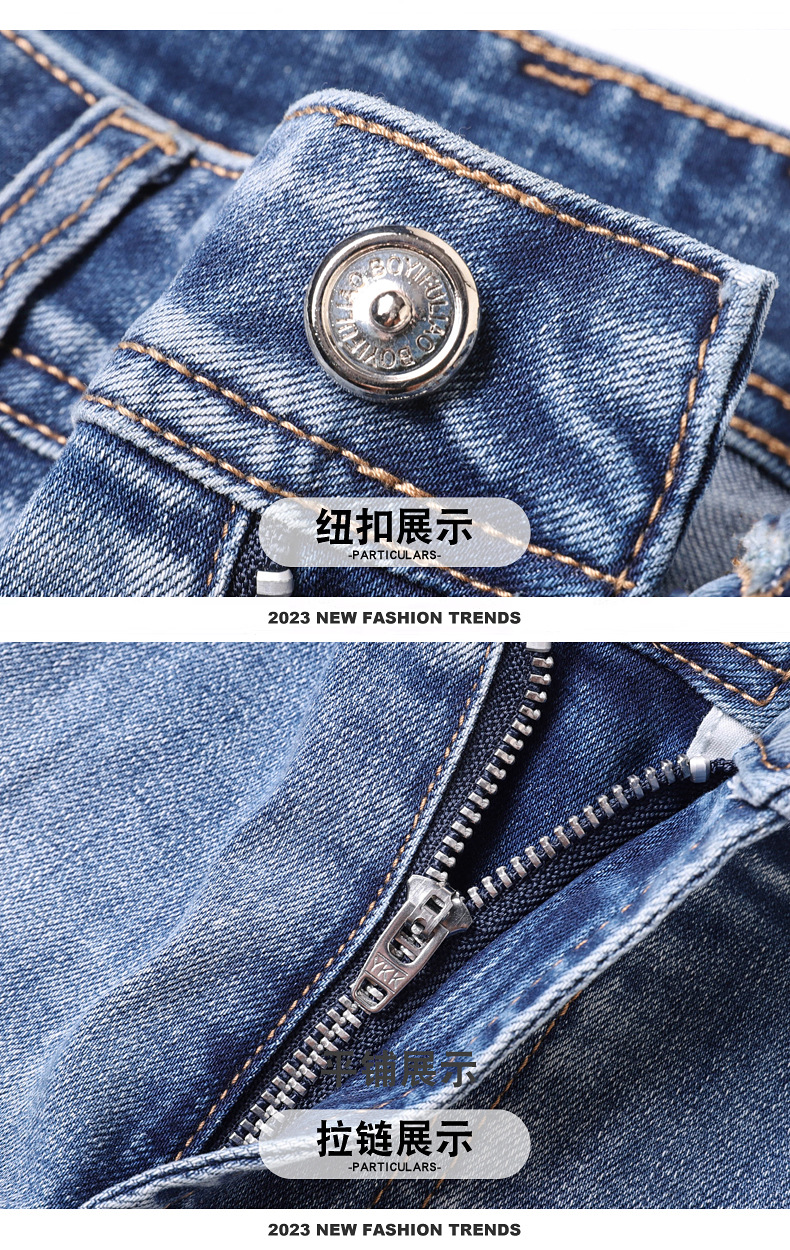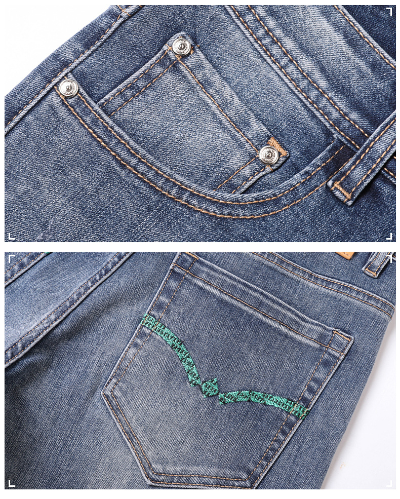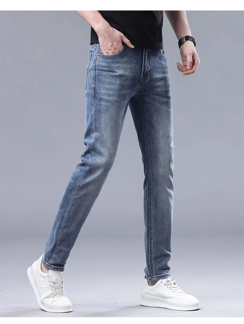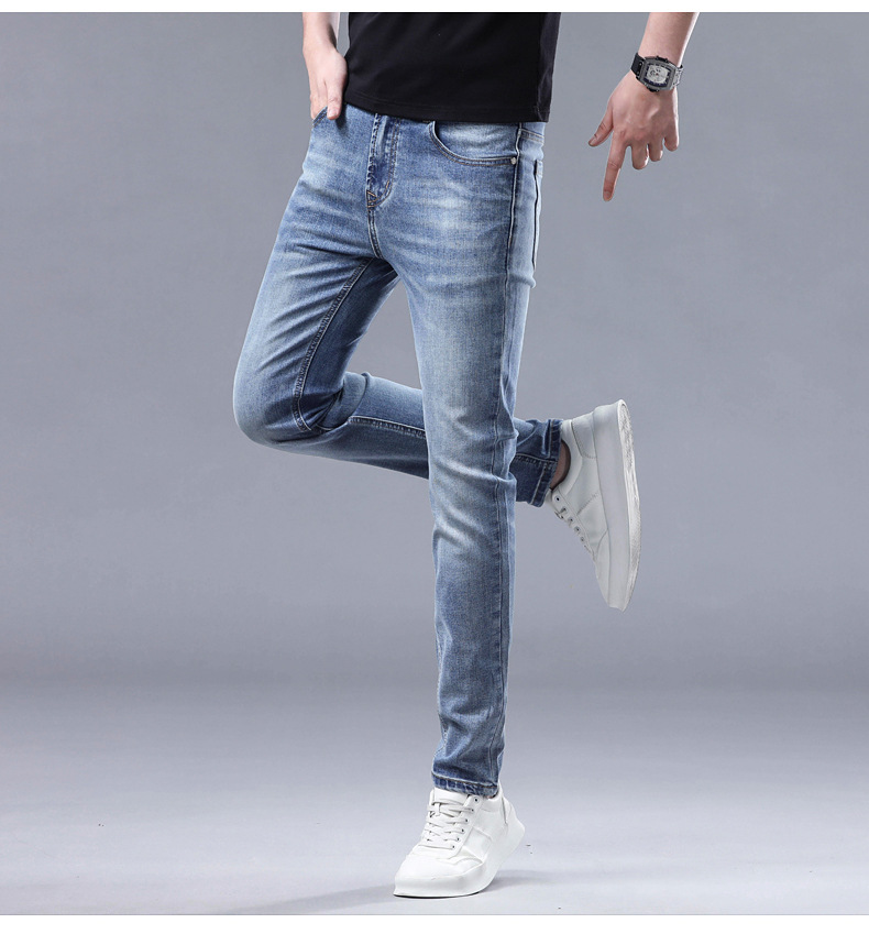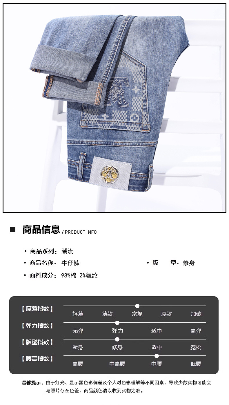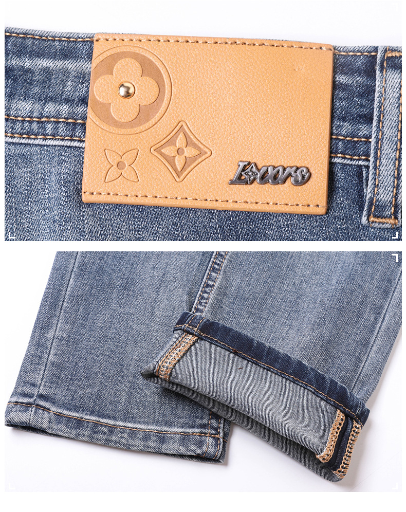 2025 신상 고급 데님 팬츠 남성용 봄 여름 한국 스타일 신축성 있는 레터 프린트 슬림핏 스트레이트 캐주얼 팬츠스토어 가기