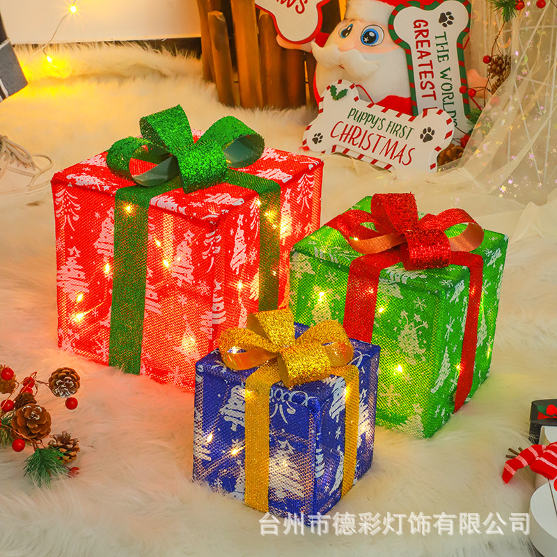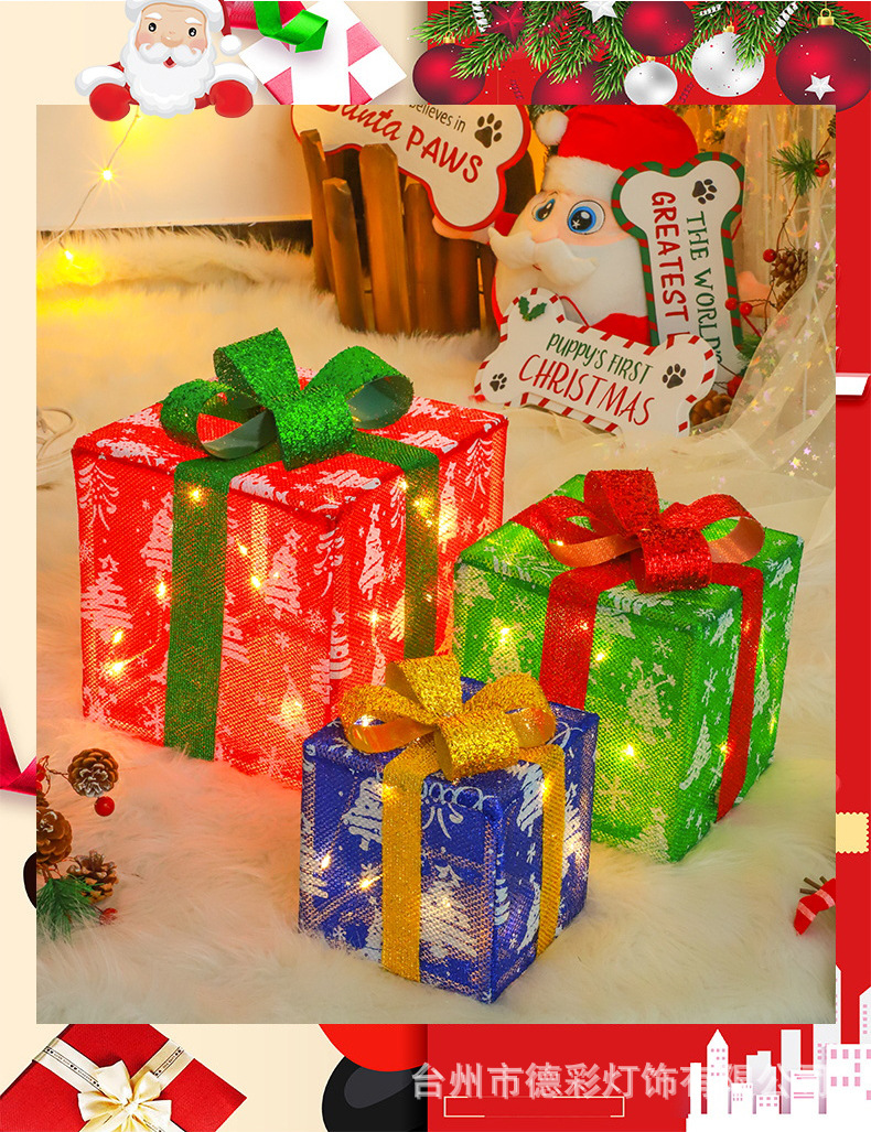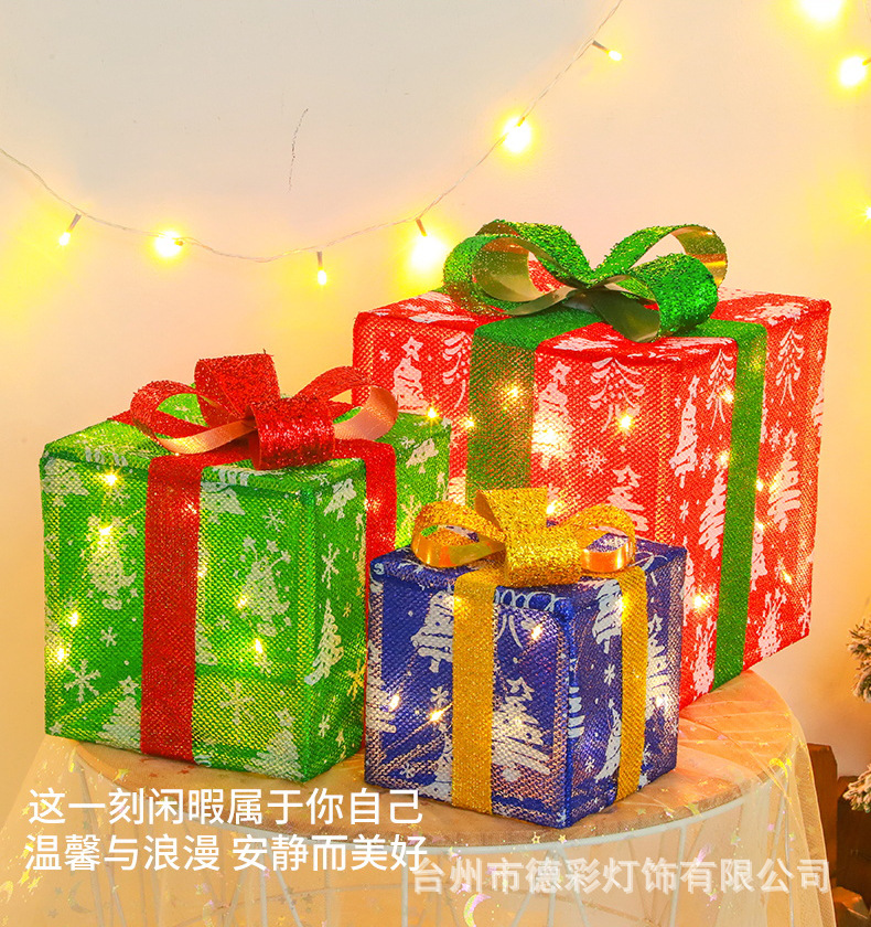 새로운 크리스마스 선물 상자 3 조각 접는 크리스마스 선물 상자 크리스마스 랜턴 축제 빛 문자열 글로우 크리스마스 선물 상자