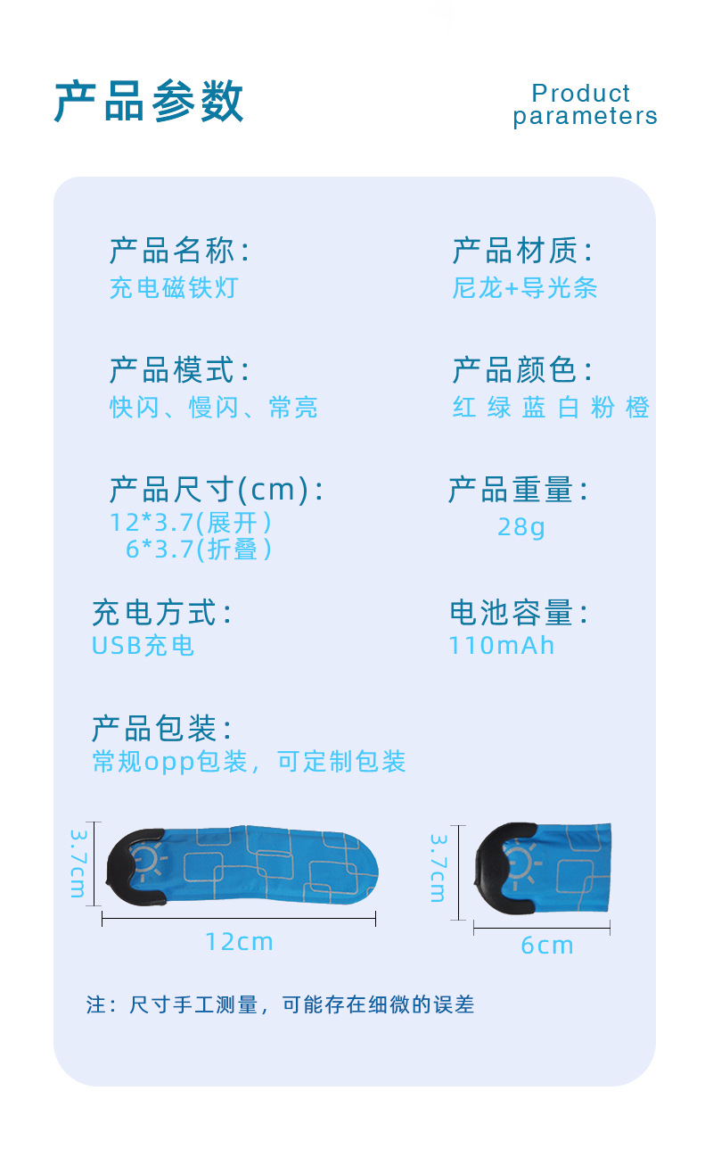 USB 충전식 발광 Lauer 램프 LED 자기 흡수 경고 안전 램프 야외 달리기 여행 플래시 Schoolbag 자기 흡수 램프스토어 가기