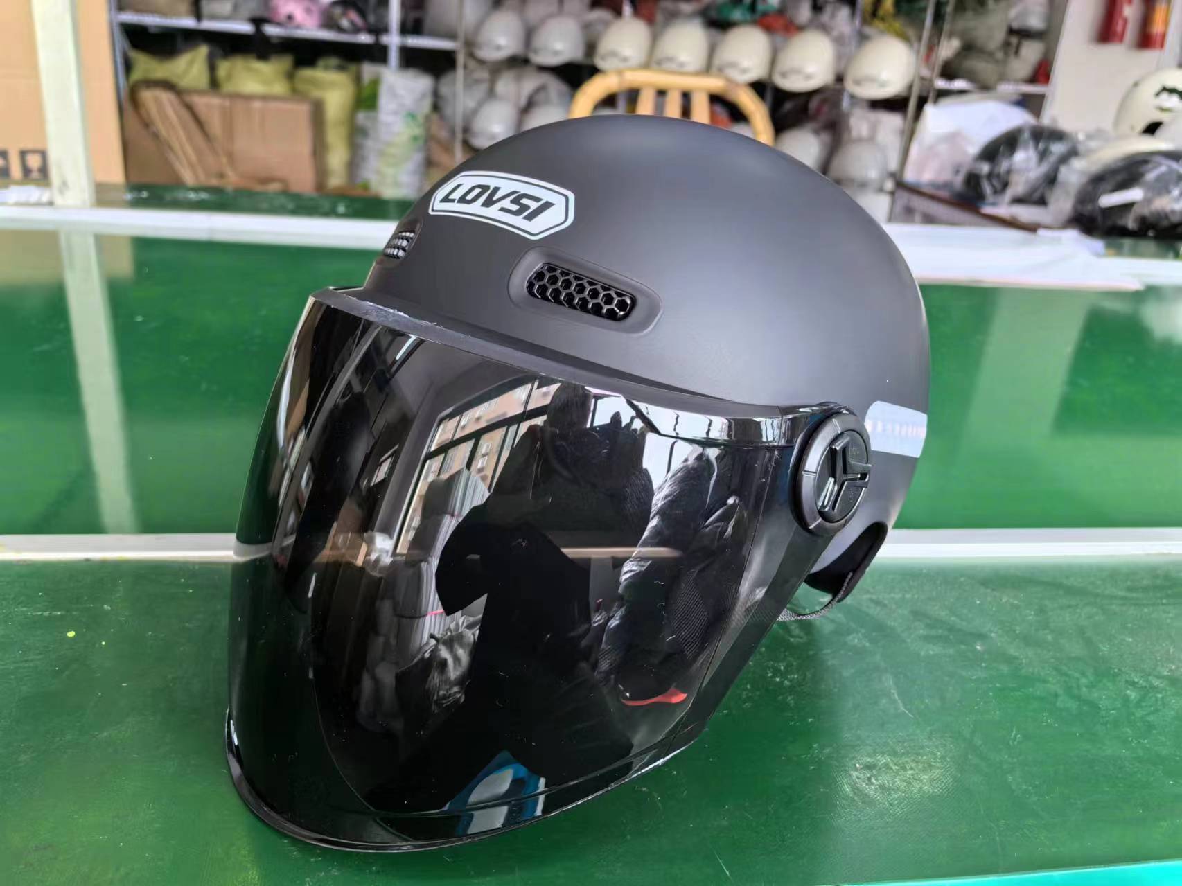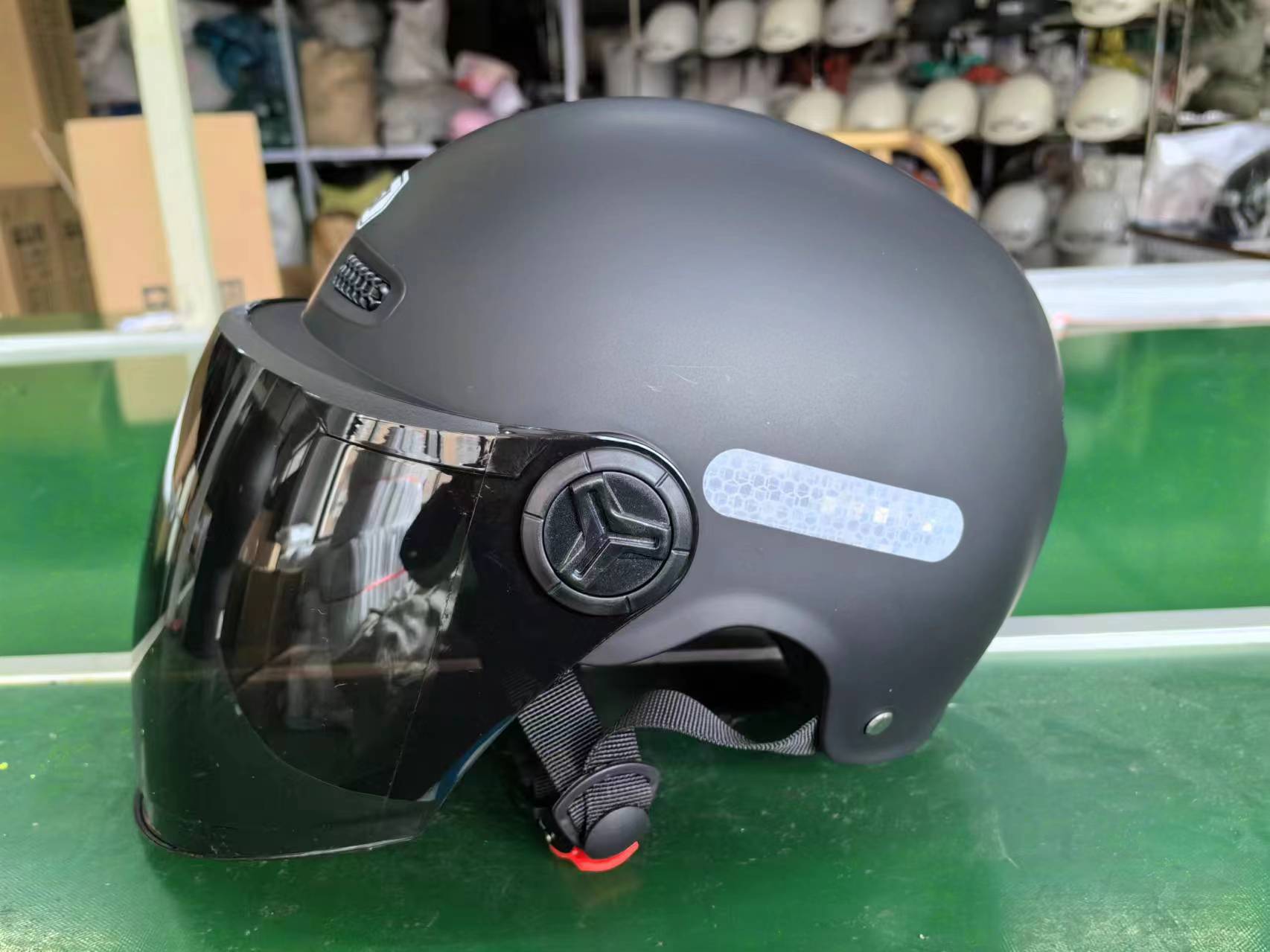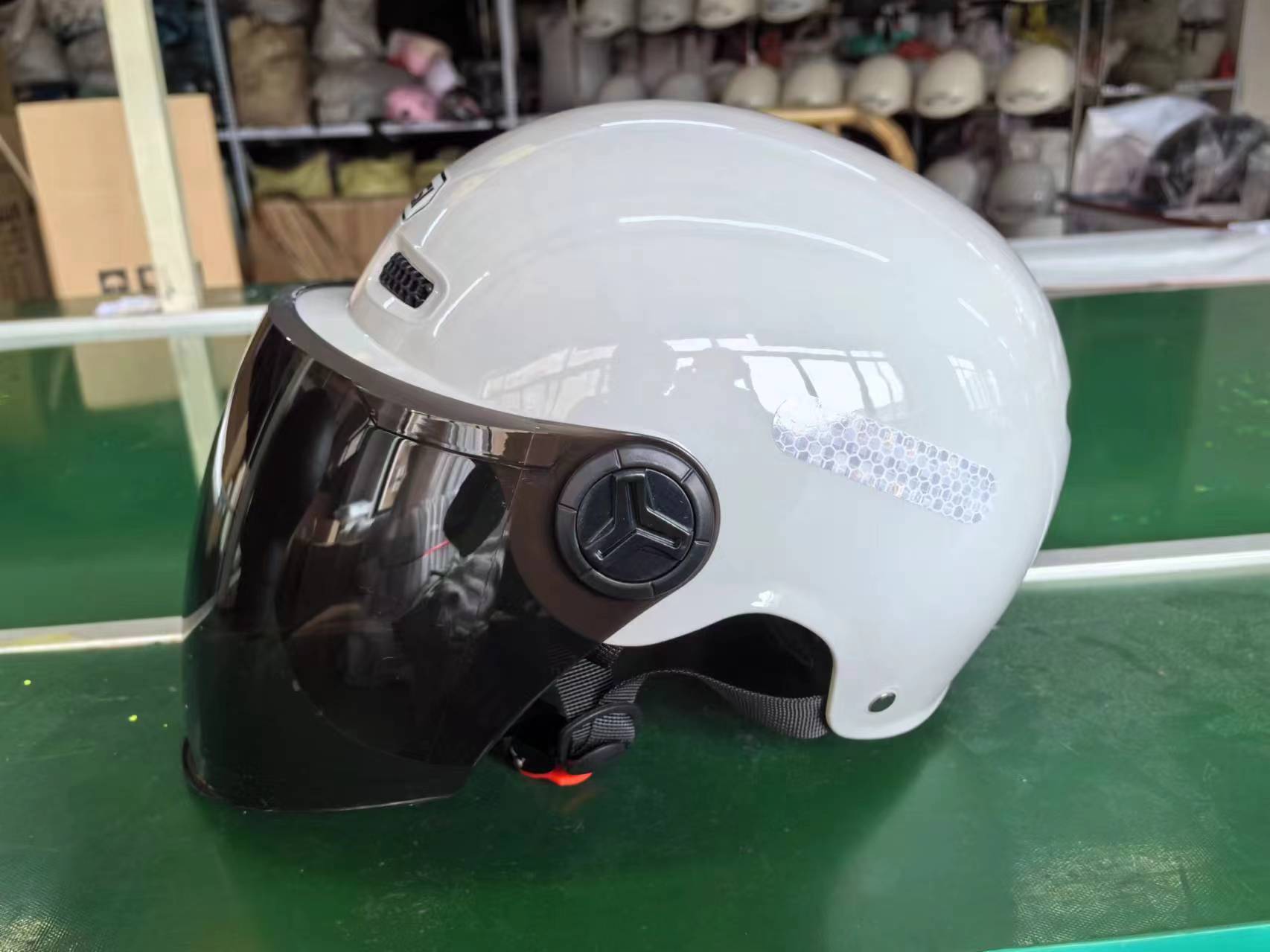 남성과 여성을 위한 새로운 국가 표준 3C 인증 헬멧, 자외선 차단 반 헬멧, 배터리 자동차, 전기 자동차, 오토바이, 라이딩을 위한 범용 안전 헬멧스토어 가기