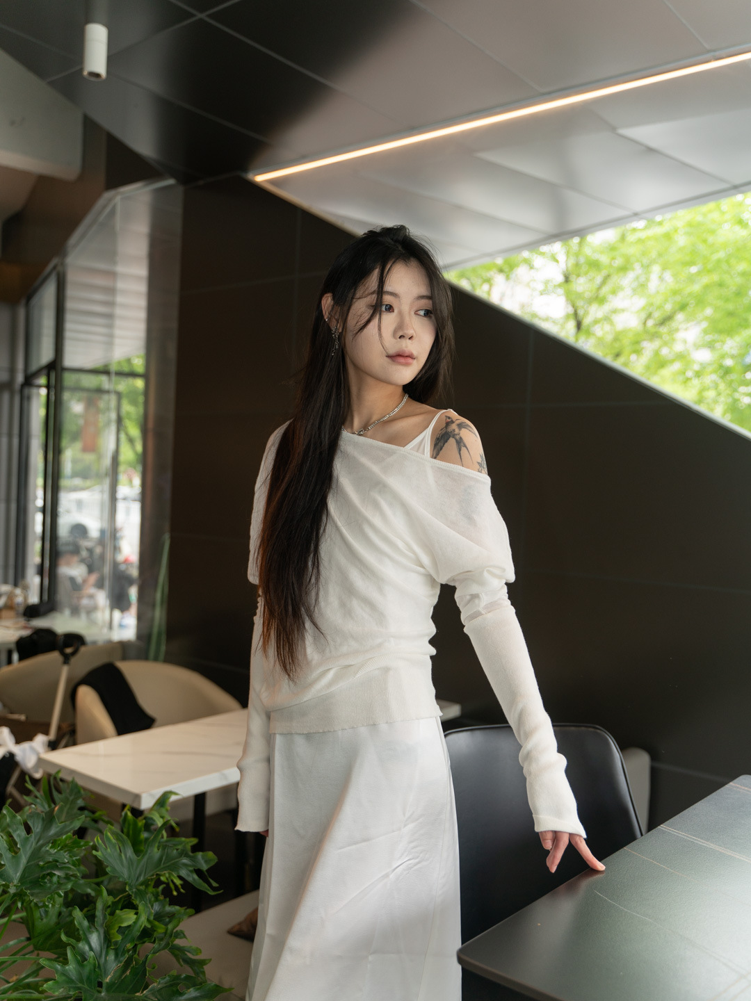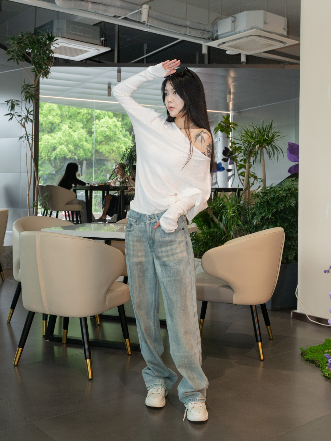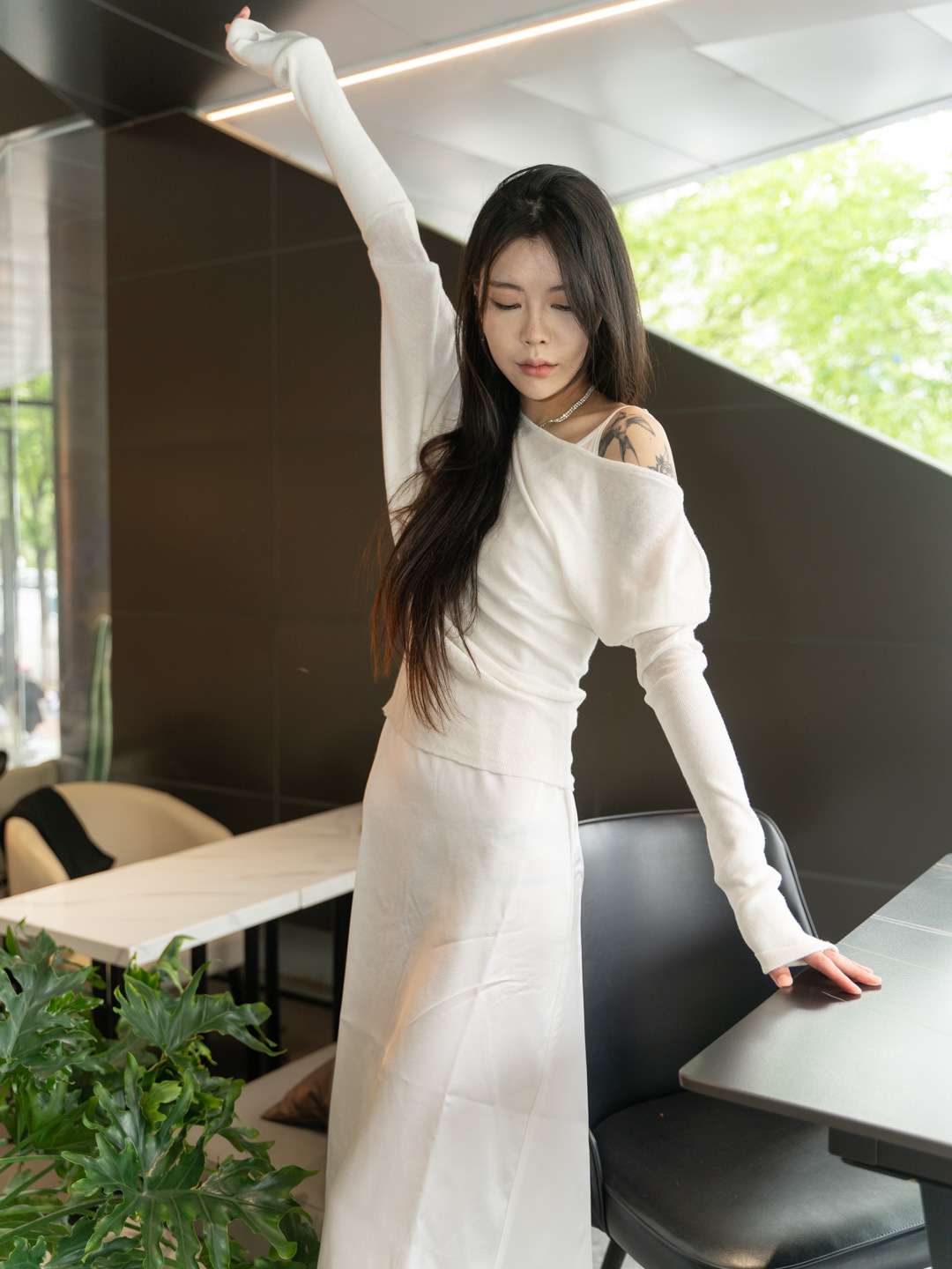 순수 경사 어깨 오픈 어깨 느슨한 슬리밍 불규칙한 니트 긴팔 에어컨 셔츠 선스크린 여성용 3133 탑스토어 가기
