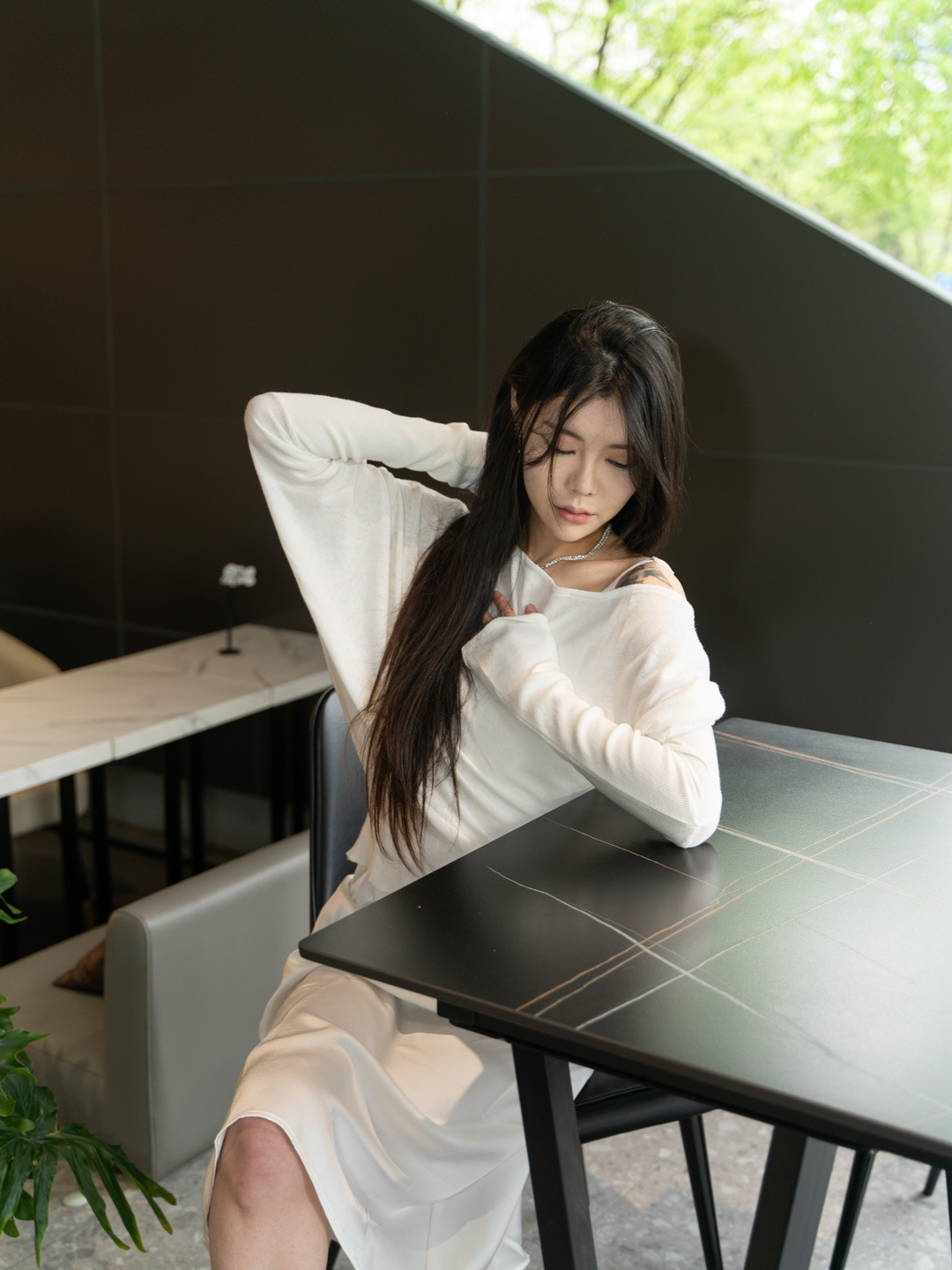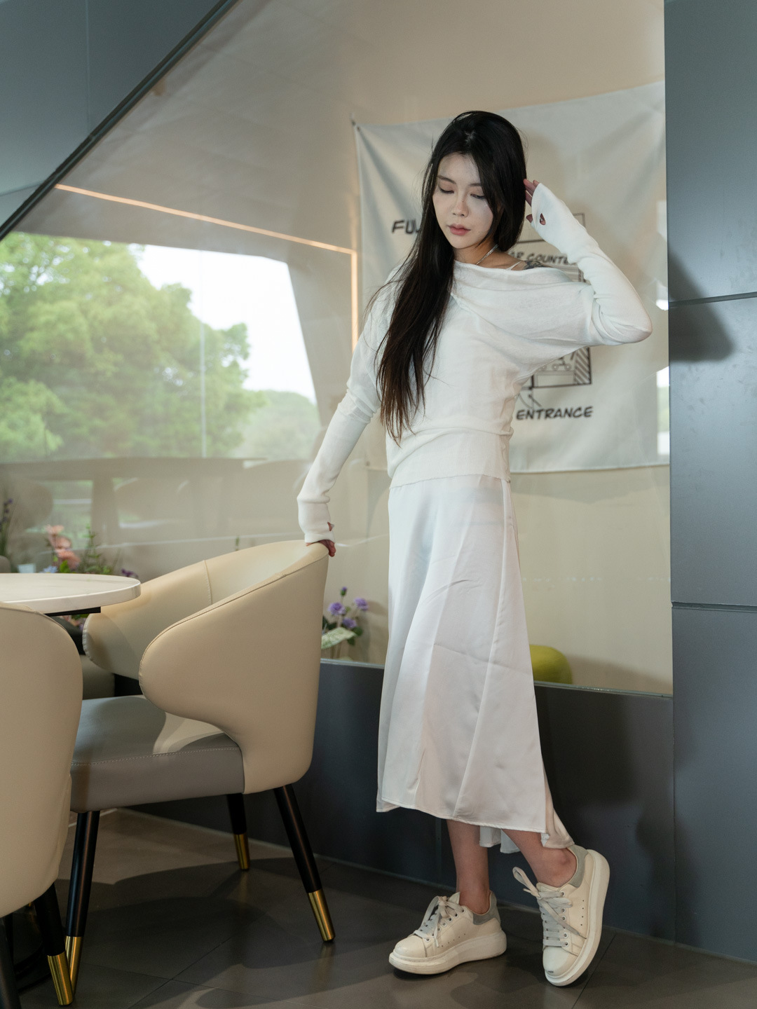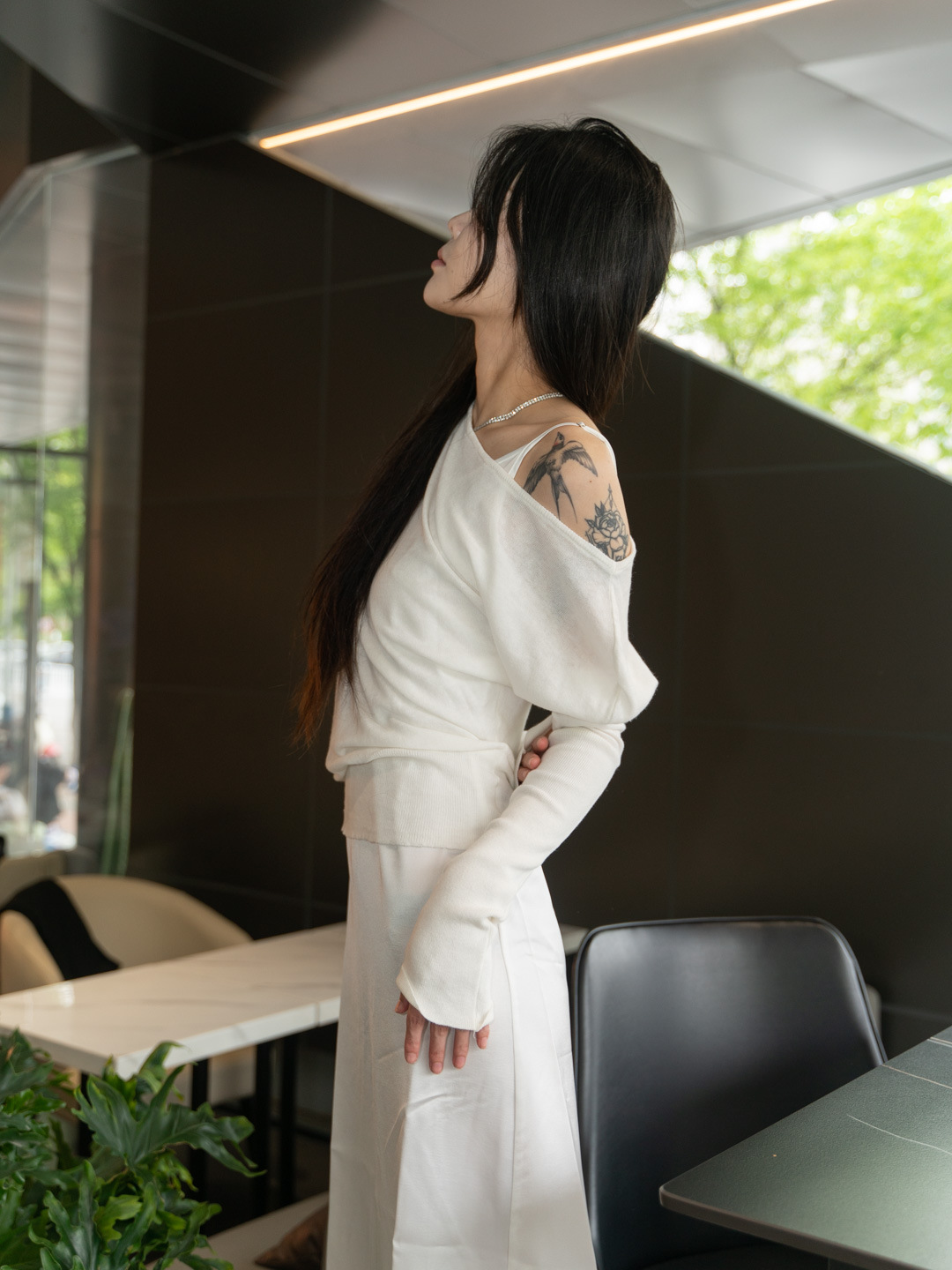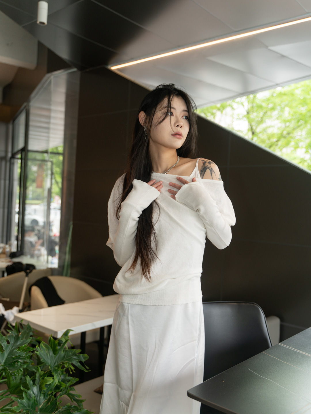순수 경사 어깨 오픈 어깨 느슨한 슬리밍 불규칙한 니트 긴팔 에어컨 셔츠 선스크린 여성용 3133 탑스토어 가기