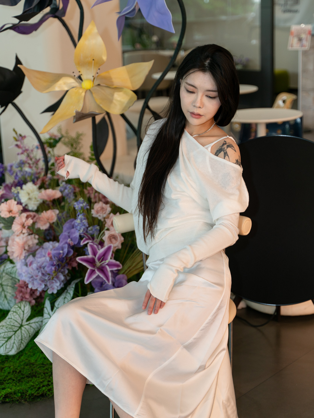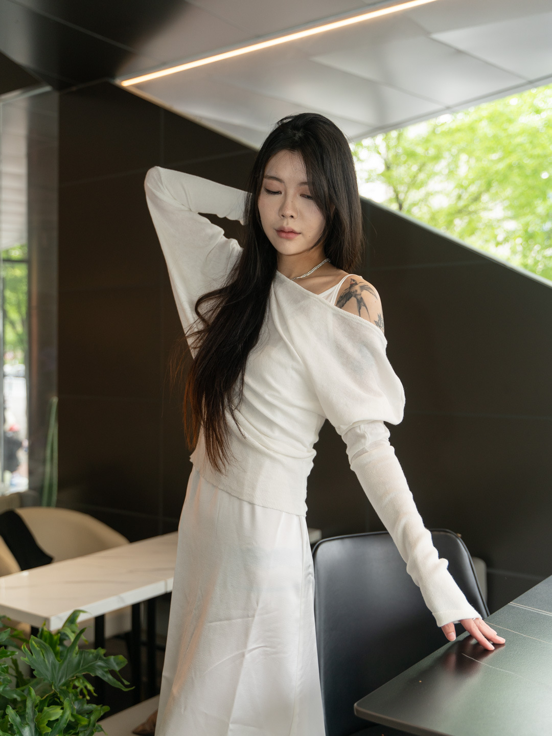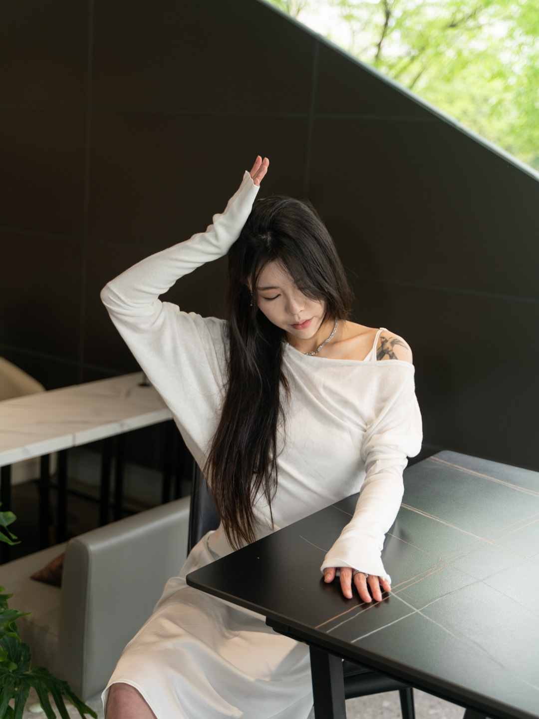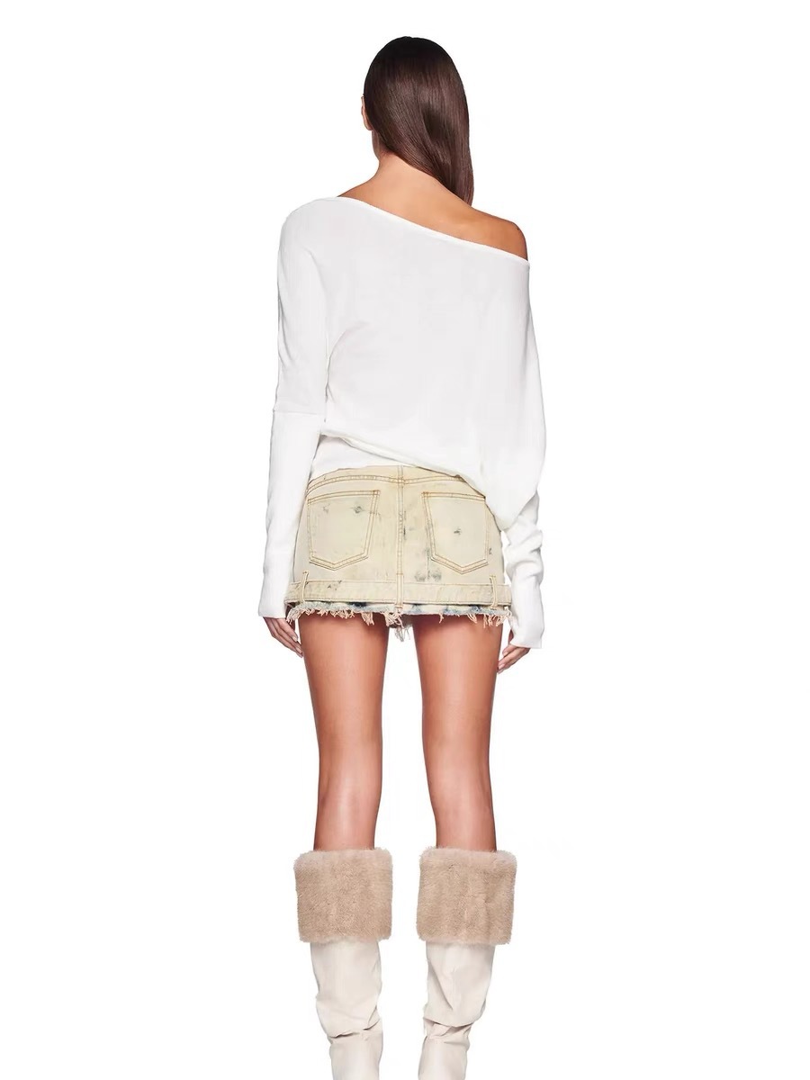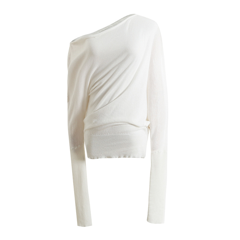 순수 경사 어깨 오픈 어깨 느슨한 슬리밍 불규칙한 니트 긴팔 에어컨 셔츠 선스크린 여성용 3133 탑