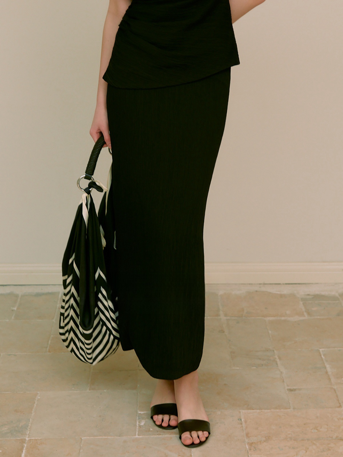 여름 신상 세트는 날씬해 보이고 패셔너블하며, 미야케 플리츠 반바지 스커트와 탑은 꼭 있어야 할 필수템입니다.