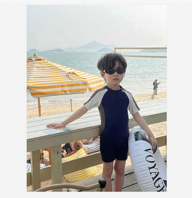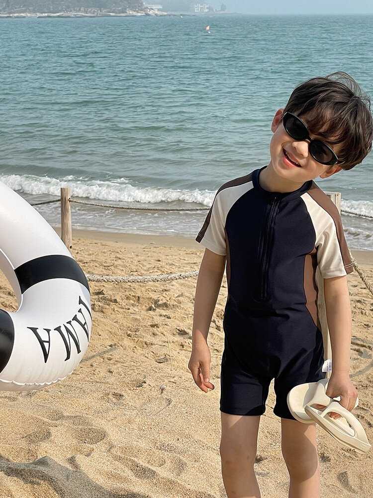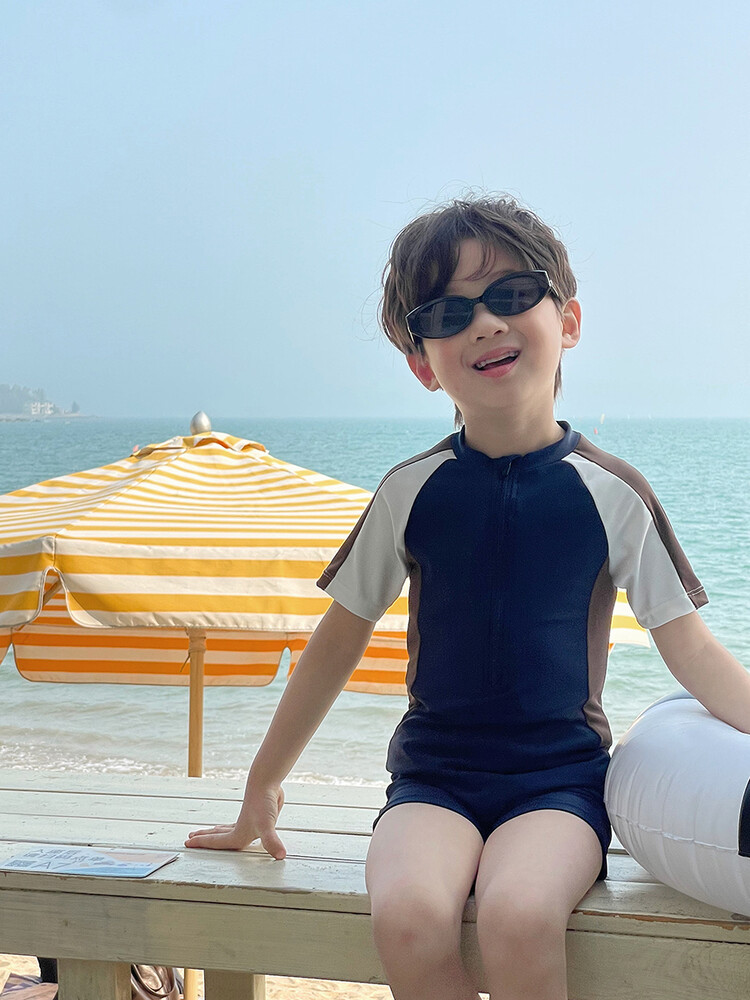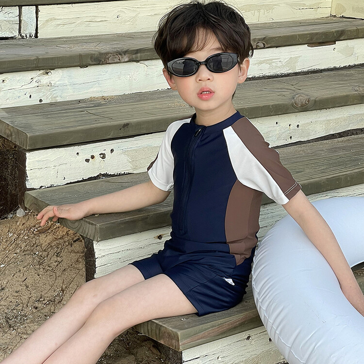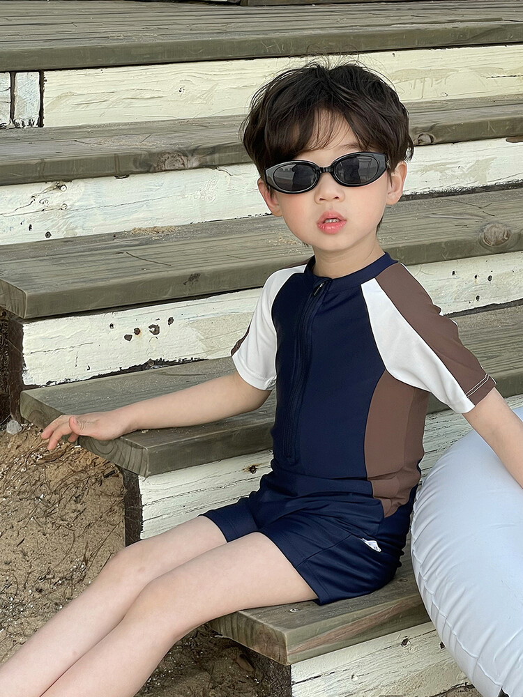 여름 새로운 어린이 원피스 수영복 반팔 반바지 빠른 건조 수영복 컬러 매칭 간단한 레저 온천 휴가 수영복스토어 가기