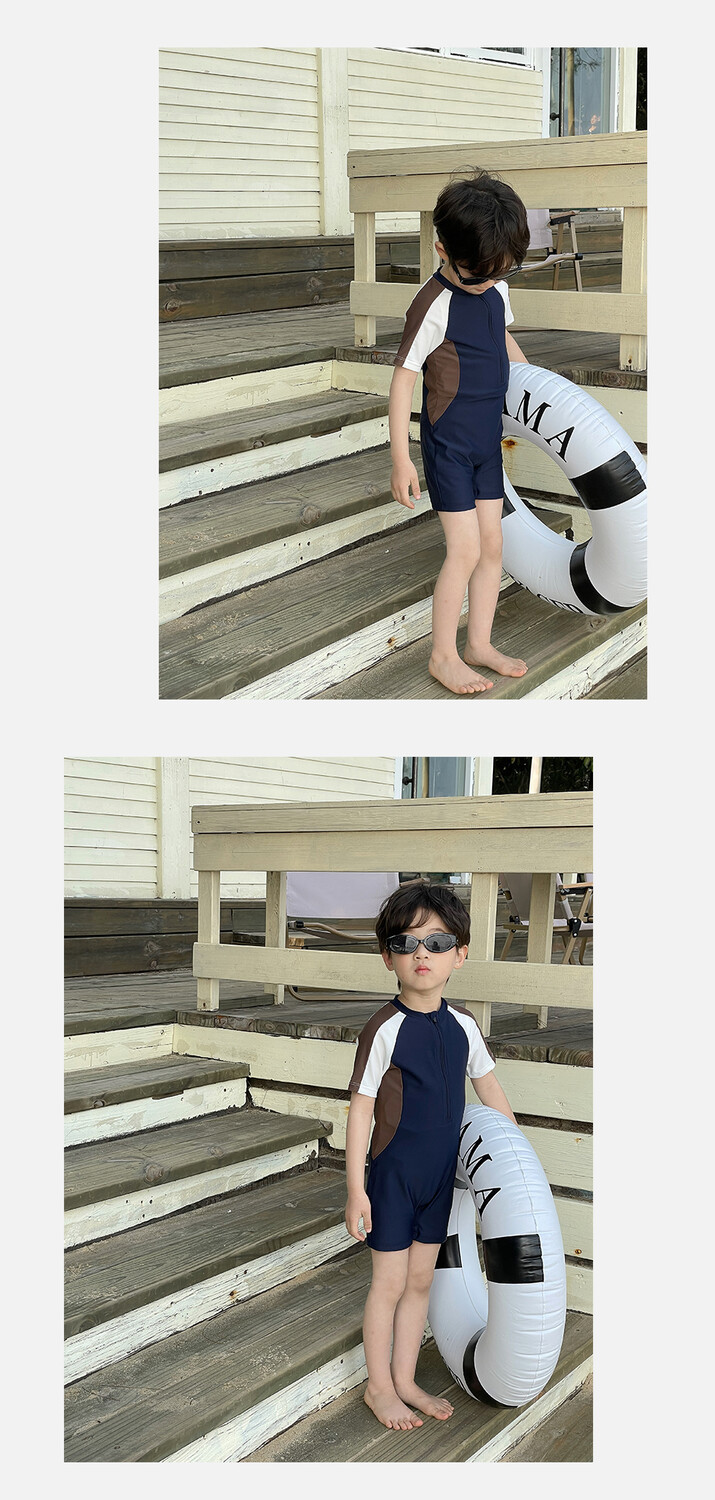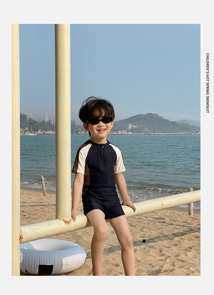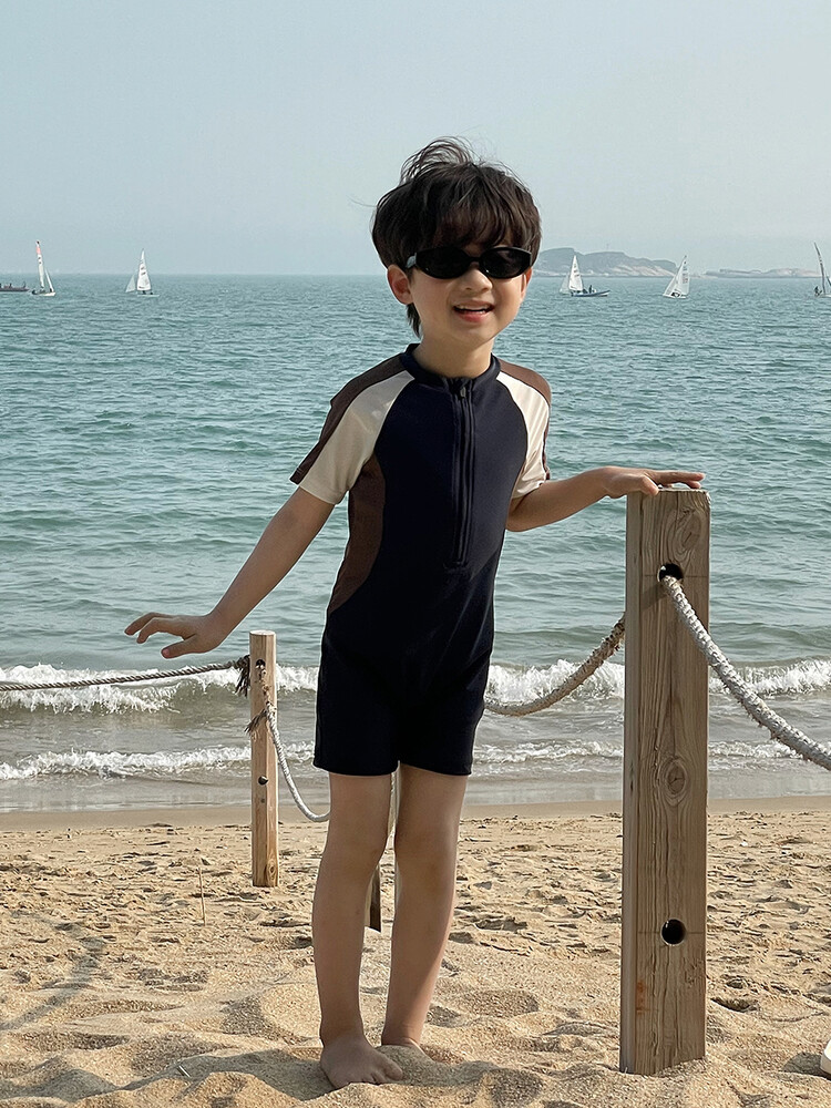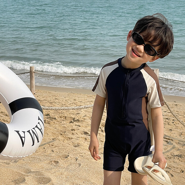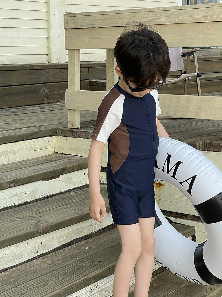 여름 새로운 어린이 원피스 수영복 반팔 반바지 빠른 건조 수영복 컬러 매칭 간단한 레저 온천 휴가 수영복스토어 가기
