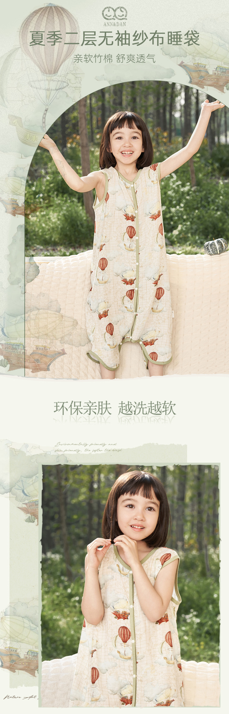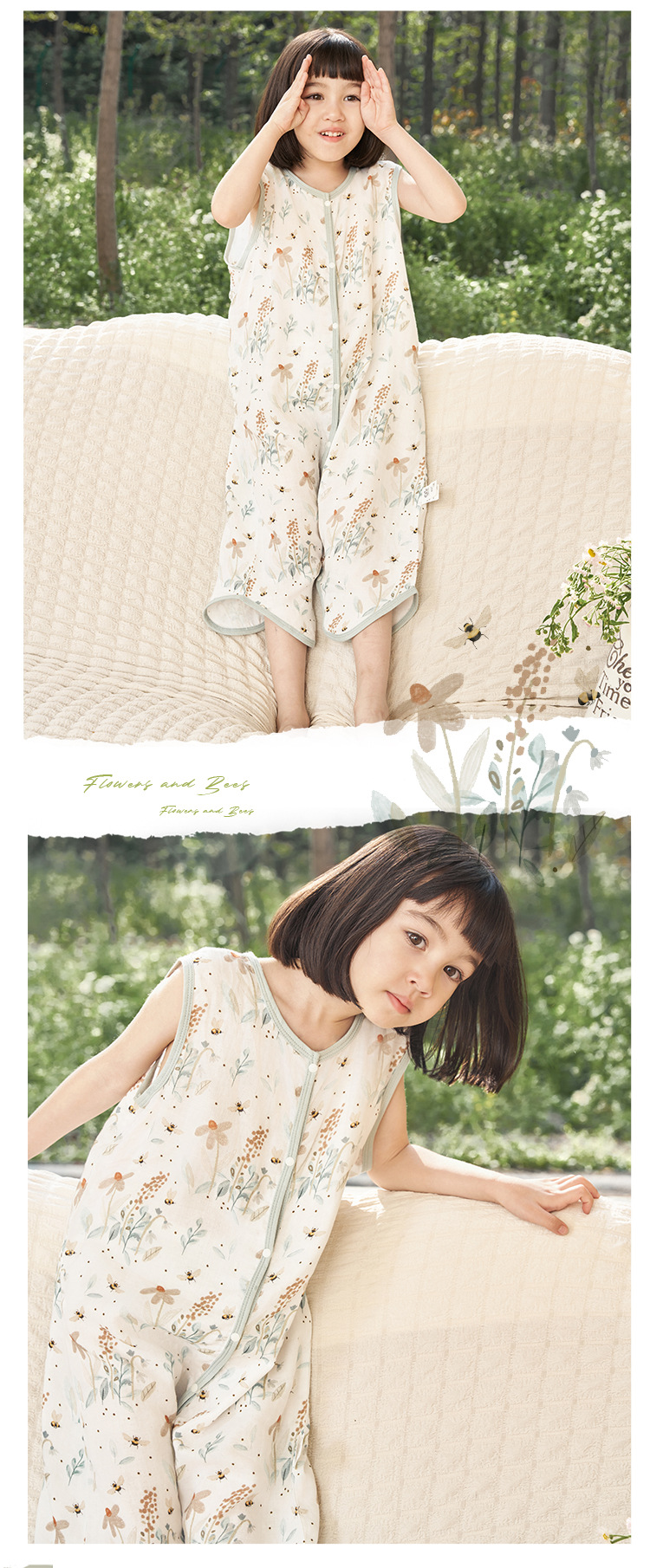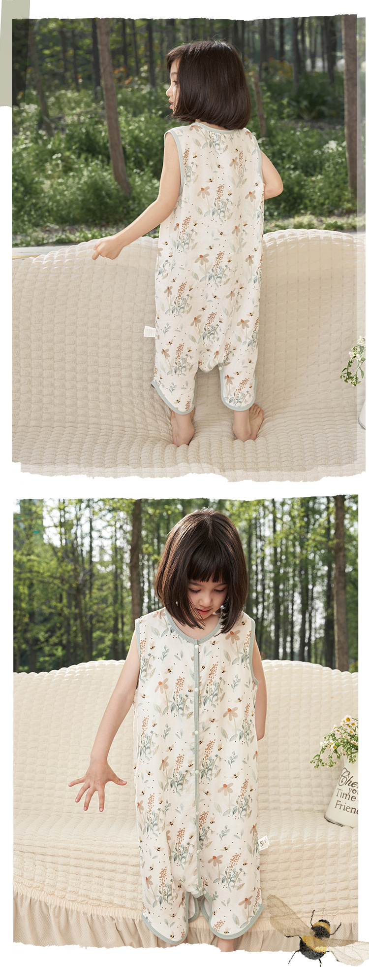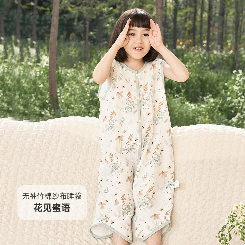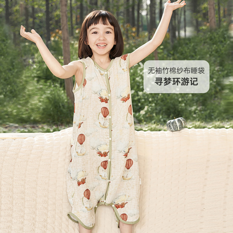 안단 어린이 침낭 여름용 대나무 면 거즈 에어컨 룸 민소매 조끼형 가벼운 유아용 다리 분리형 침낭스토어 가기