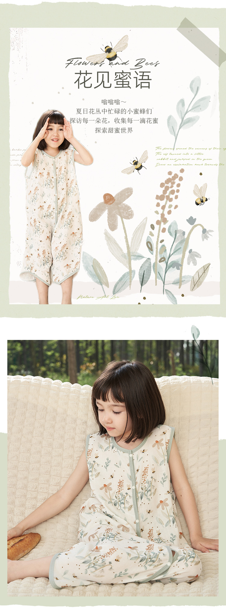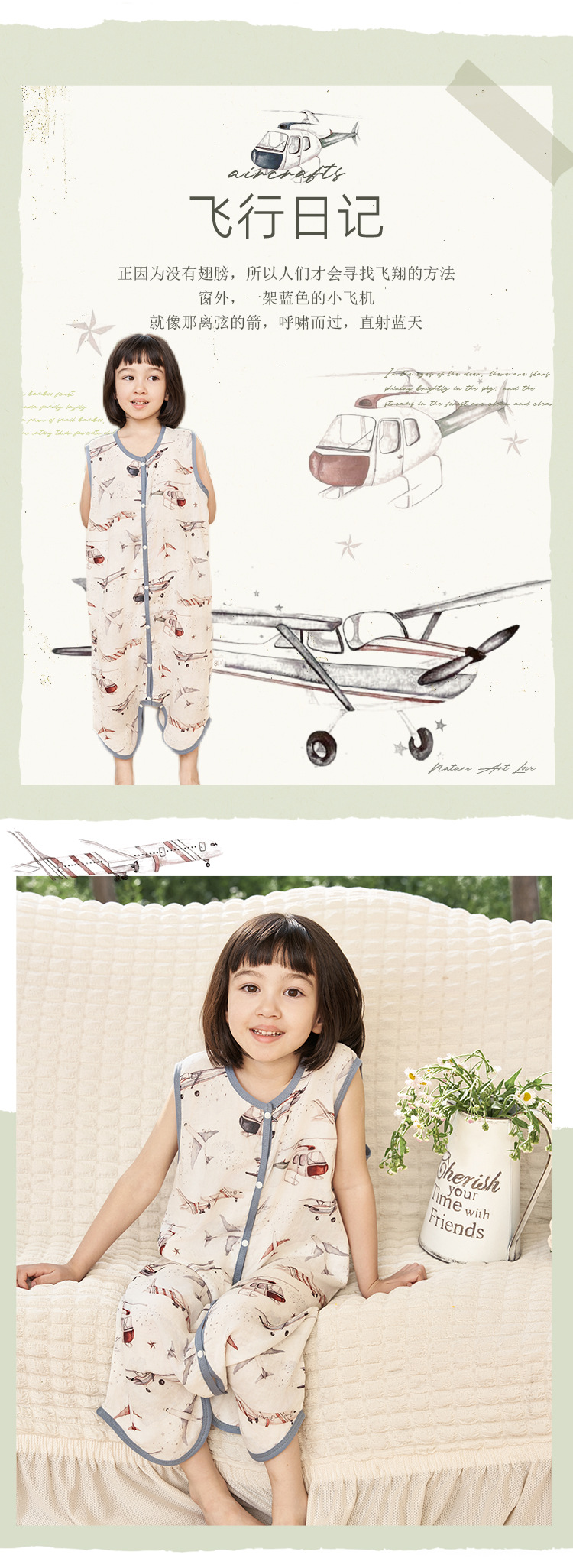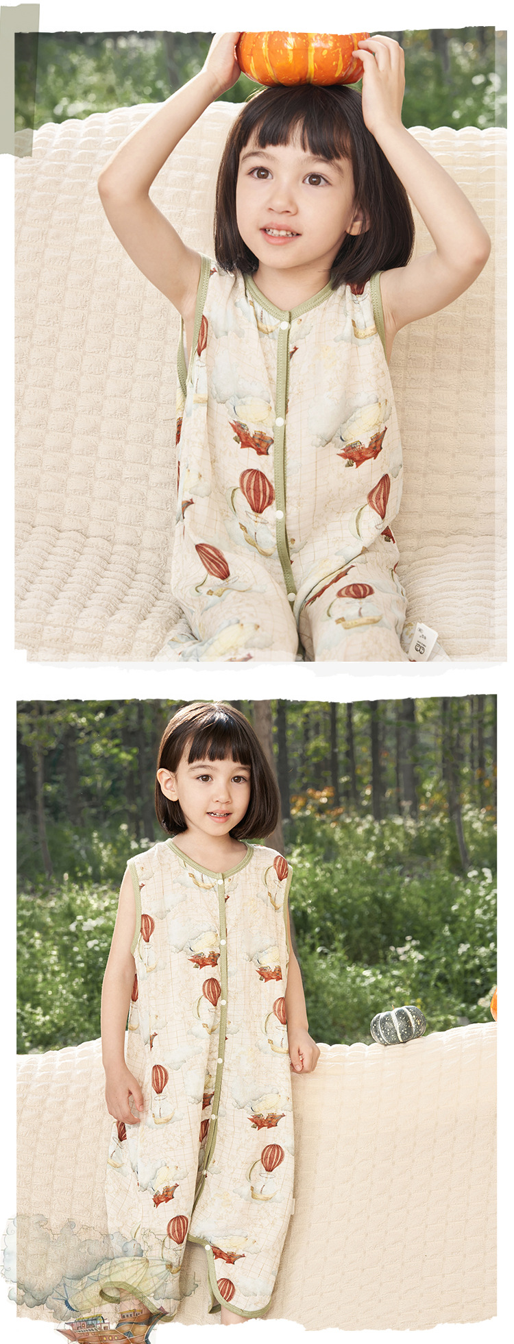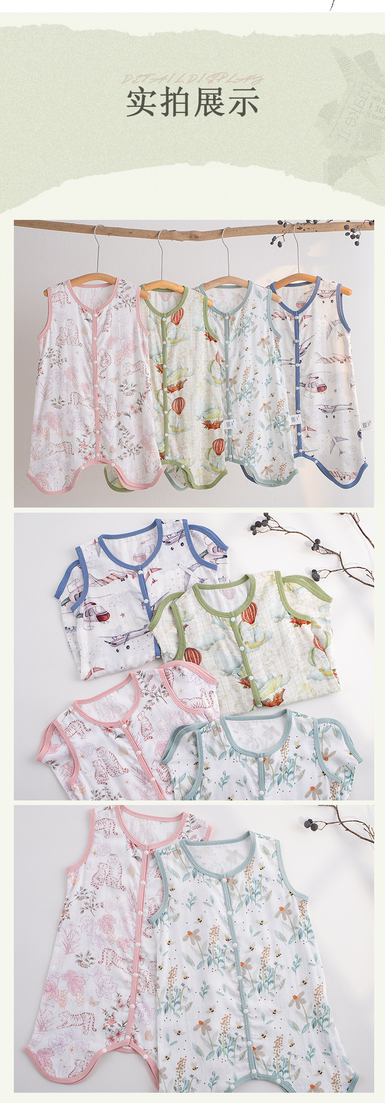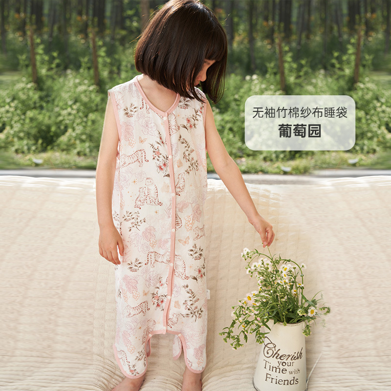 안단 어린이 침낭 여름용 대나무 면 거즈 에어컨 룸 민소매 조끼형 가벼운 유아용 다리 분리형 침낭스토어 가기