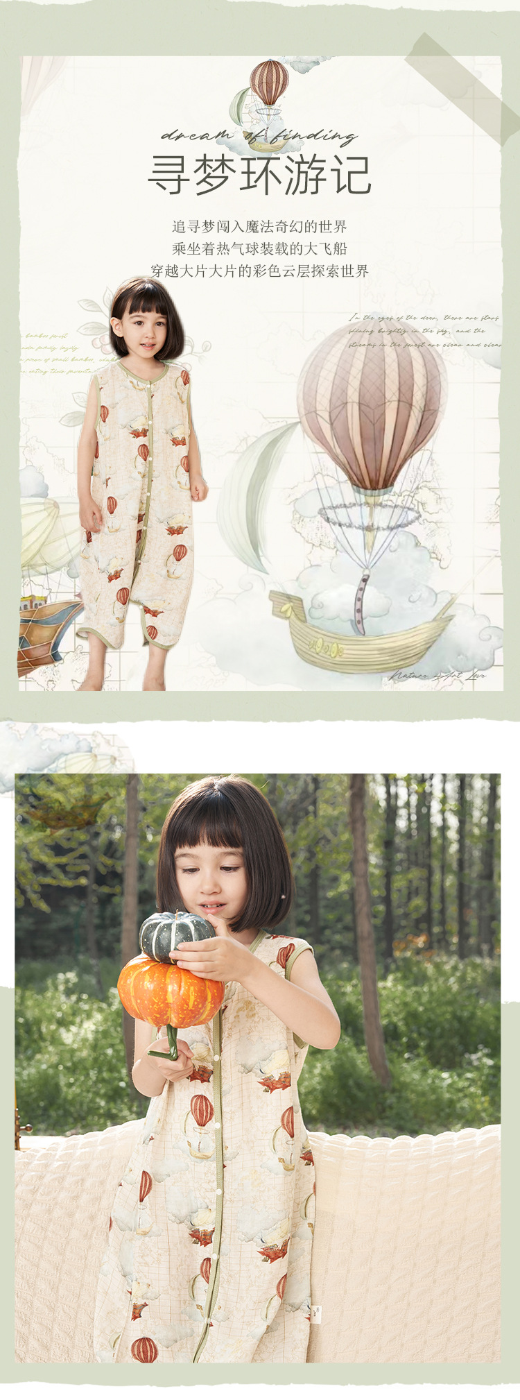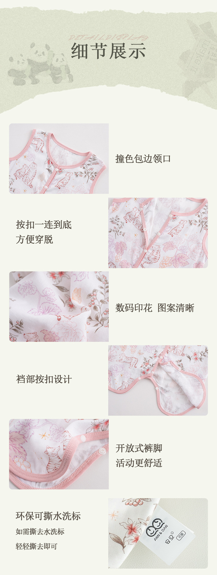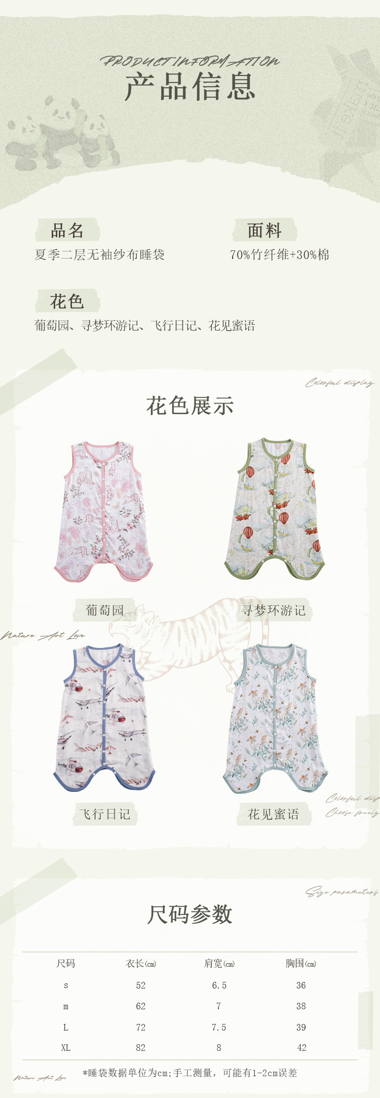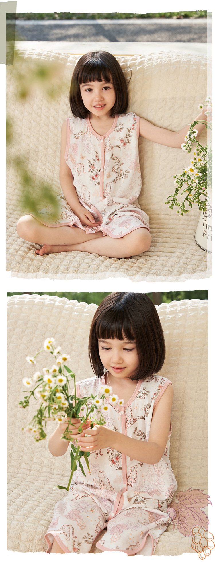 안단 어린이 침낭 여름용 대나무 면 거즈 에어컨 룸 민소매 조끼형 가벼운 유아용 다리 분리형 침낭스토어 가기